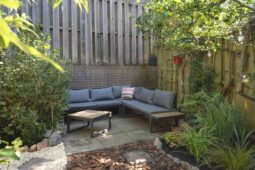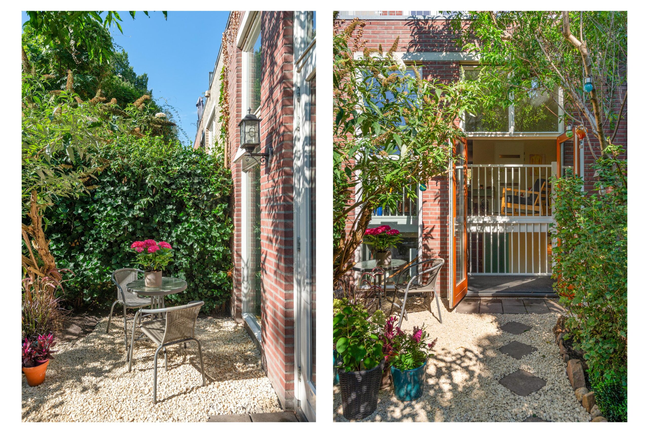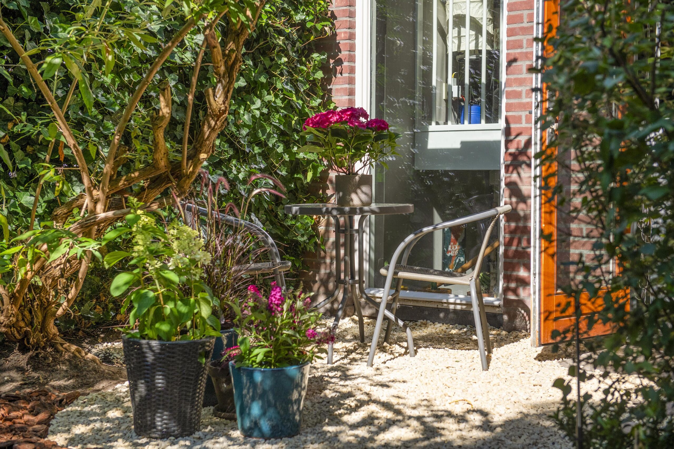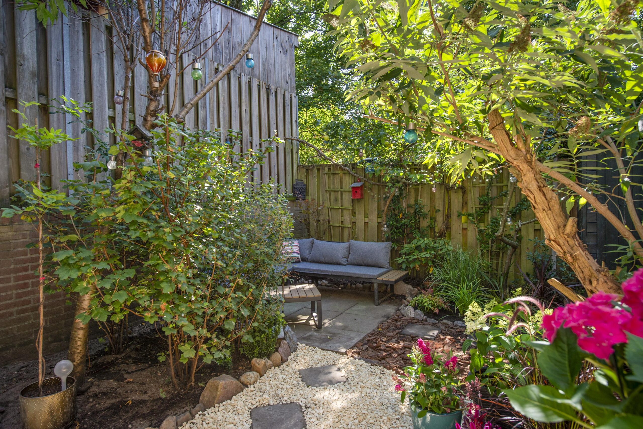 De achtertuin ligt gunstig op het zuidoosten, is omsloten en biedt daardoor veel privacy. Een heerlijke plek om in alle rust van de zon en het groen te genieten.