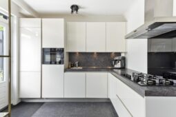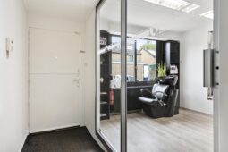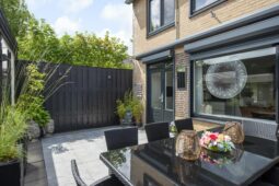 Aan een rustige straat, direct grenzend aan een brede groenstrook met vrij uitzicht, staat deze moderne hoekwoning met maar liefst drie woonlagen én een multifunctioneel bijgebouw. Een ideaal huis voor wie wonen en werken aan huis wil combineren, of juist op zoek is naar een ruime hobbyruimte of garage. Het bijgebouw is nu in gebruik als kapsalon, maar biedt volop mogelijkheden voor andere invullingen.