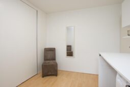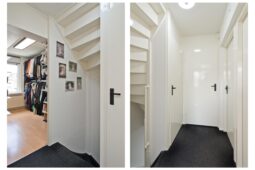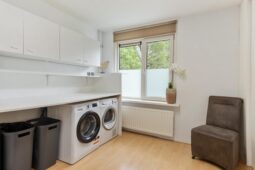 Overloop, drie goede slaapkamers, waarvan één momenteel in gebruik als kastenkamer en één voorzien van aansluitingen voor de wasapparatuur. De hoofdslaapkamer is voorzien van een krachtige airco. De moderne badkamer is stijlvol afgewerkt en voorzien van een douche, wastafelmeubel, vloerverwarming en toilet.