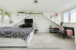 Een verrassend lichte en ruime verdieping met twee grote dakkapellen en een vierde slaapkamer, eveneens voorzien van airco. Deze verdieping is desgewenst te splisten in 2 slaapkamers.