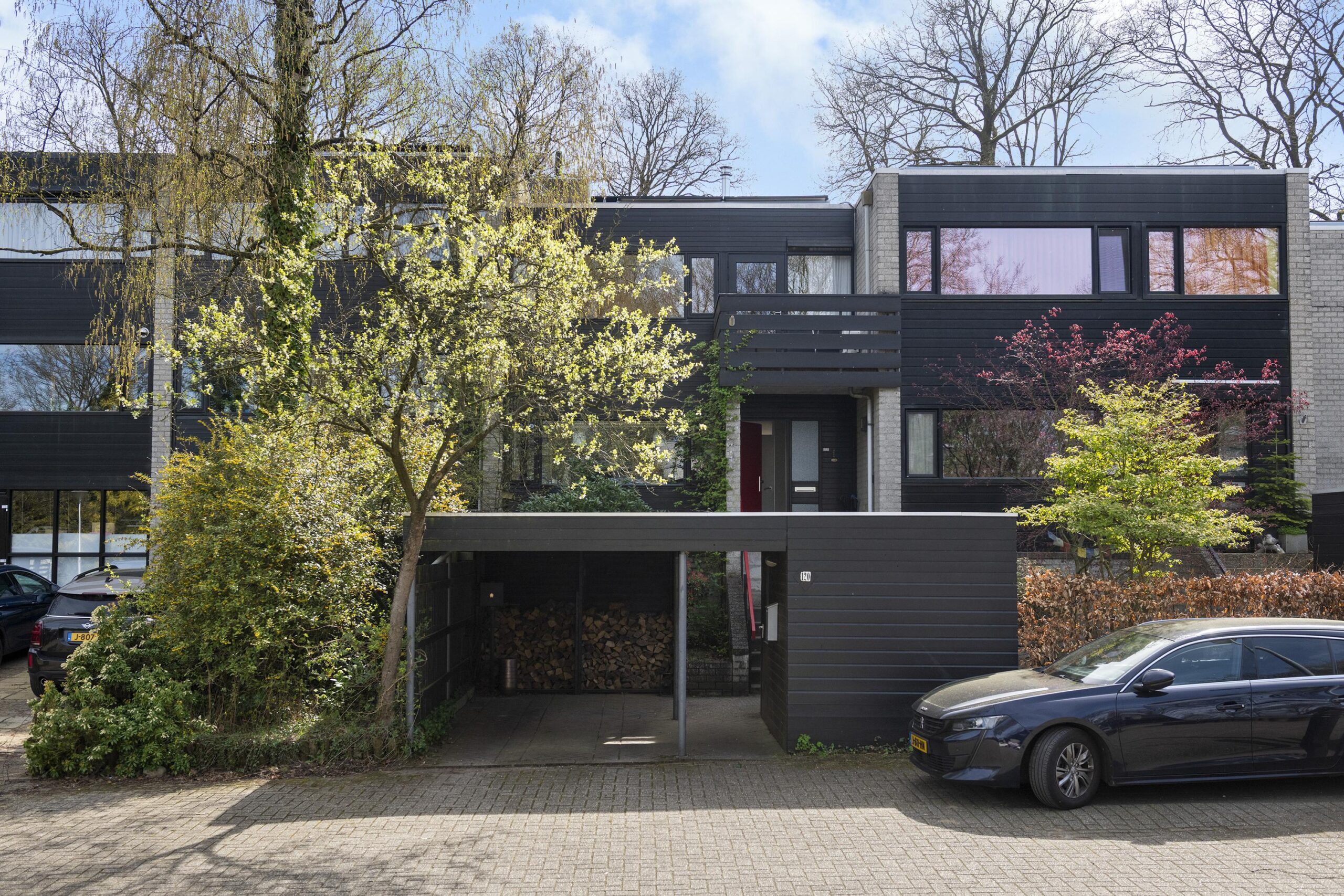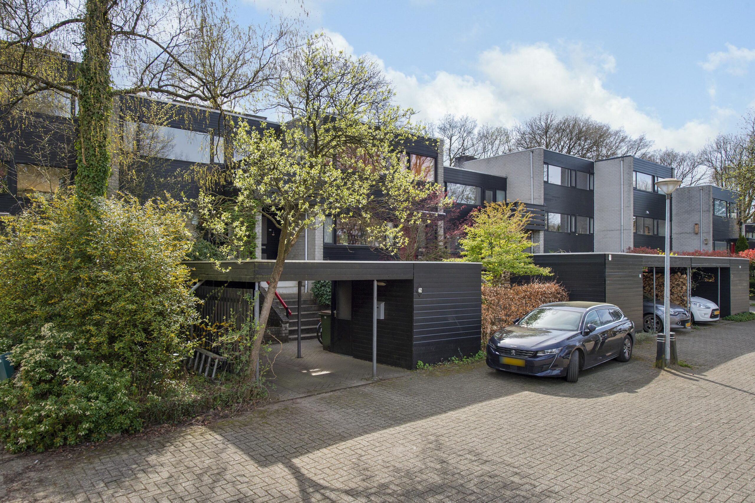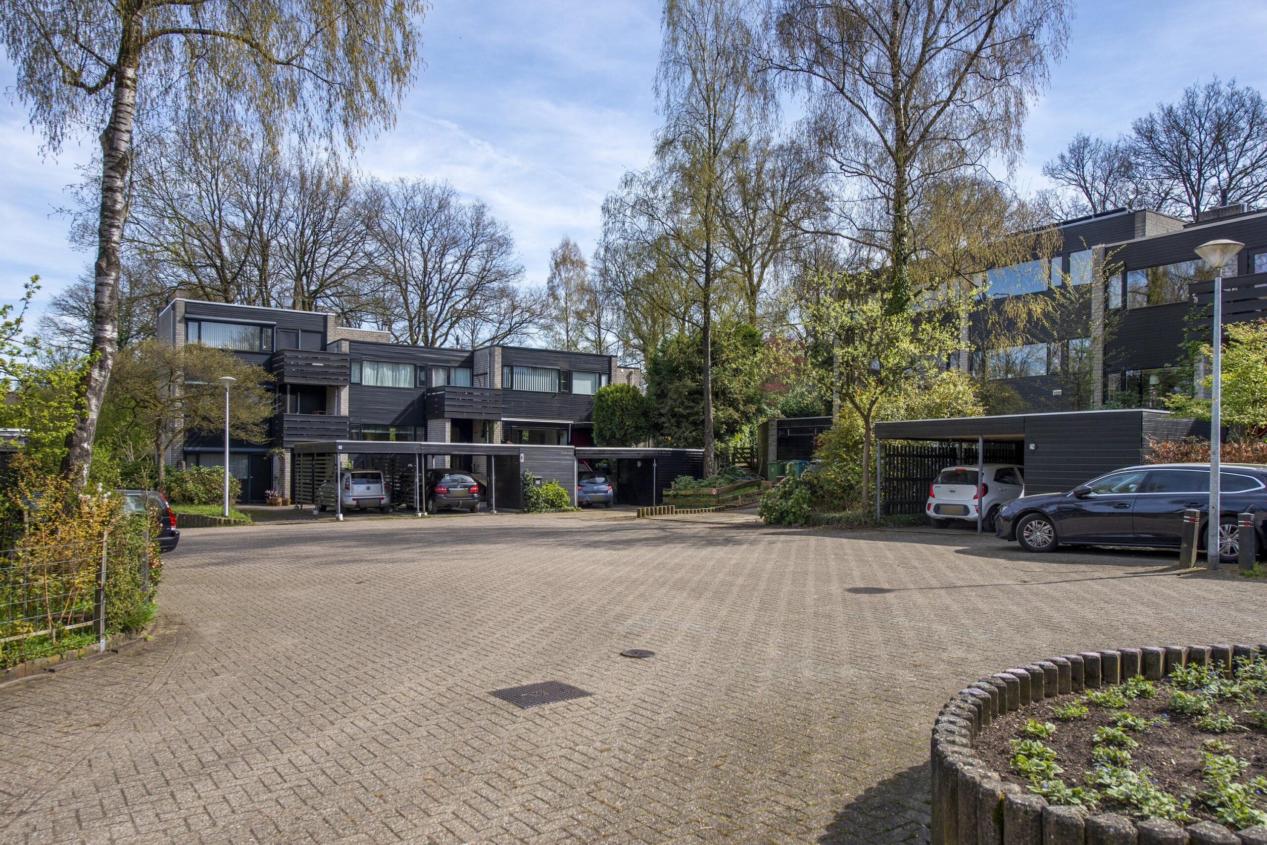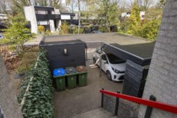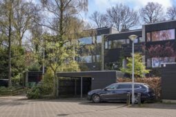 Deze speels ingedeelde woning, gebouwd in 1976 als onderdeel van een kleinschalig clusterproject, maakt deel uit van een charmant pleintje met geschakelde woningen in diverse typen en formaten. De architectuur is volledig afgestemd op de bosrijke omgeving, wat zorgt voor een rustige, vriendelijke woonomgeving waar natuur en wonen naadloos samenkomen.