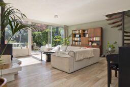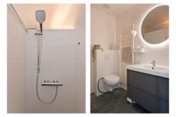 Op de eerste verdieping bevinden zich een ruime overloop, drie royale slaapkamers en een eigentijdse badkamer met inloopdouche, toilet en wastafel. De ruime hoofdslaapkamer biedt bovendien toegang tot een fijn balkon en heeft de beschikking over een eigen badkamer met ligbad en wastafel.