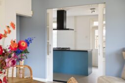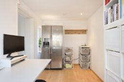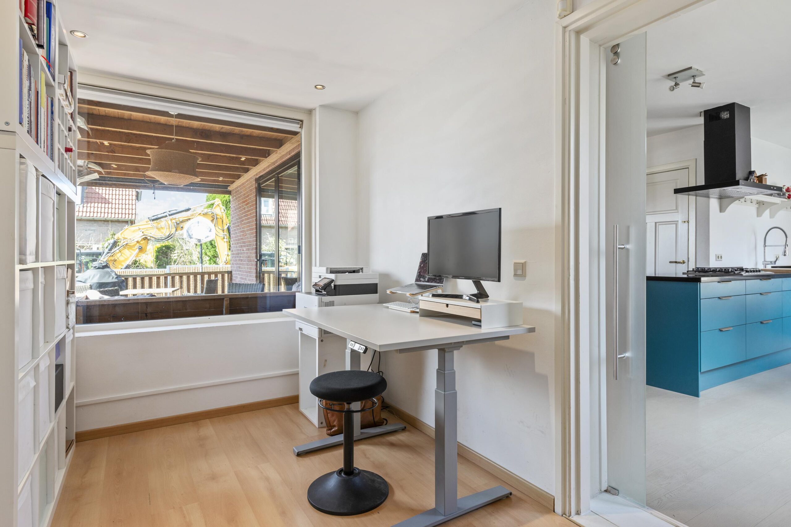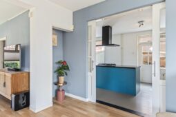 Entree, hal met toilet en doorloop naar de lichte en sfeervolle woonkamer, voorzien van een gezellige houtkachel. De halfopen keuken is praktisch ingedeeld en biedt volop mogelijkheden voor culinaire creativiteit. Achter de keuken treft u de aparte kantoorruimte, perfect voor thuiswerken of als hobbyruimte. Eventueel is het zelfs mogelijk hier een 4e slaapkamer te realiseren. Verder beschikt de woning over een provisiekelder.