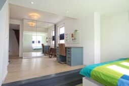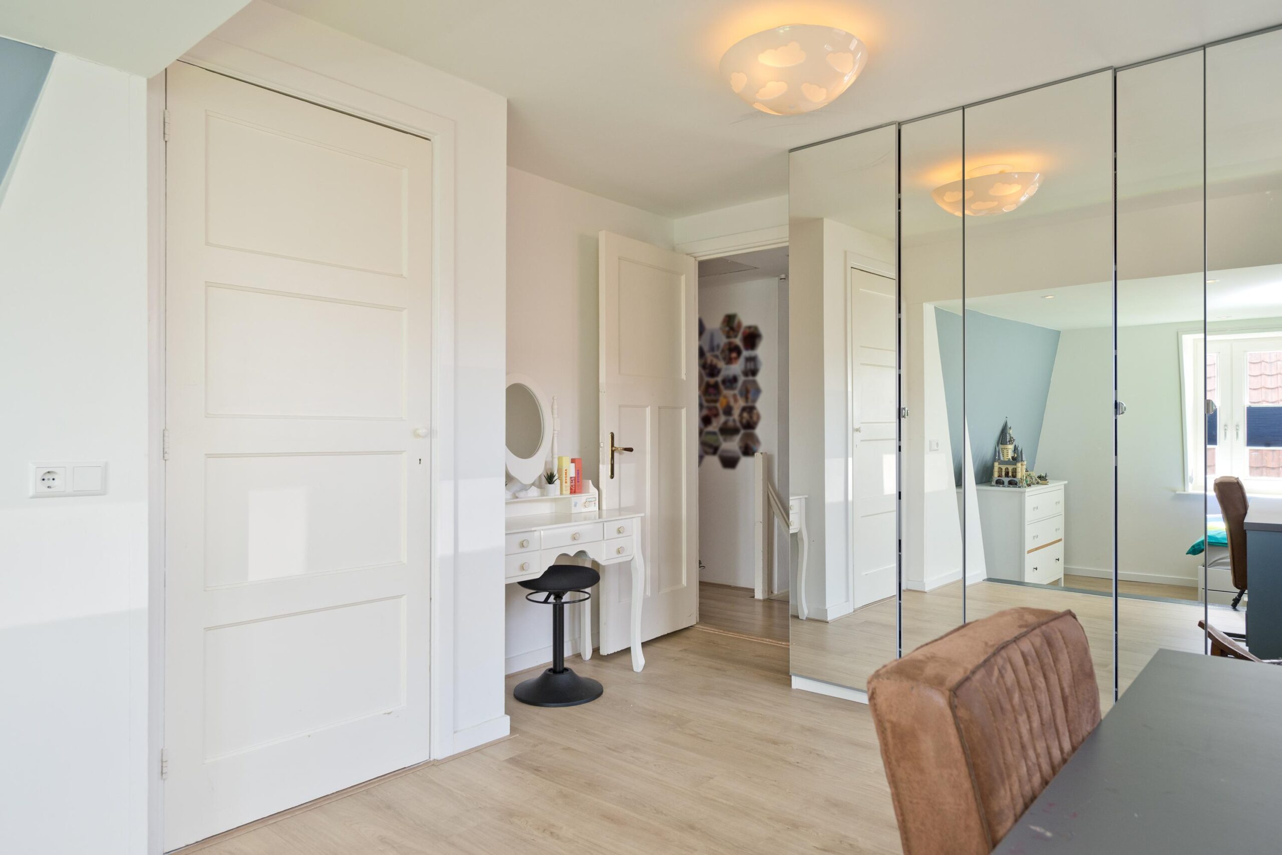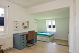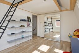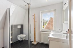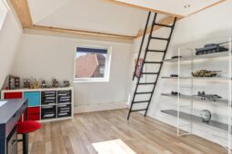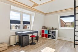 Op de verdieping beschikt de woning over drie royale slaapkamers en twee badkamers, beide voorzien van douche en toilet, ideaal voor gezinnen of mensen die op zoek zijn naar extra ruimte. Daarnaast is er een praktische zolder vliering.