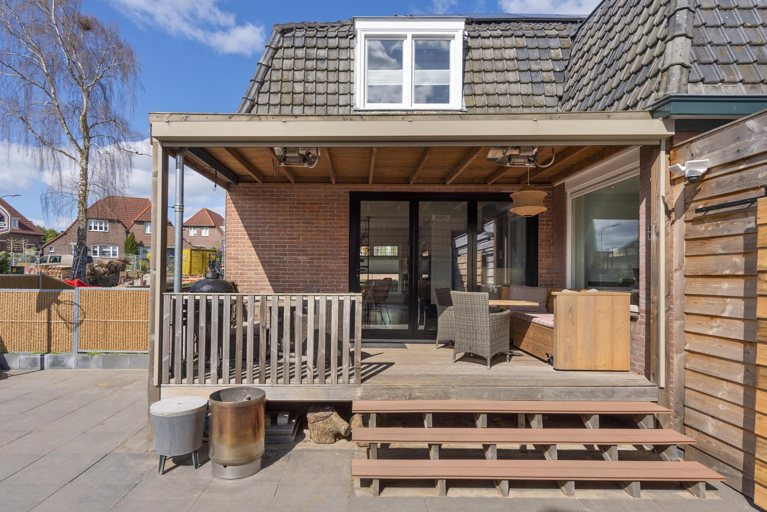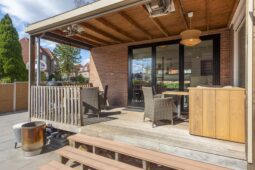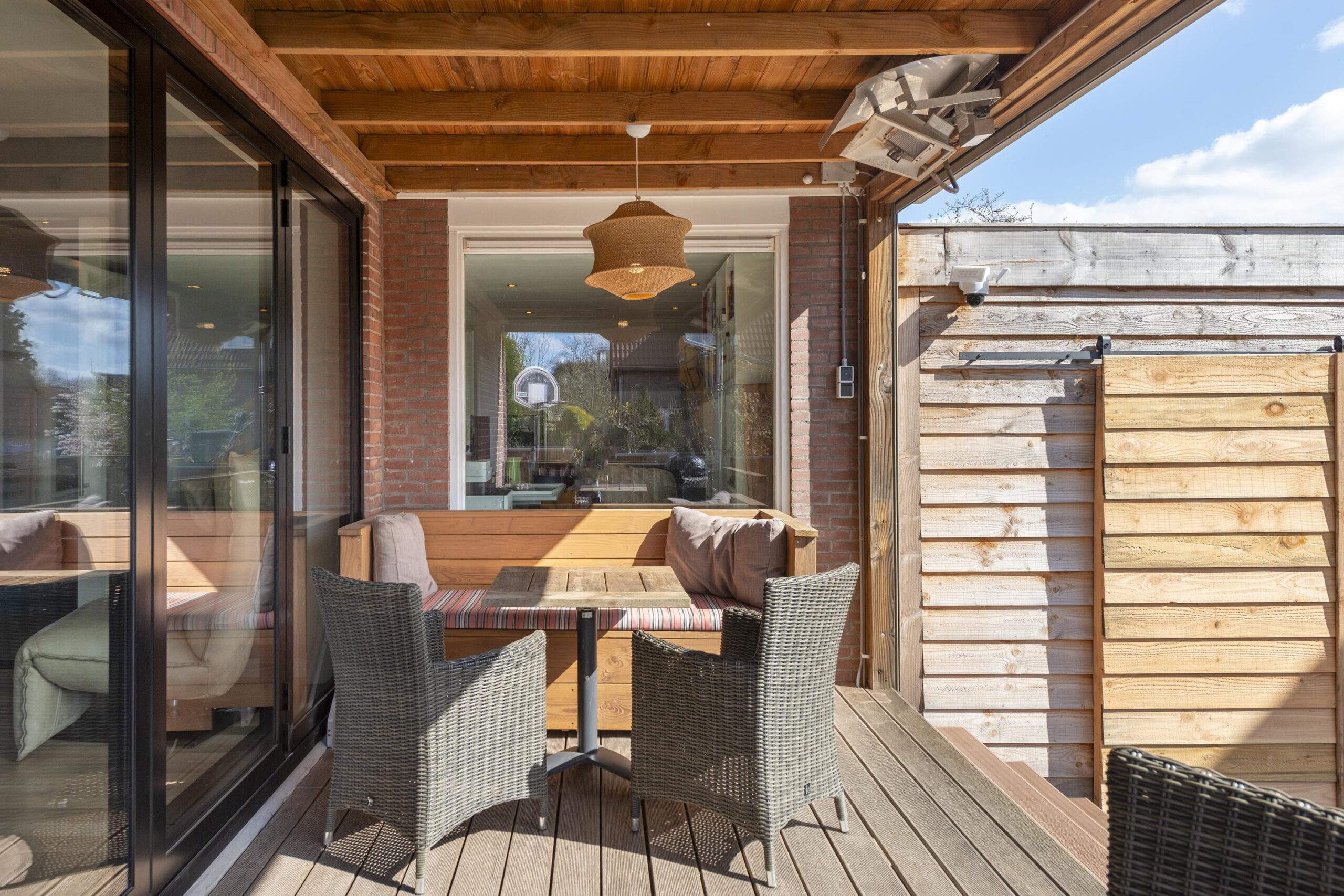 Via de woonkamer heeft u toegang tot de verwarmde terrasoverkapping, waar u het hele jaar door kunt genieten van de zonnige tuin. De ruime berging biedt extra opslag of hobbyruimte.