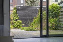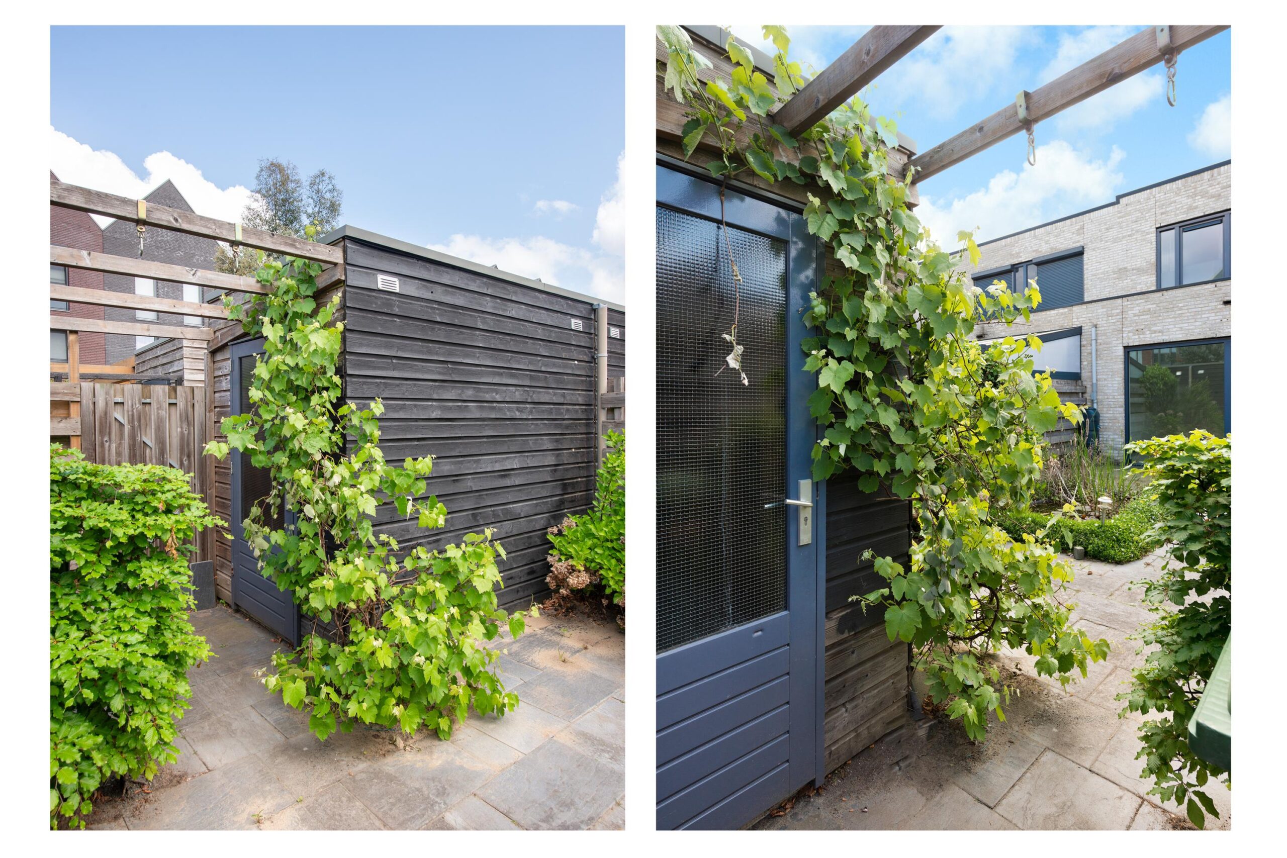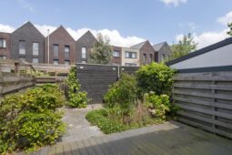Tuin: de diepe, onderhoudsvriendelijke tuin (met achterom) is voorzien van een houten berging met elektra. Dankzij de noordelijke ligging en de diepte van het perceel kun je hier de hele dag kiezen tussen zon of schaduw. Ideaal voor elk moment van de dag! De tuin is daarnaast voorzien van meerdere stroompunten en vormt een fijne, rustige plek om te ontspannen.