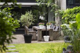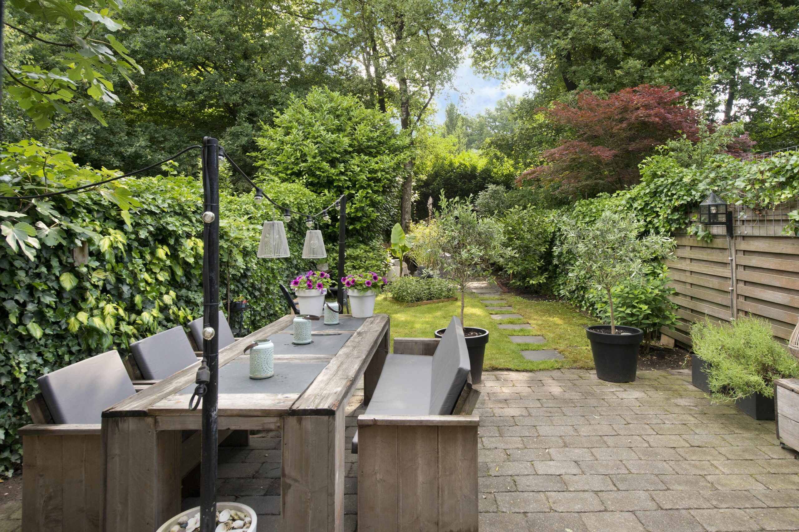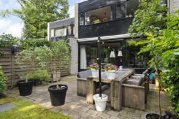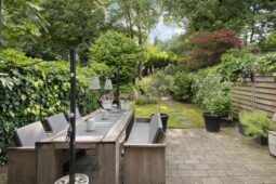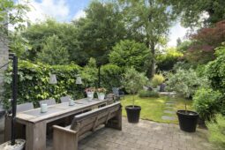 De circa 22 meter diepe en 6 meter brede tuin biedt volop privacy en een perfecte mix van zon en schaduw. Dankzij de ligging op woonniveau is de tuin direct bereikbaar vanuit de woonkamer. Een eigen tuinhuis maakt het geheel compleet.