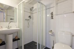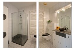 Dit multifunctionele souterrain is bereikbaar via een vaste trap én via een eigen entree aan de voorzijde, wat het ideaal maakt voor een praktijk aan huis of gastenverblijf. Hier bevinden zich twee slaapkamers, een ruime werk- of praktijkruimte, een derde badkamer (met douche, toilet en wastafel) én volop bergruimte.