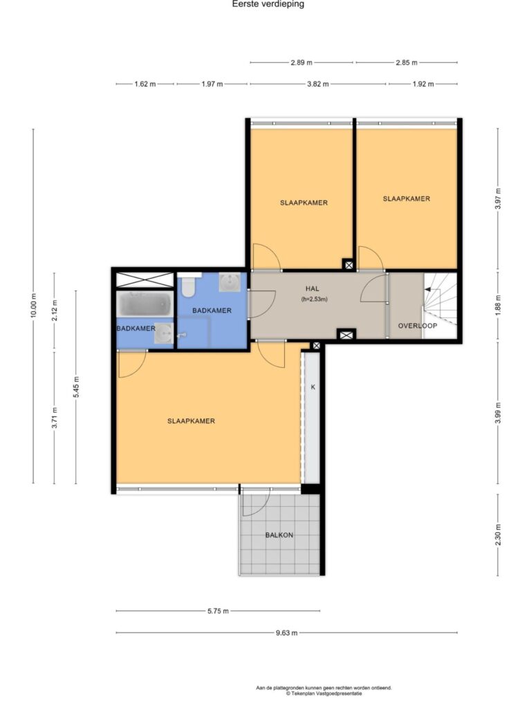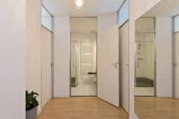 Grote, lichte overloop met ruimte voor extra kasten. Hier bevinden zich drie ruime slaapkamers, waaronder een indrukwekkend grote ouderslaapkamer met privébadkamer (ligbad, wastafelmeubel en toegang tot een eigen balkon). Daarnaast is er een tweede badkamer met douche, wastafelmeubel en tweede toilet.