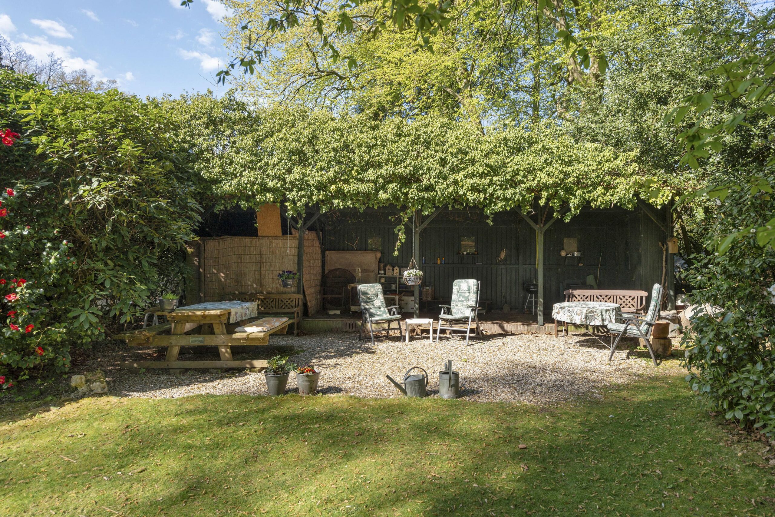 Achter het huis staat een berging en koetshuis uit de tweede helft van de negentiende eeuw, waarvan de voorgevel gewijzigd is door het aanbrengen van een garagedeur.