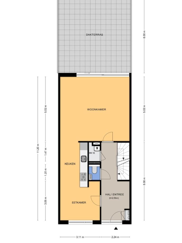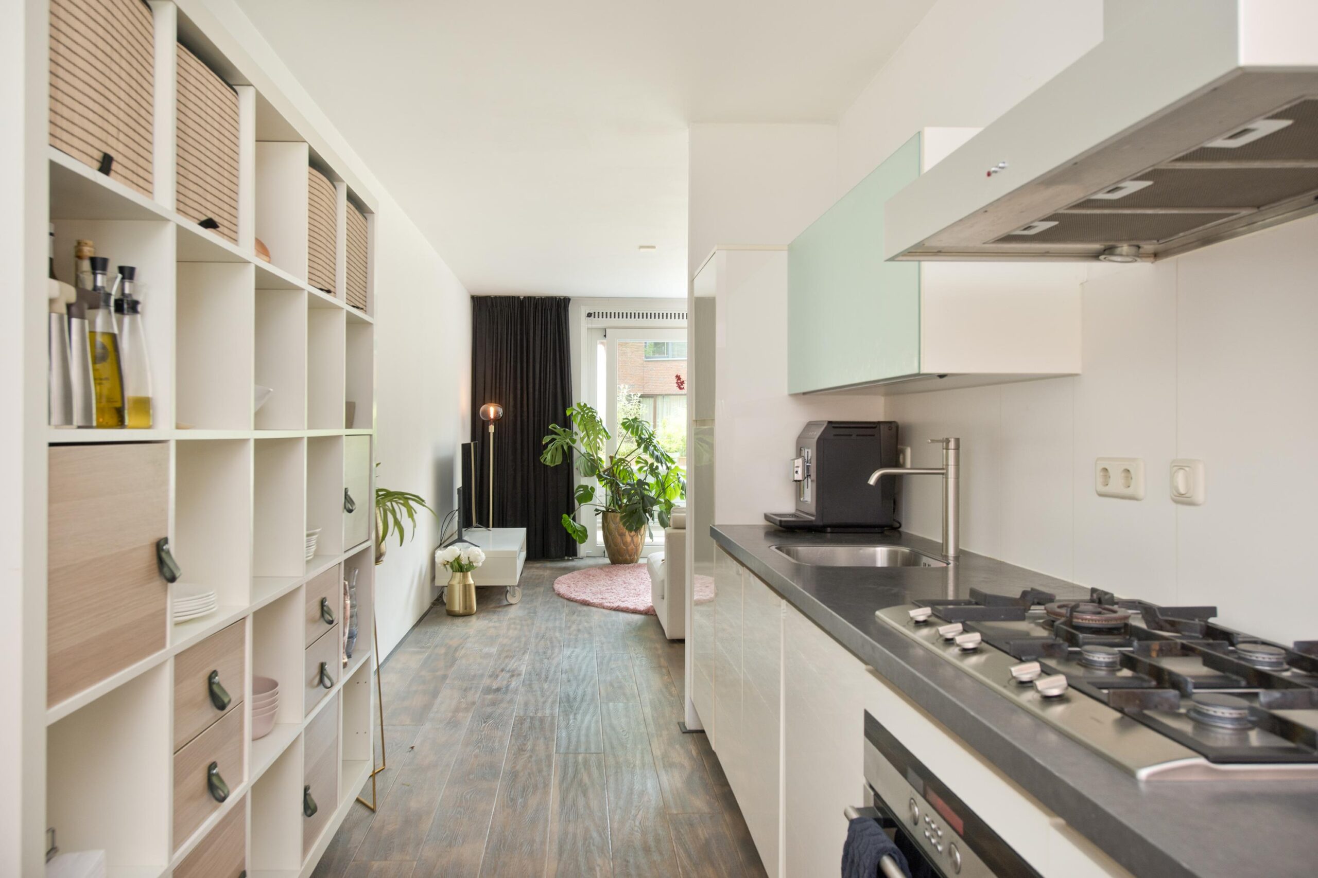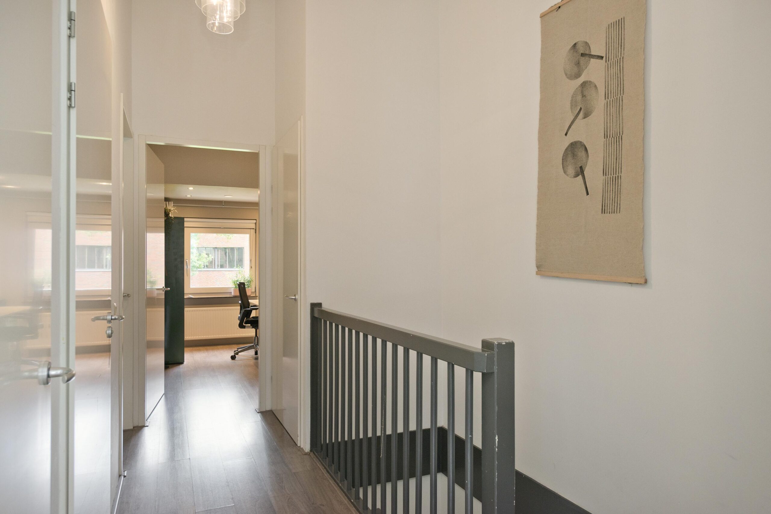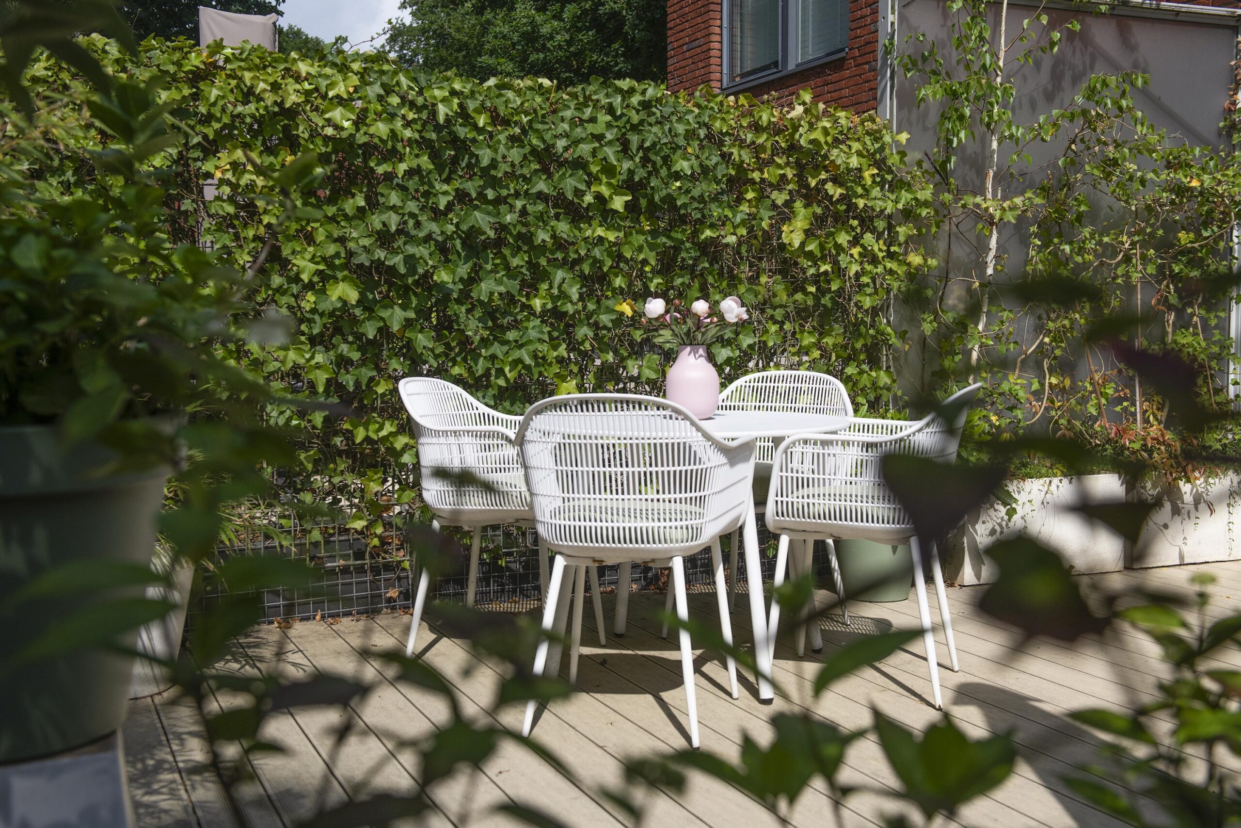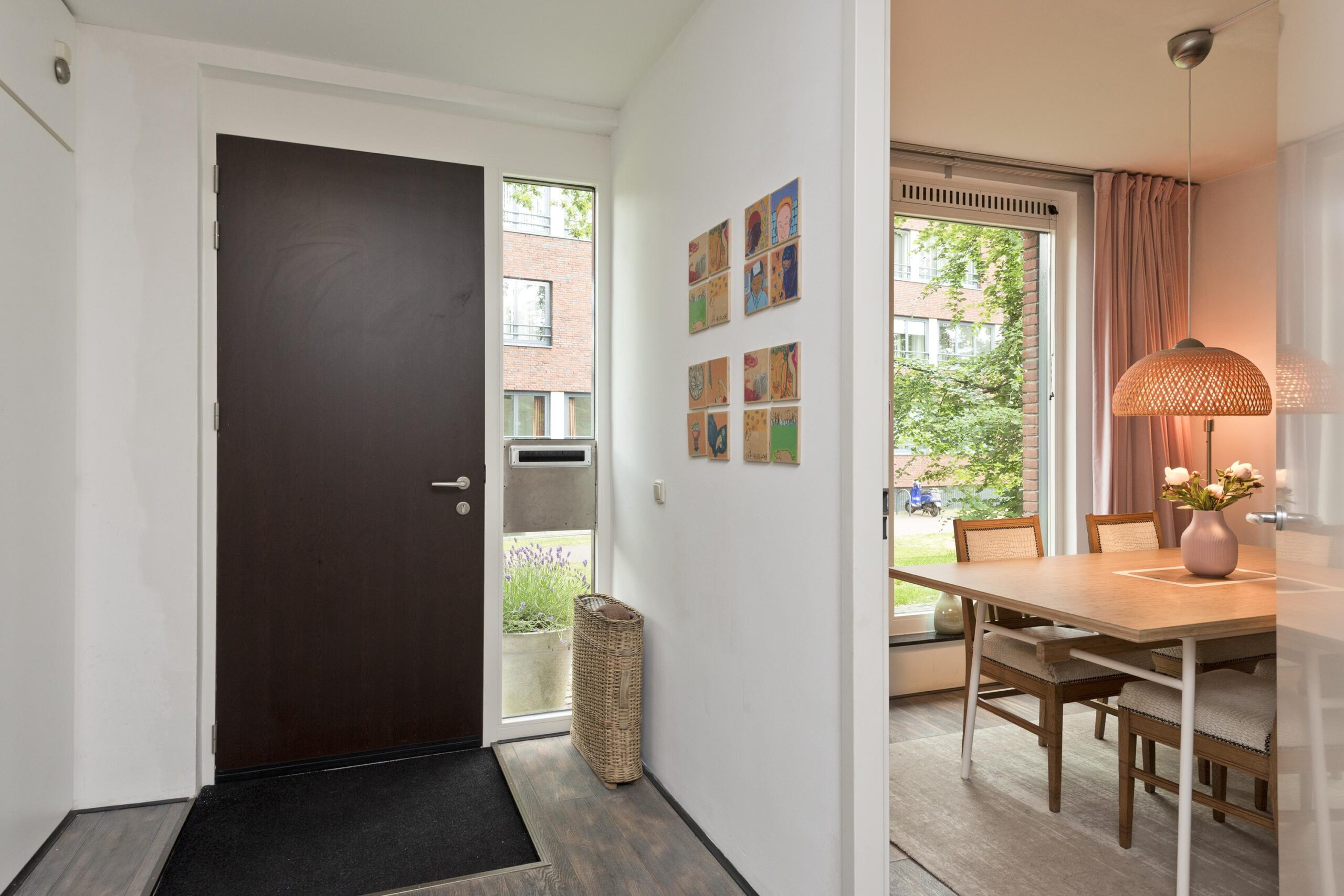 Entree met ruime hal, trappenhuis, moderne meterkast, inbouwkast met HR CV ketel en een toiletruimte met modern wandcloset en fonteintje. De lichte en zonnige woonkamer heeft een schuifpui naar het grote terras op het zuiden. De open keuken is modern uitgevoerd met een tijdloze Siematic inbouwkeuken, voorzien van diverse inbouwapparatuur en een robuust stenen werkblad. Vanuit de keuken is er een directe verbinding met de gezellige eetkamer, die tevens toegang biedt tot de hal.