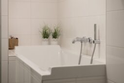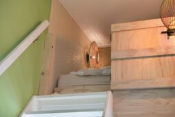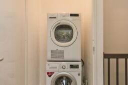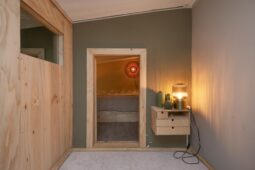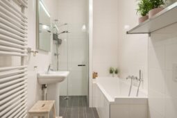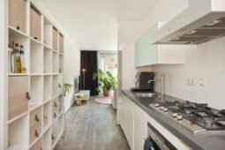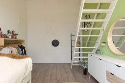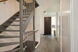 Ruime overloop met een inbouwkast voorzien van aansluitingen wasapparatuur, moderne en complete badkamer uitgerust met een douche, ligbad, wandcloset, handdoekradiator en wastafel. De verdieping is bijzonder ruim door de sterk oplopende daklijnen, wat een heerlijk ruimtelijk gevoel creëert en diverse praktische mogelijkheden biedt. De grote ouderslaapkamer beslaat de volledige breedte van de woning. Daarnaast zijn er twee slaapkamers: één met een trap naar een slaap-/speel-entresol met vide en een derde slaapkamer met de mogelijkheid tot het maken van een eigen trap tot de entresol.