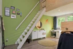 • Speelse en praktische indeling met extra hoge, oplopende plafonds op de eerste verdieping