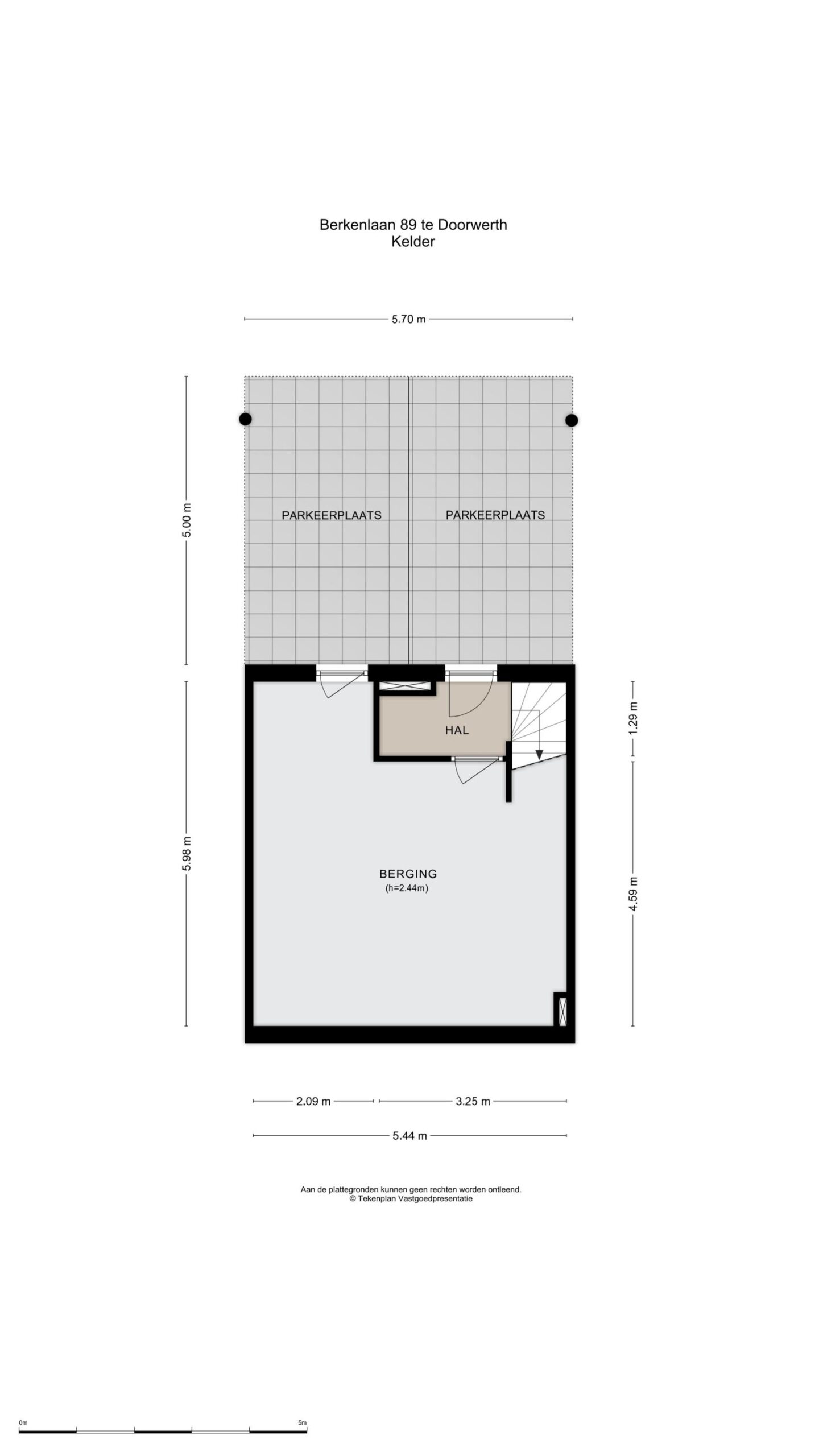 Vanuit de hal is het ruime souterrain bereikbaar. Deze verdieping bestaat uit een hal, een multifunctionele ruimte, een berging en twee eigen parkeerplaatsen. De multifunctionele ruimte en berging zijn momenteel samengevoegd, maar kunnen eenvoudig gescheiden worden. Het souterrain is zowel binnendoor als via de parkeergarage toegankelijk (drive-in!). De overdekte parkeergarage biedt voldoende manoeuvreerruimte en is voorzien van een luxe automatische schuifdeur.