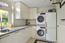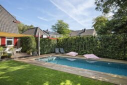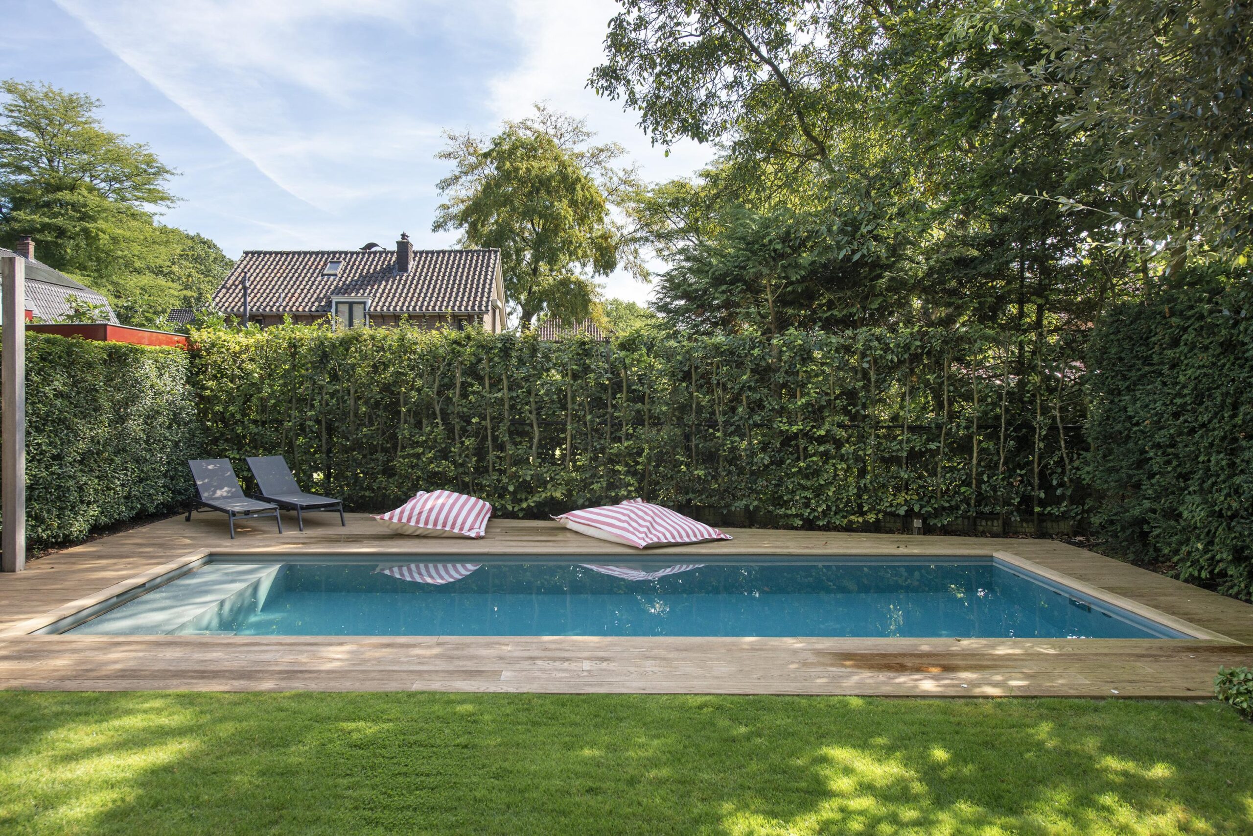 Buitenruimte: de prachtig aangelegde en volledig omheinde tuin biedt veel privacy en is een heerlijke plek om te ontspannen. Hier vindt u diverse terrassen, een verwarmd zwembad en een vrijstaande garage. De tuin is ideaal voor zomerse dagen met het gezin of om in alle rust van de omgeving te genieten.