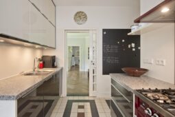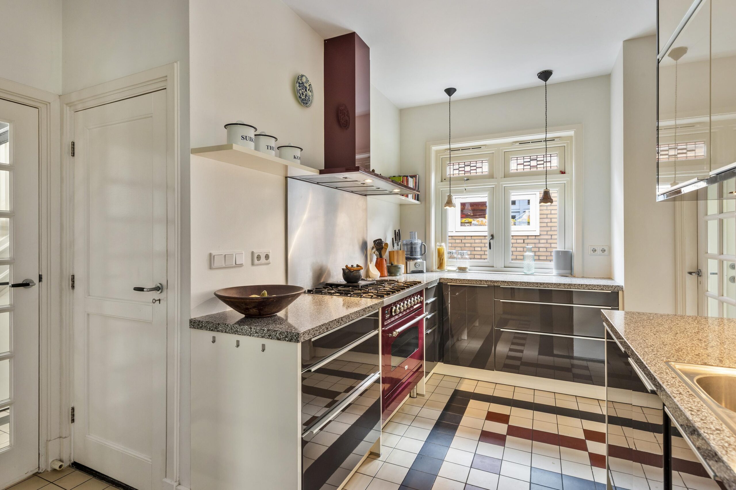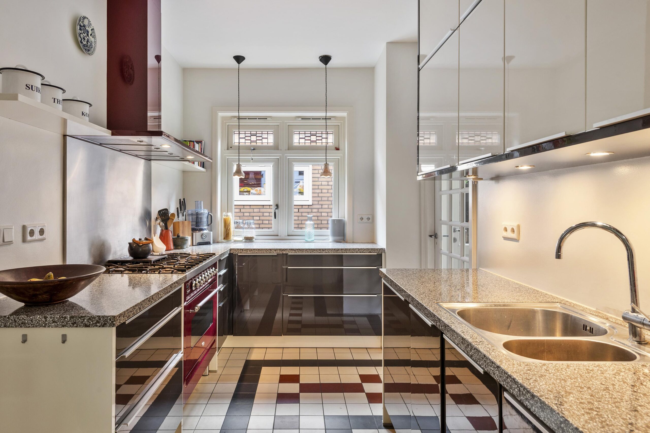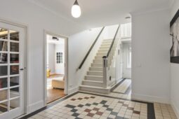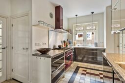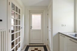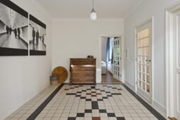 Begane grond: bij binnenkomst betreedt u de woning via een karakteristieke entree en vestibule, waarna u in de fraaie hal komt met originele details, een stijlvolle tegelvloer met vloerverwarming, en toegang tot het toilet en een ruime provisiekelder.