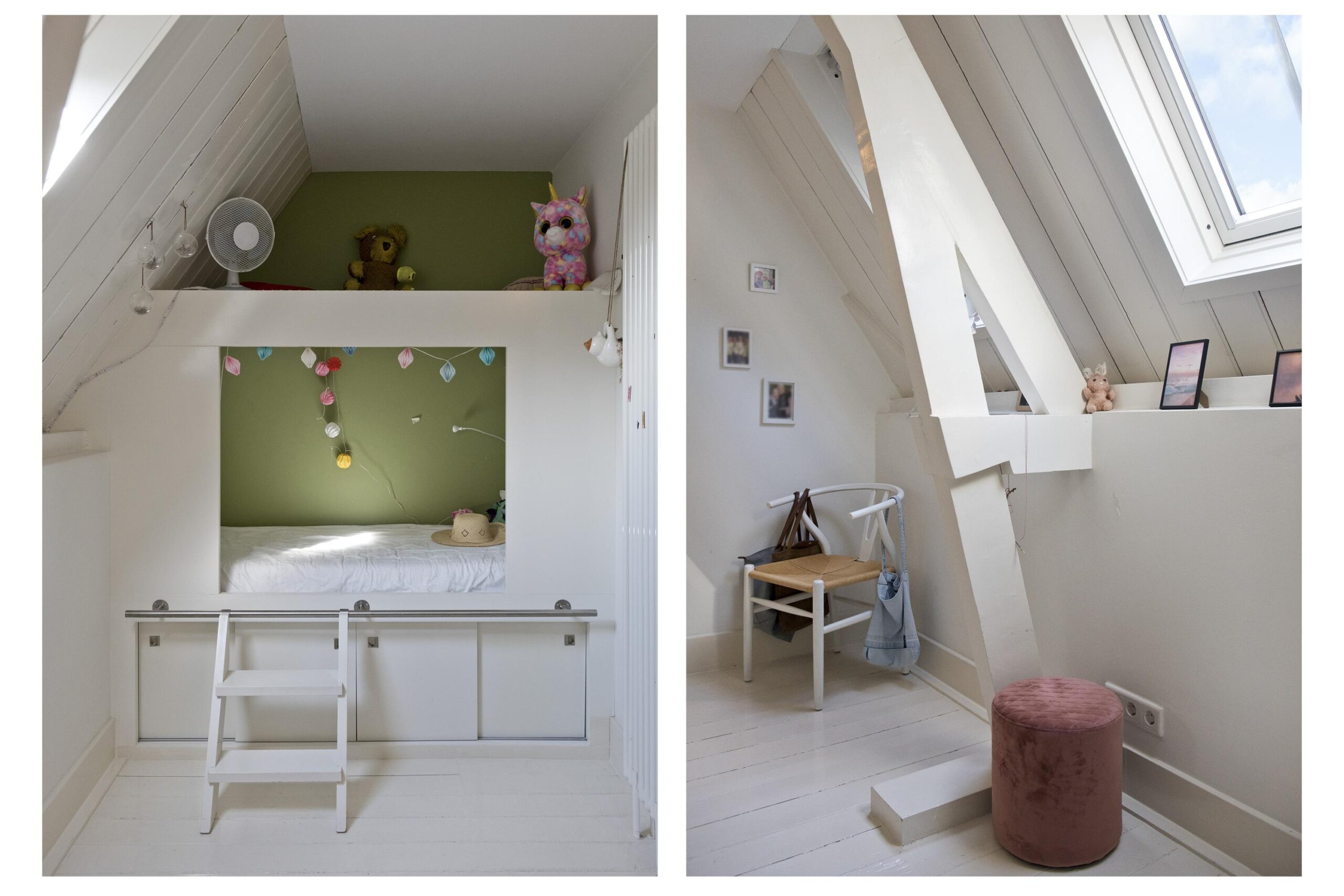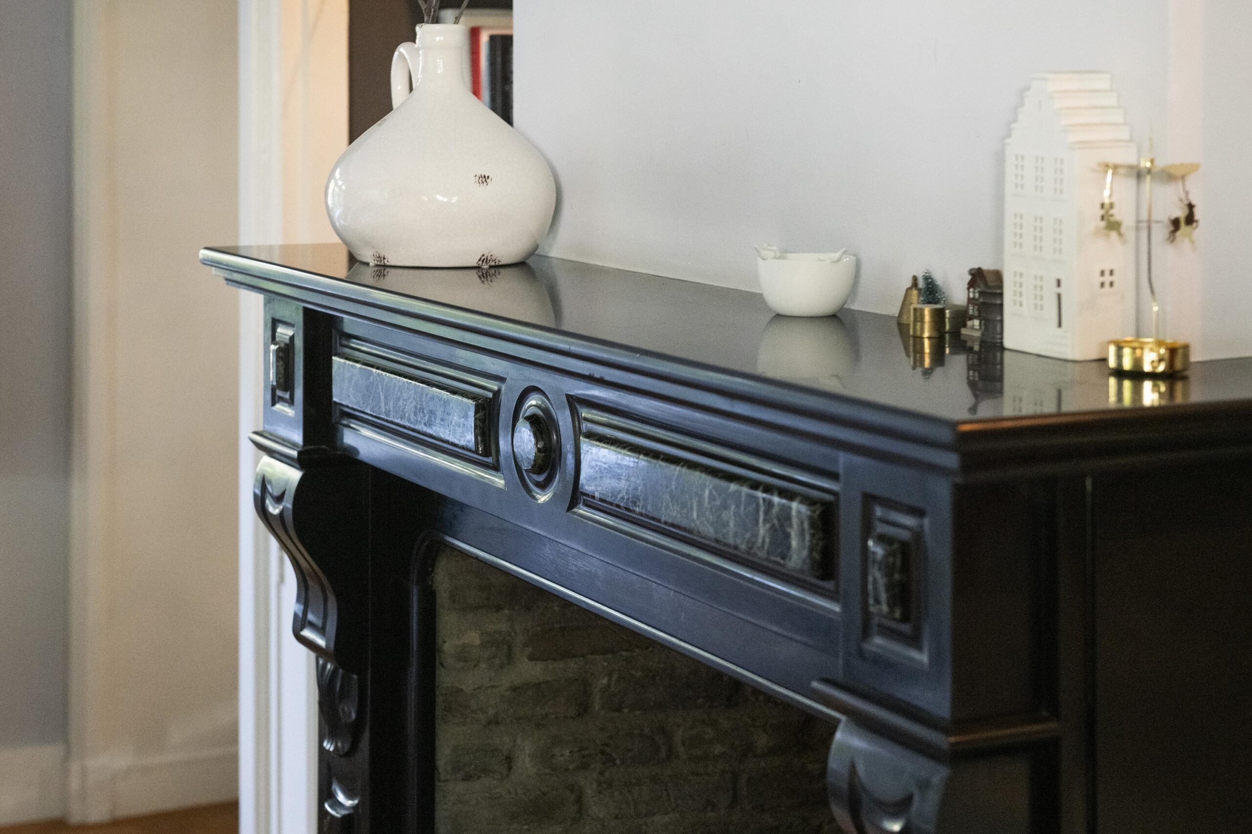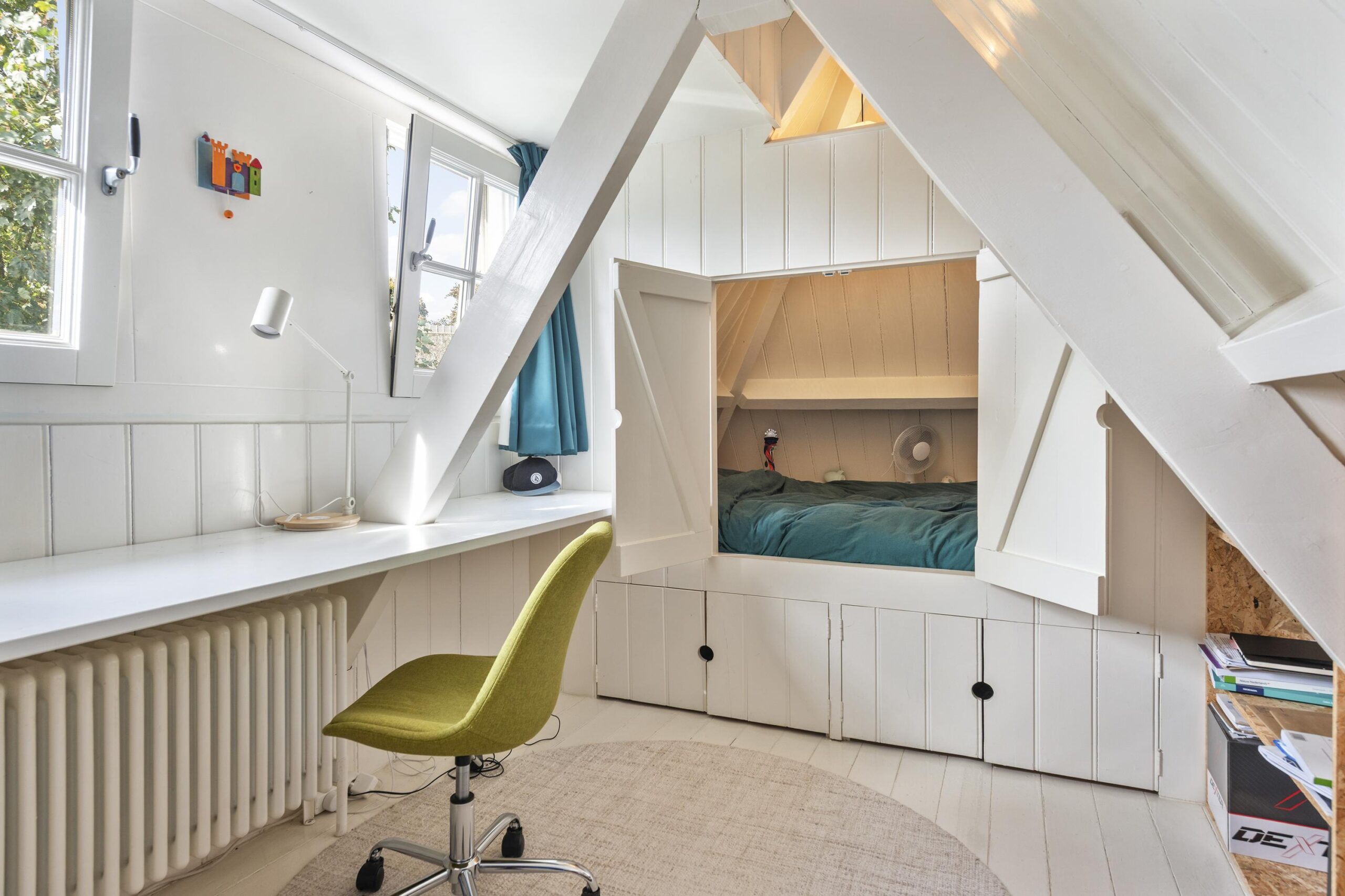 De lichte kamer met functionele houtkachel ligt aan de voorzijde en is ideaal als werk- of speelkamer. De sfeervolle woonkamer met visgraatparket, haard en erker loopt naadloos over in de eetkamer, die eveneens over een haard beschikt. De halfopen keuken grenst aan de eetkamer en biedt toegang tot een praktische bijkeuken en de kelder.