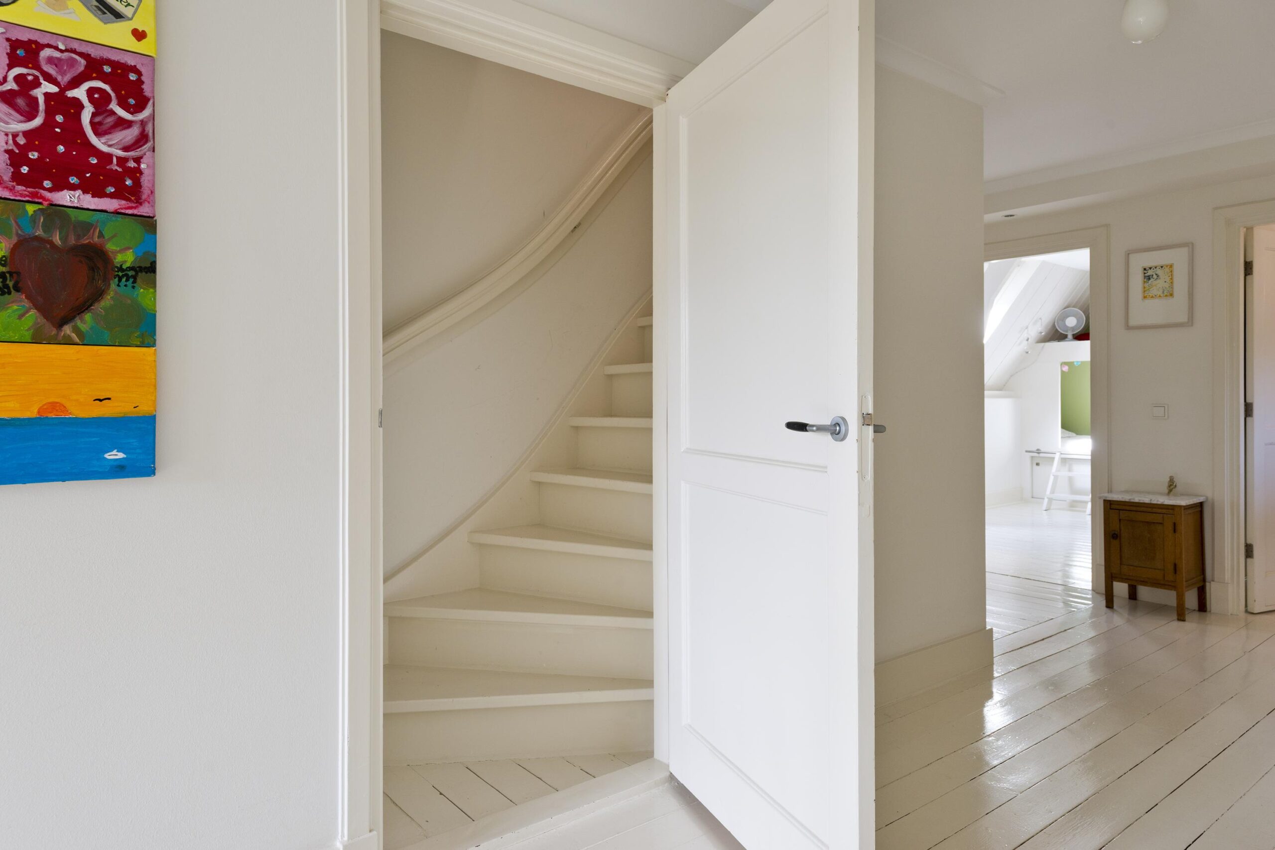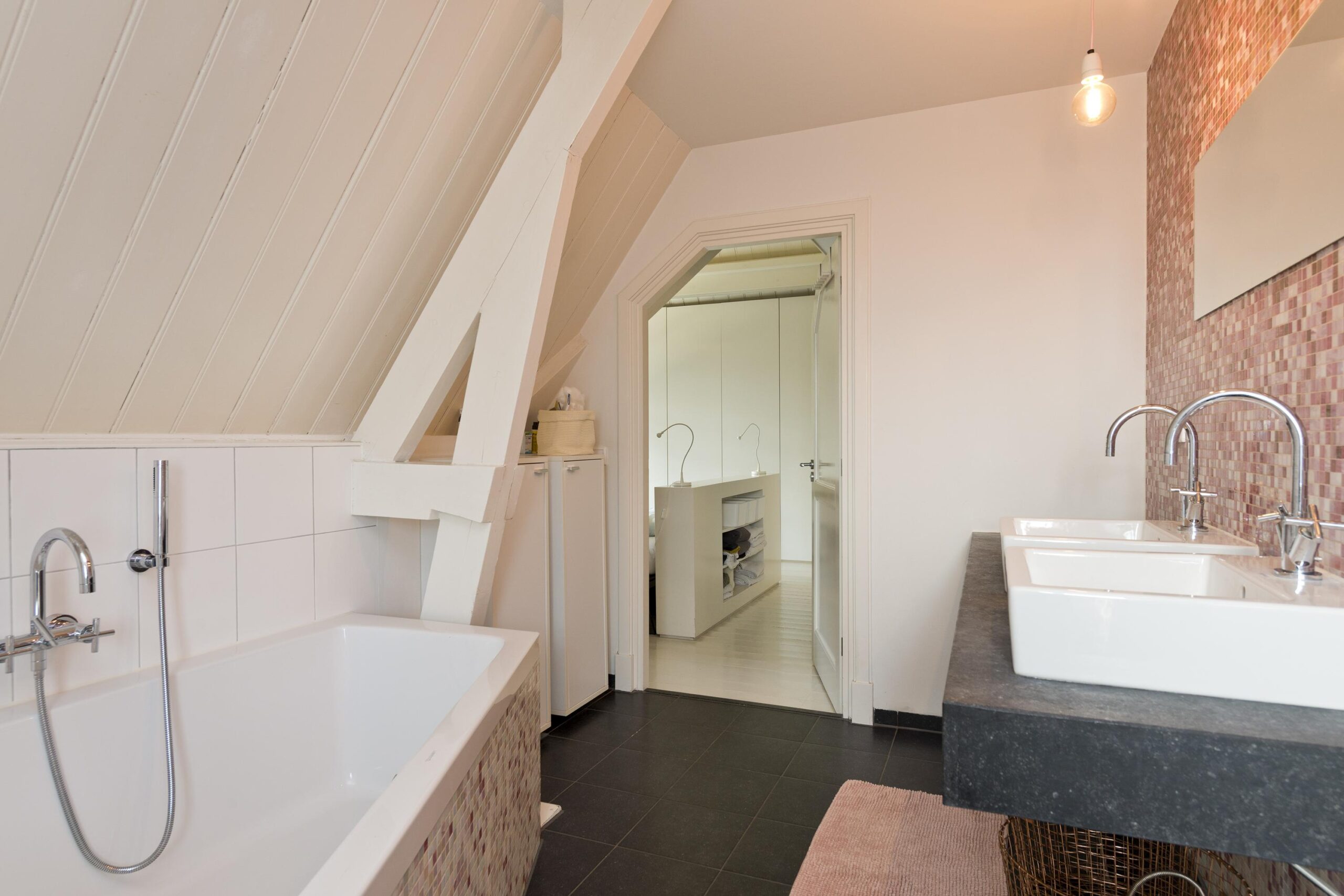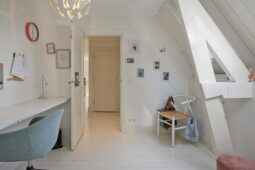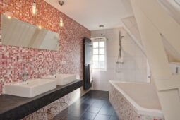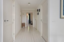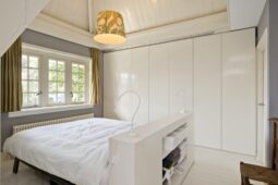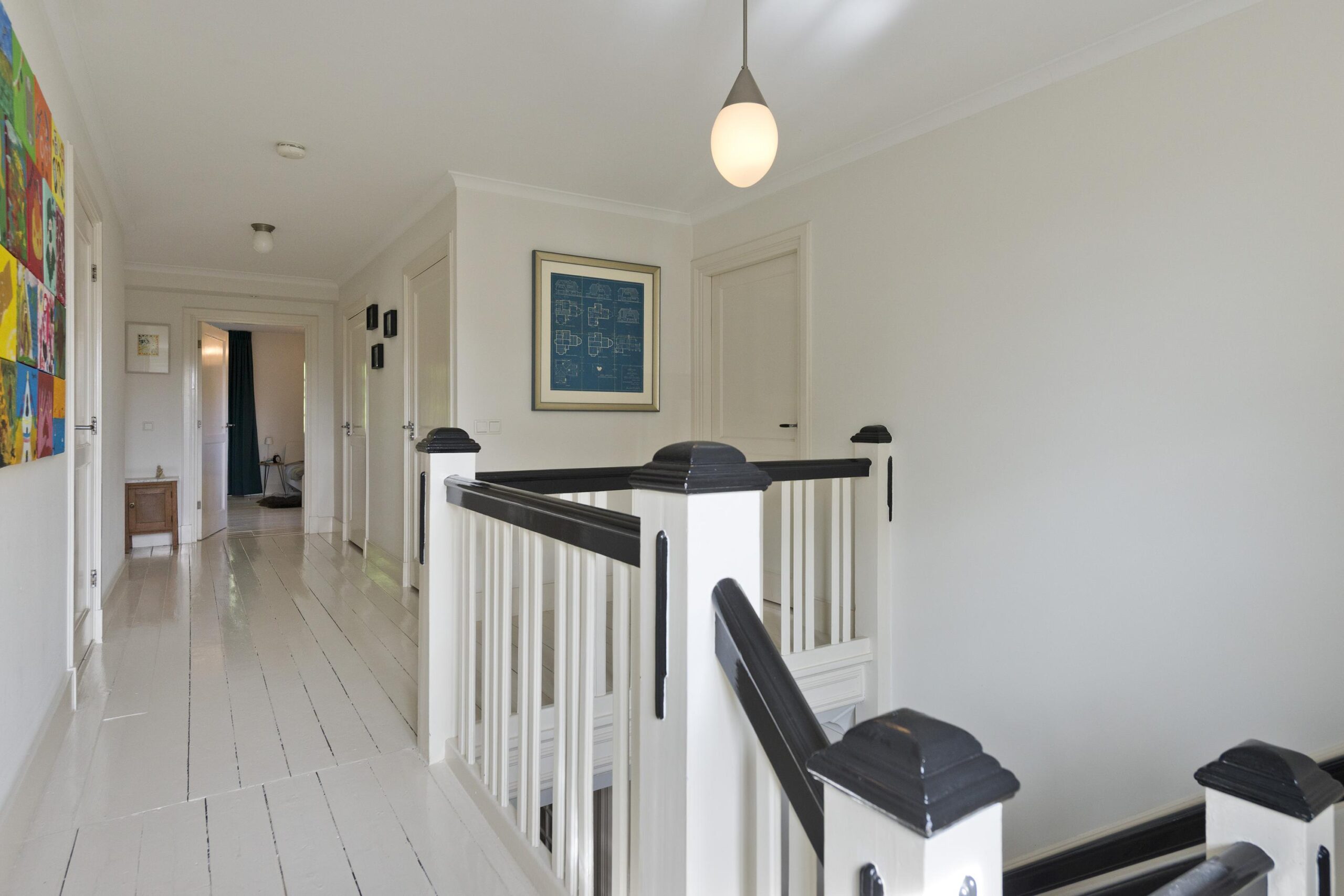Eerste verdieping: via de originele trapopgang bereikt u de ruime overloop met separaat toilet. Hier bevinden zich vier zeer royale slaapkamers, waarvan twee met toegang tot een eigen balkon. De moderne badkamer op de overloop is voorzien van een inloopdouche en dubbele wastafel. De ouderslaapkamer beschikt daarnaast over een luxe en-suite badkamer met ligbad, inloopdouche en dubbele wastafel.