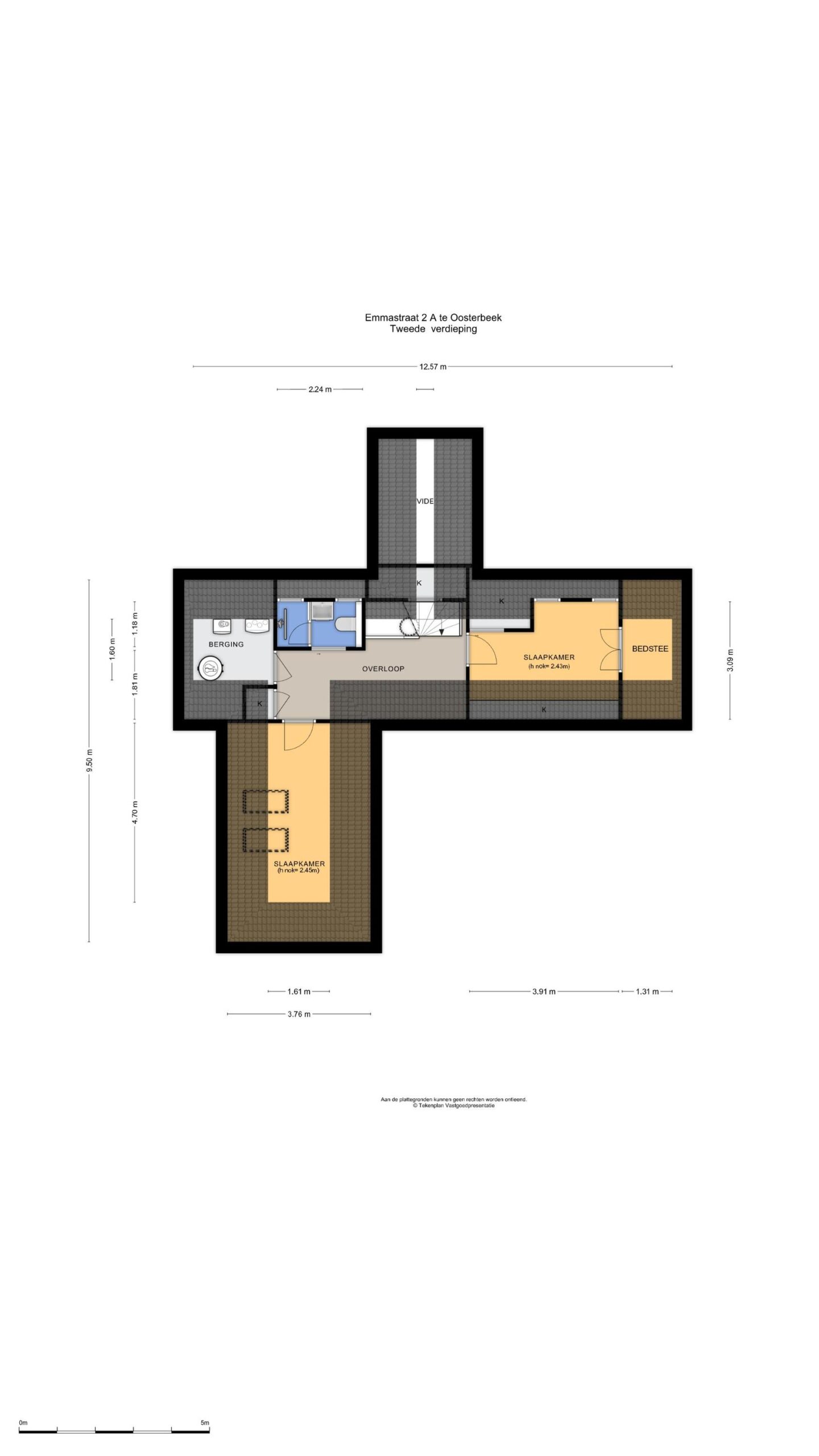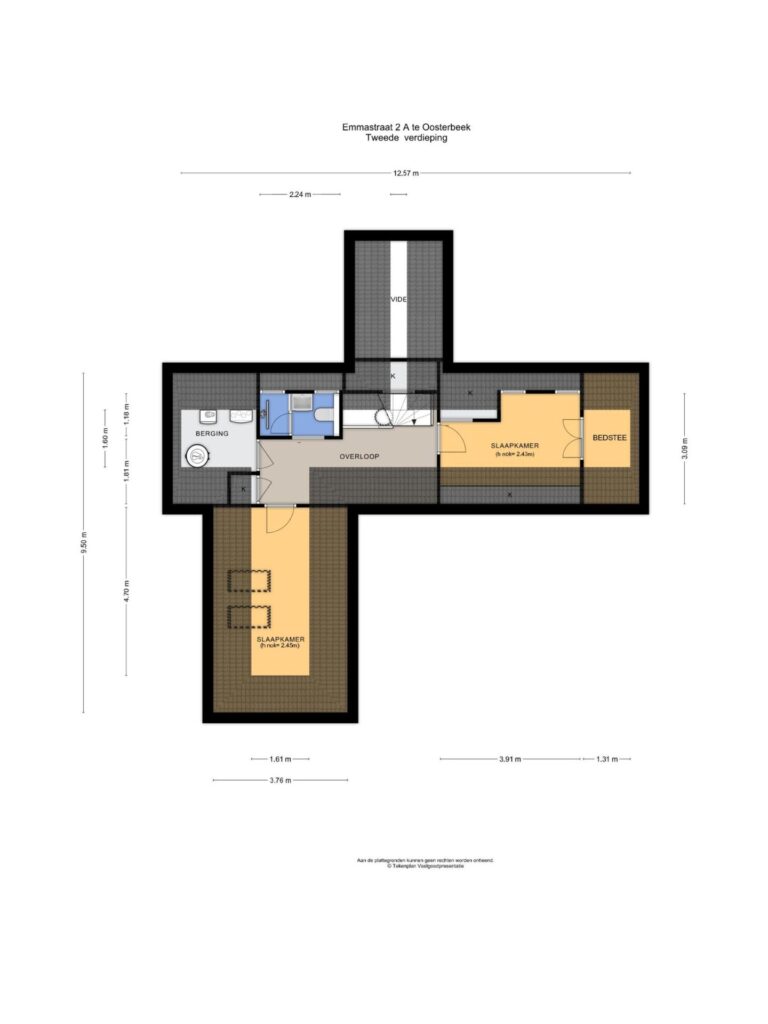 Tweede verdieping: een vaste trap leidt naar de tweede verdieping met nog eens twee ruime slaapkamers, waarvan één momenteel in gebruik is als ontspanningsruimte. Ook treft u hier een derde badkamer met douche, toilet en wastafel, evenals een royale bergruimte en stookruimte.