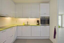De woning beschikt over een royale en zonnige woonkamer met loggia, waar binnen en buiten naadloos in elkaar overlopen. De hoogwaardige afwerking en het moderne karakter zorgen voor een luxe en comfortabele leefomgeving.