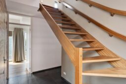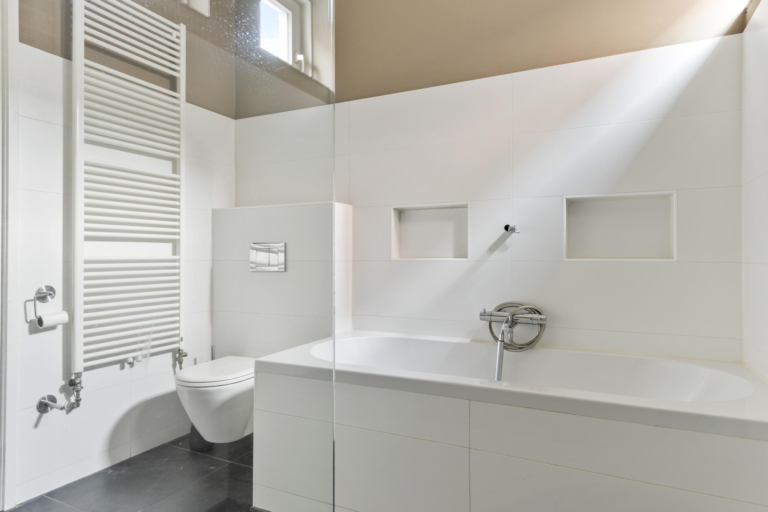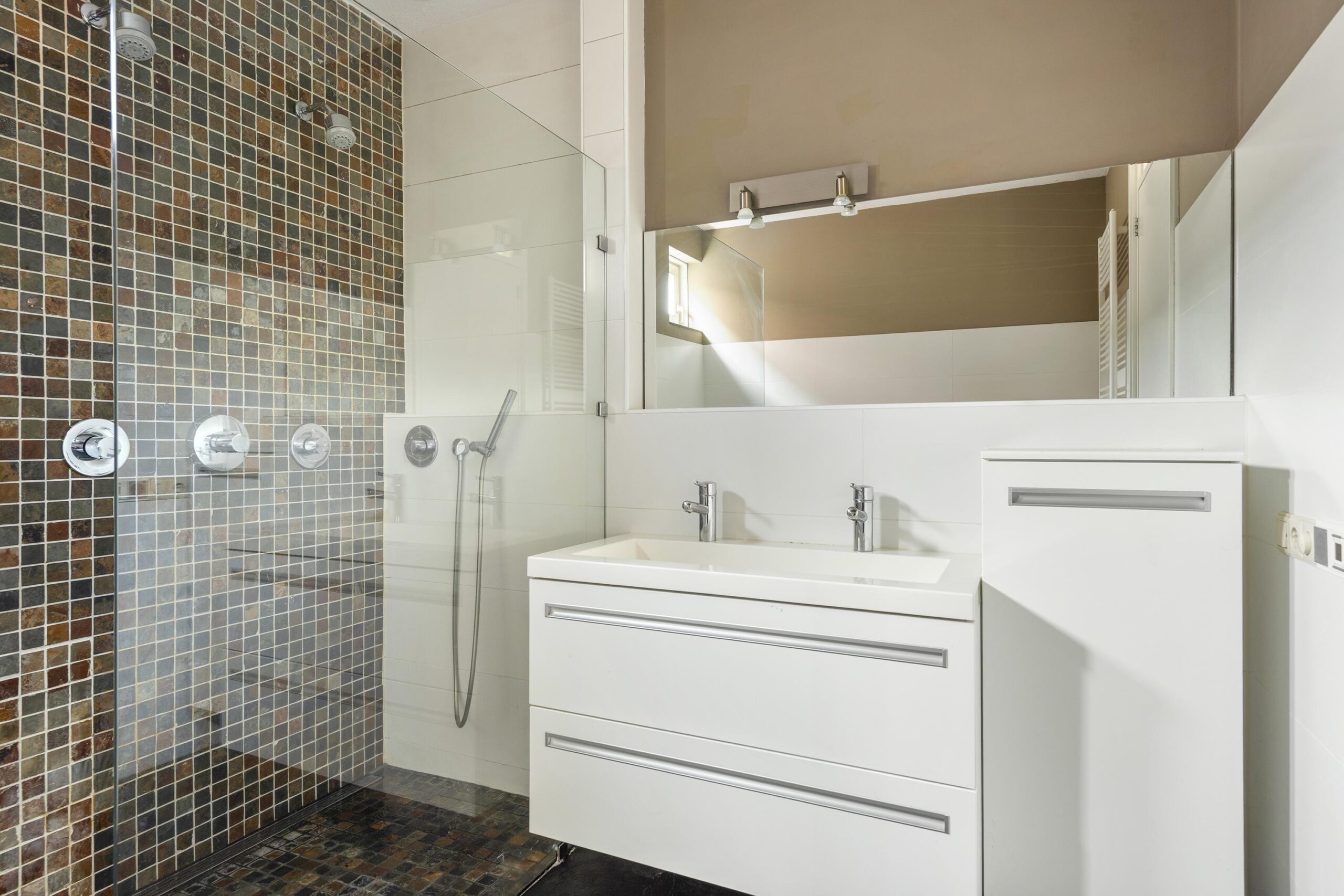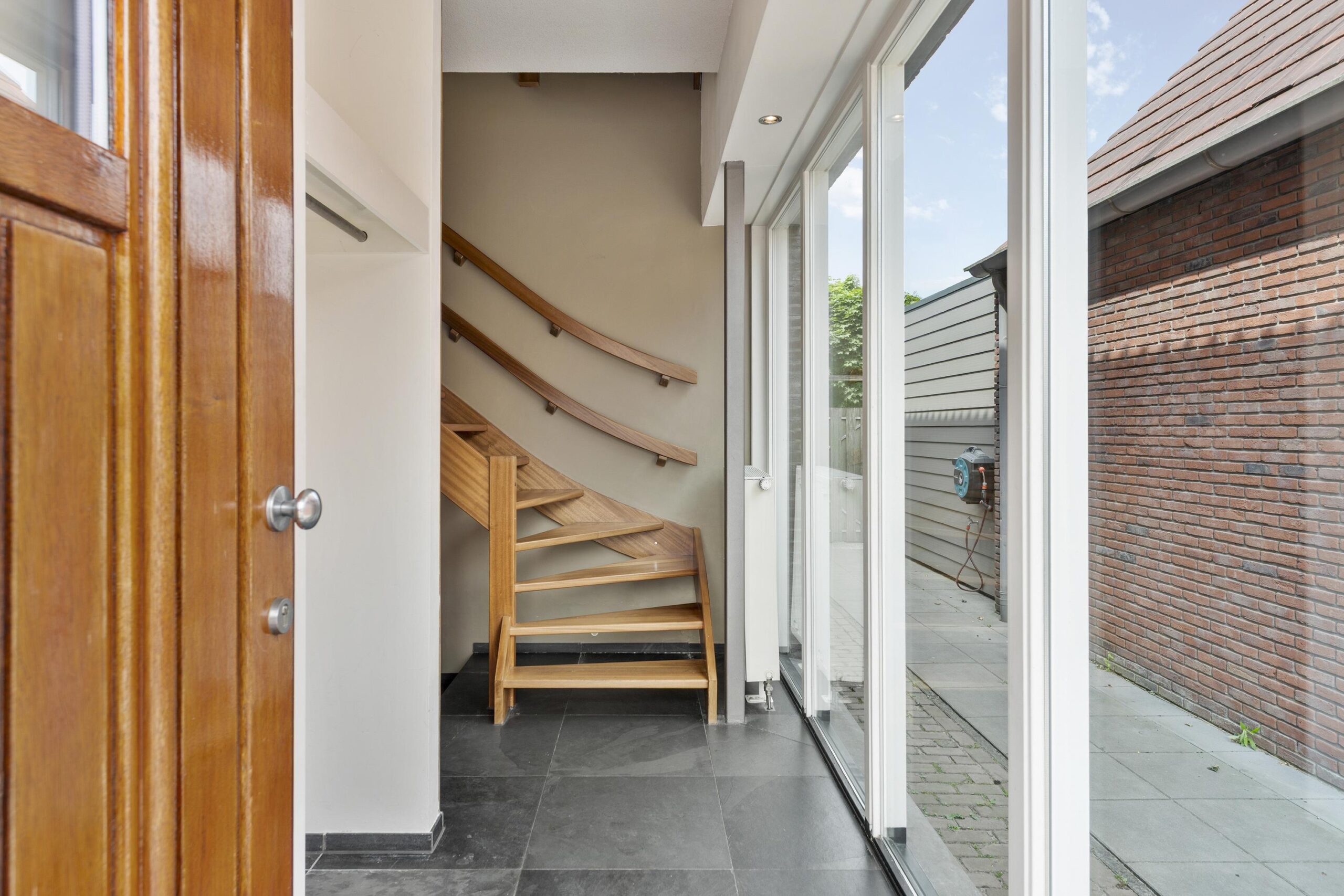 Via de voortuin met oprit en grondkabel voor elektrisch laden bereikt u de entree. De ruime en lichte hal is voorzien van grote raampartijen en een doorgelegde leistenen vloer. Vanuit de hal heeft u toegang tot de meterkast, het toilet met wandcloset en fontein, en de bijkeuken/wasruimte met hoge kasten en een kitchenette. De moderne, ruim opgezette badkamer is uitgerust met een hardglazen dubbele inloopdouche, ligbad, wastafelmeubel, wandcloset en radiator. Verder bevinden zich op deze verdieping drie ruime slaapkamers, elk met draai/kiepramen en veel lichtinval. Een fraaie hardhouten trap leidt naar de eerste verdieping.