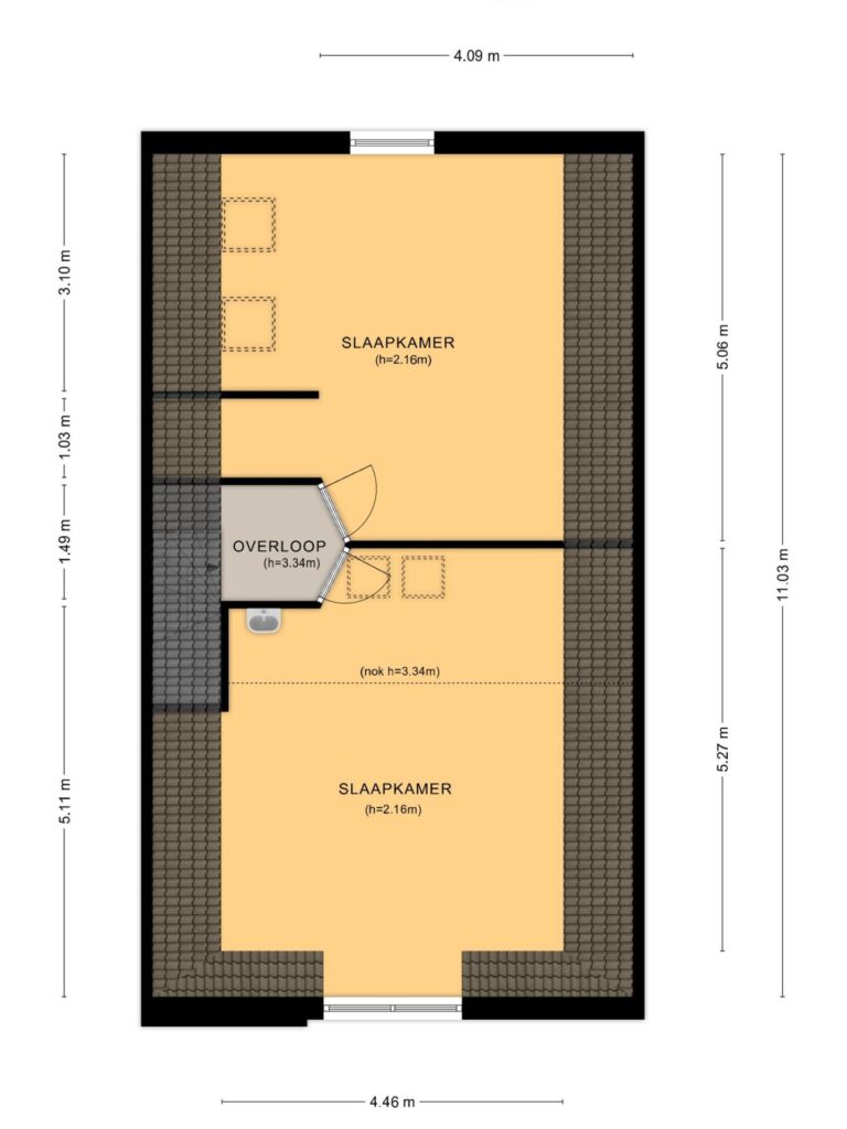 1e verdieping: overloop en 2 zeer ruime slaapkamers, die eventueel geheel naar eigen smaak en wens opnieuw kunnen worden opgedeeld.