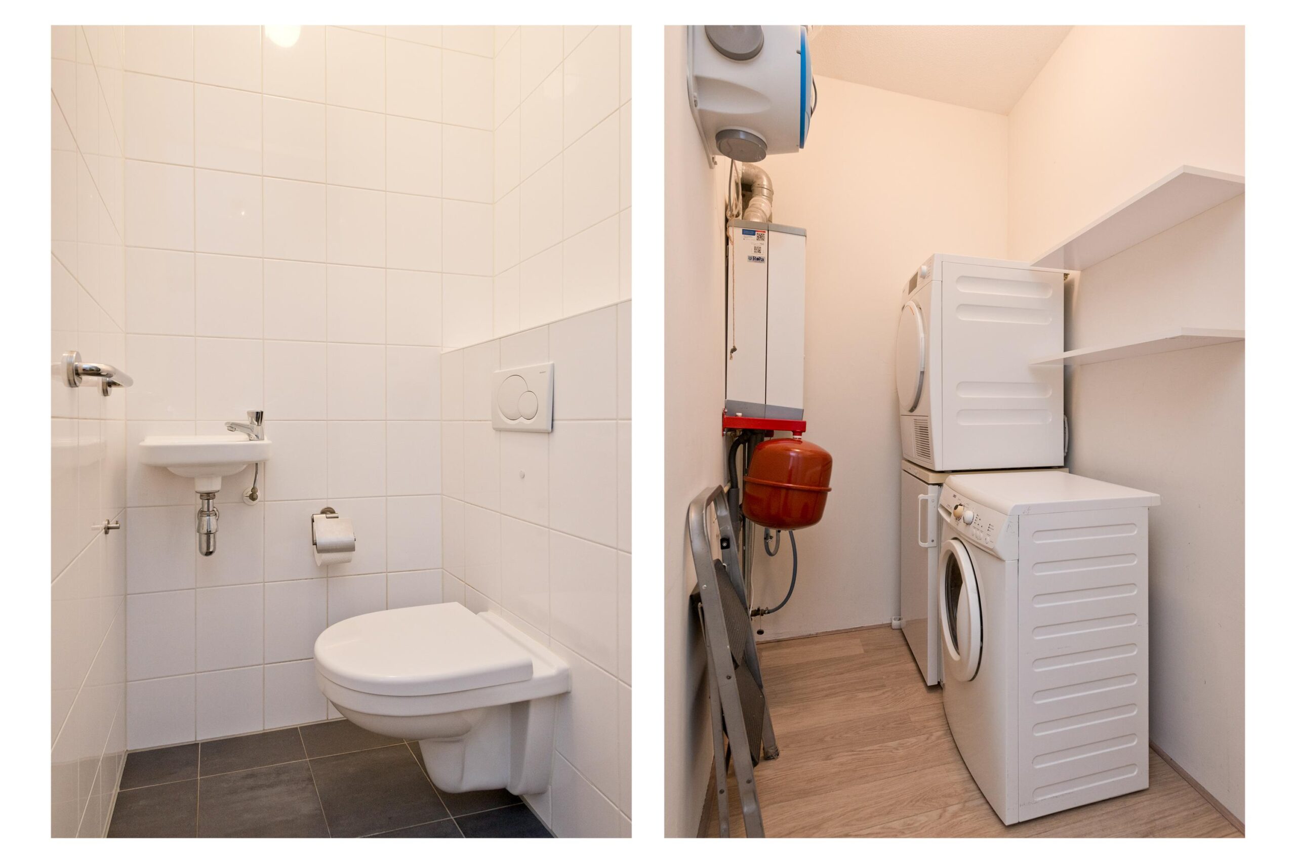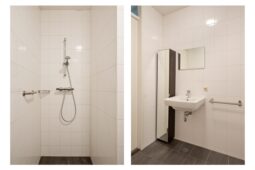 Indeling: via de centrale entree bereikt u het appartement op de vierde woonlaag. U komt binnen in een ruime hal met bergkast en technische ruimte, waar ook de aansluiting voor wasmachine en droger aanwezig is. Verder vindt u hier een modern toilet en een moderne badkamer met douche en wastafel.