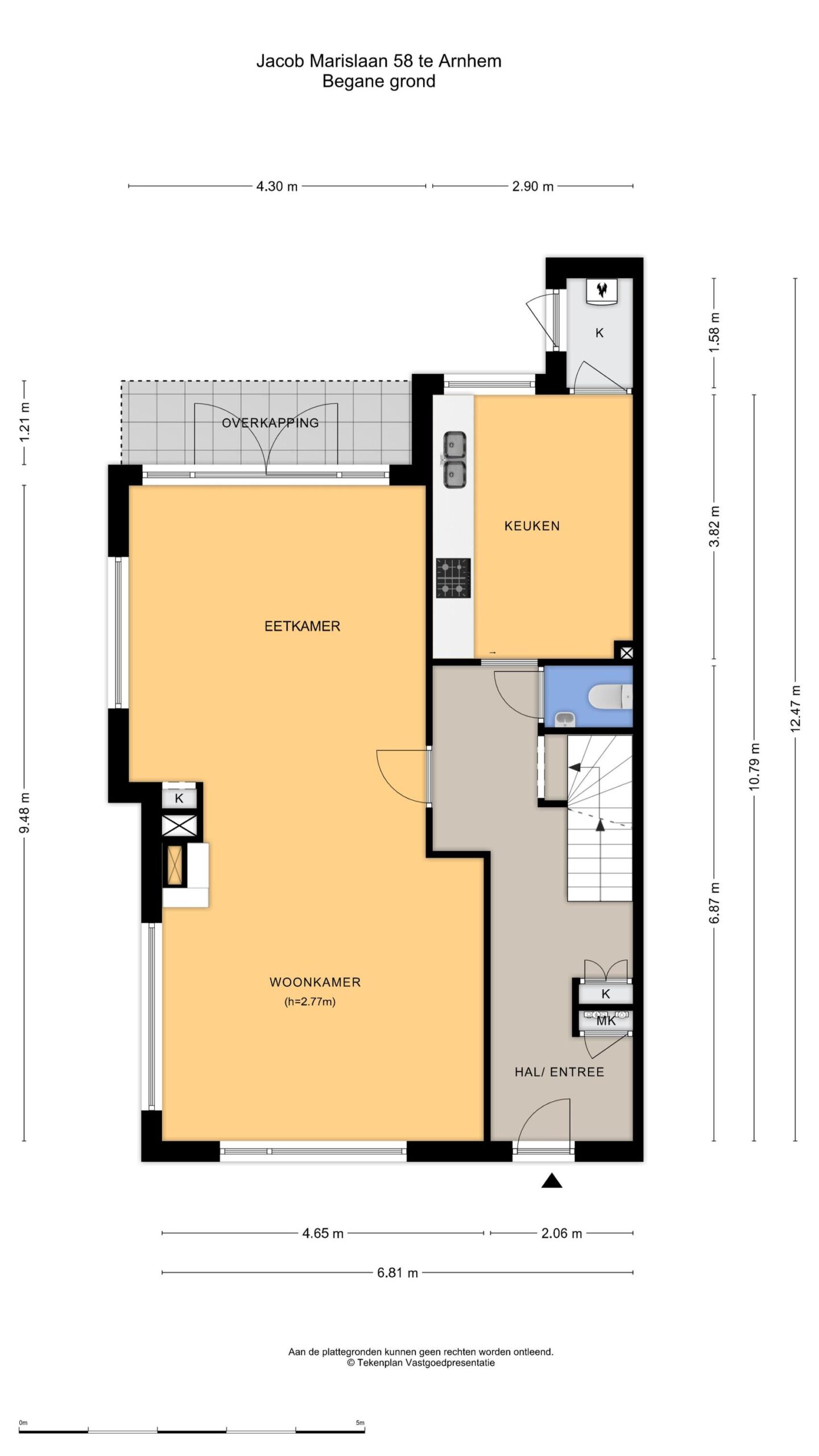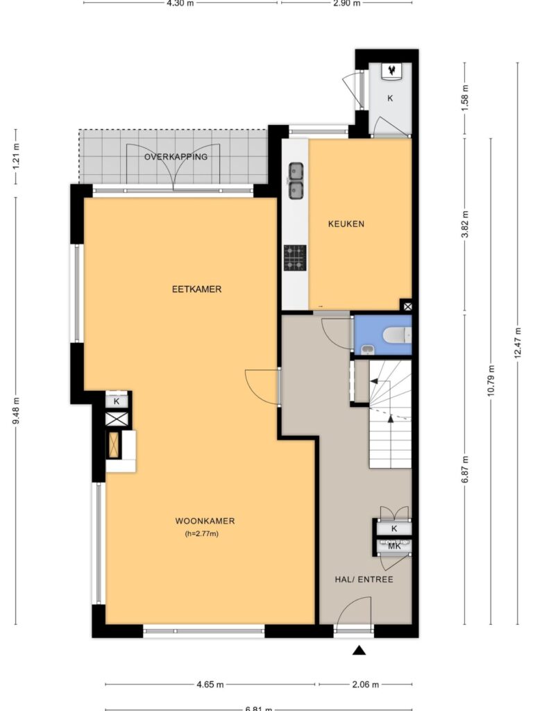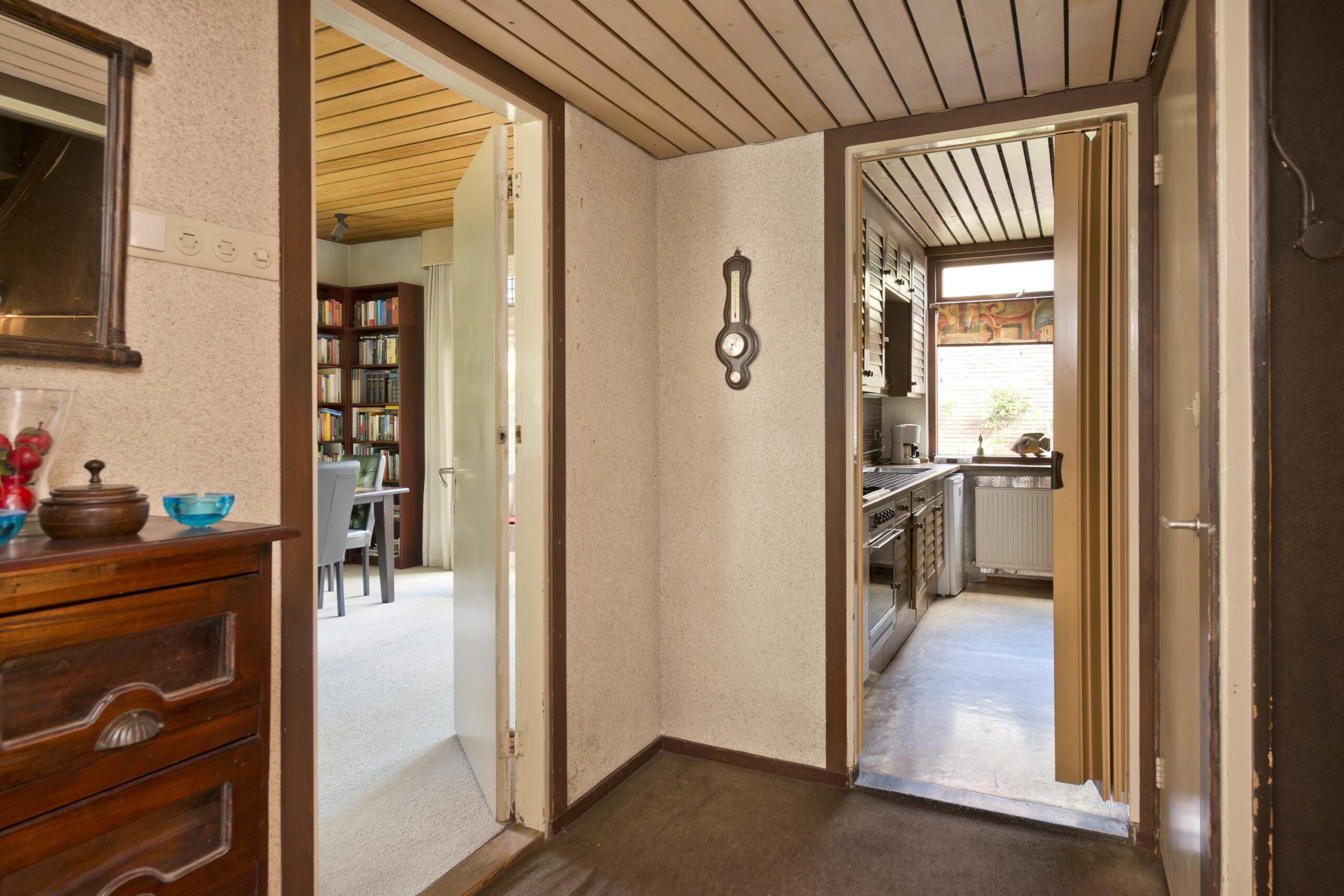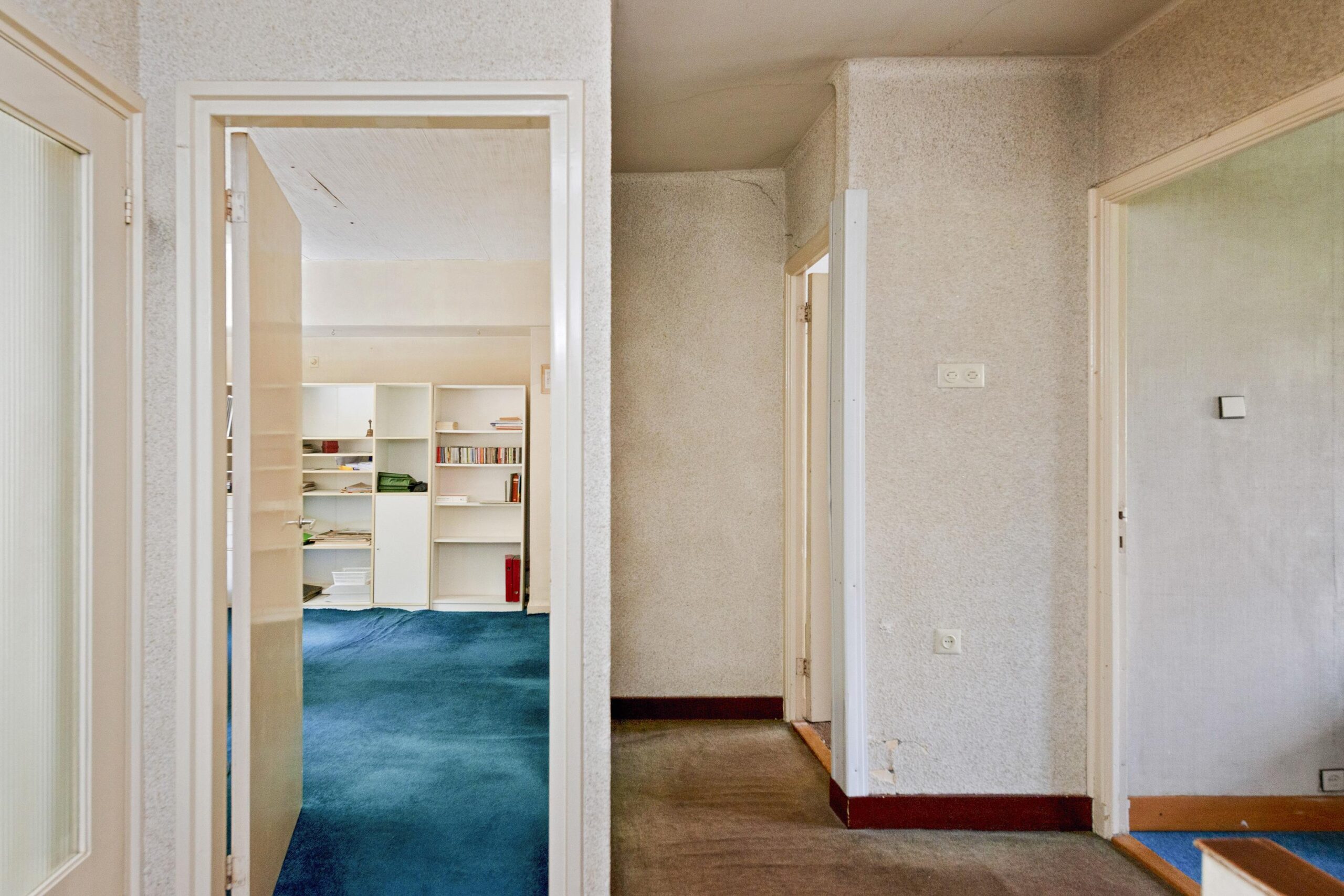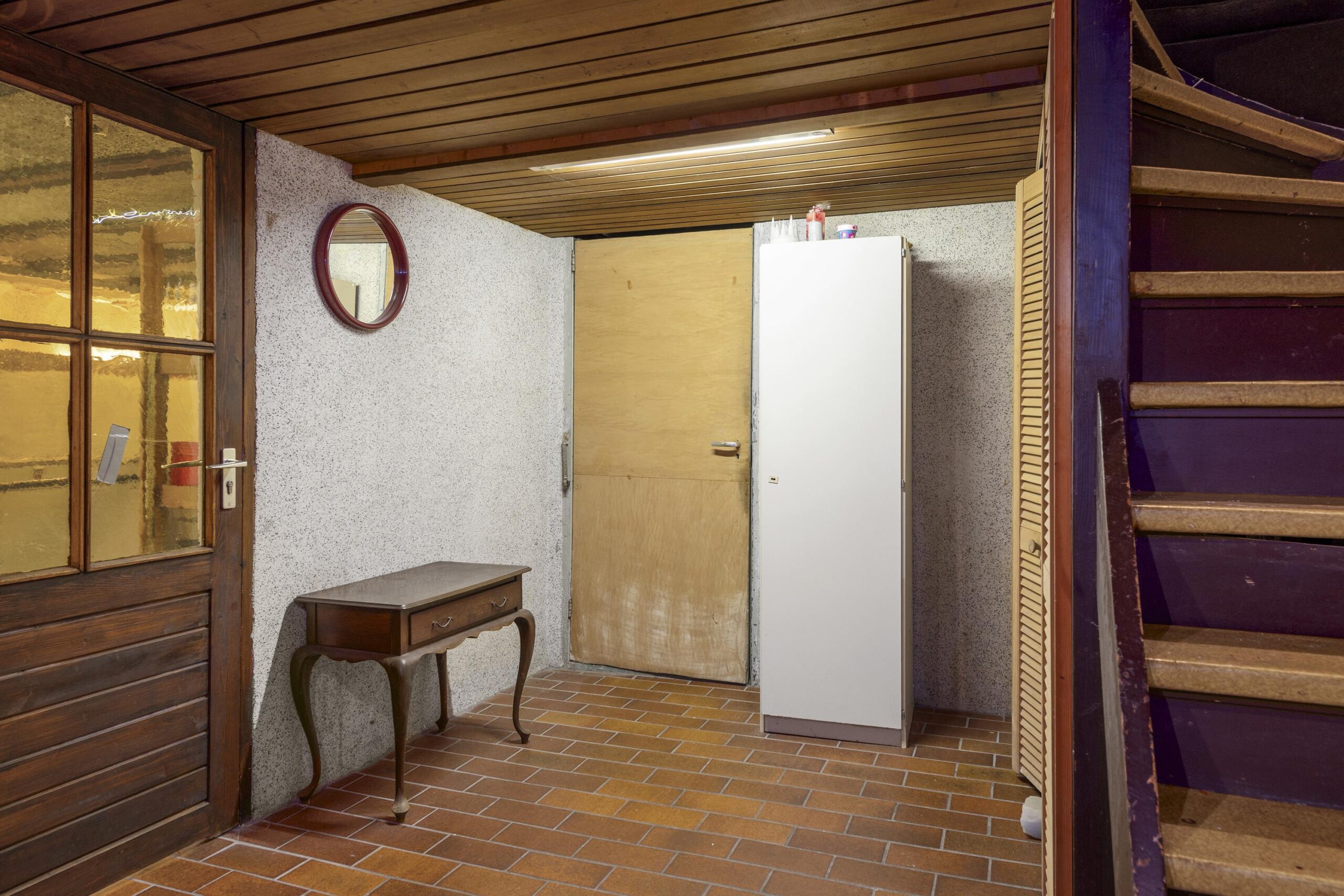 Begane grond: entree met ruime hal, toilet en toegang tot de provisie- en waskelder. Deze leidt naar de royale, volledig uitgegraven hobbykelder. De lichte woonkamer met open haard en openslaande deuren geeft direct toegang tot de zonnige tuin. Vanuit de hal bereik je de eetkeuken, grenzend aan de achtertuin.