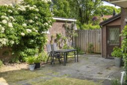 Buitenruimte: de zonnige, besloten achter- en zijtuin biedt veel privacy. De vrijstaande stenen garage maakt het geheel compleet.