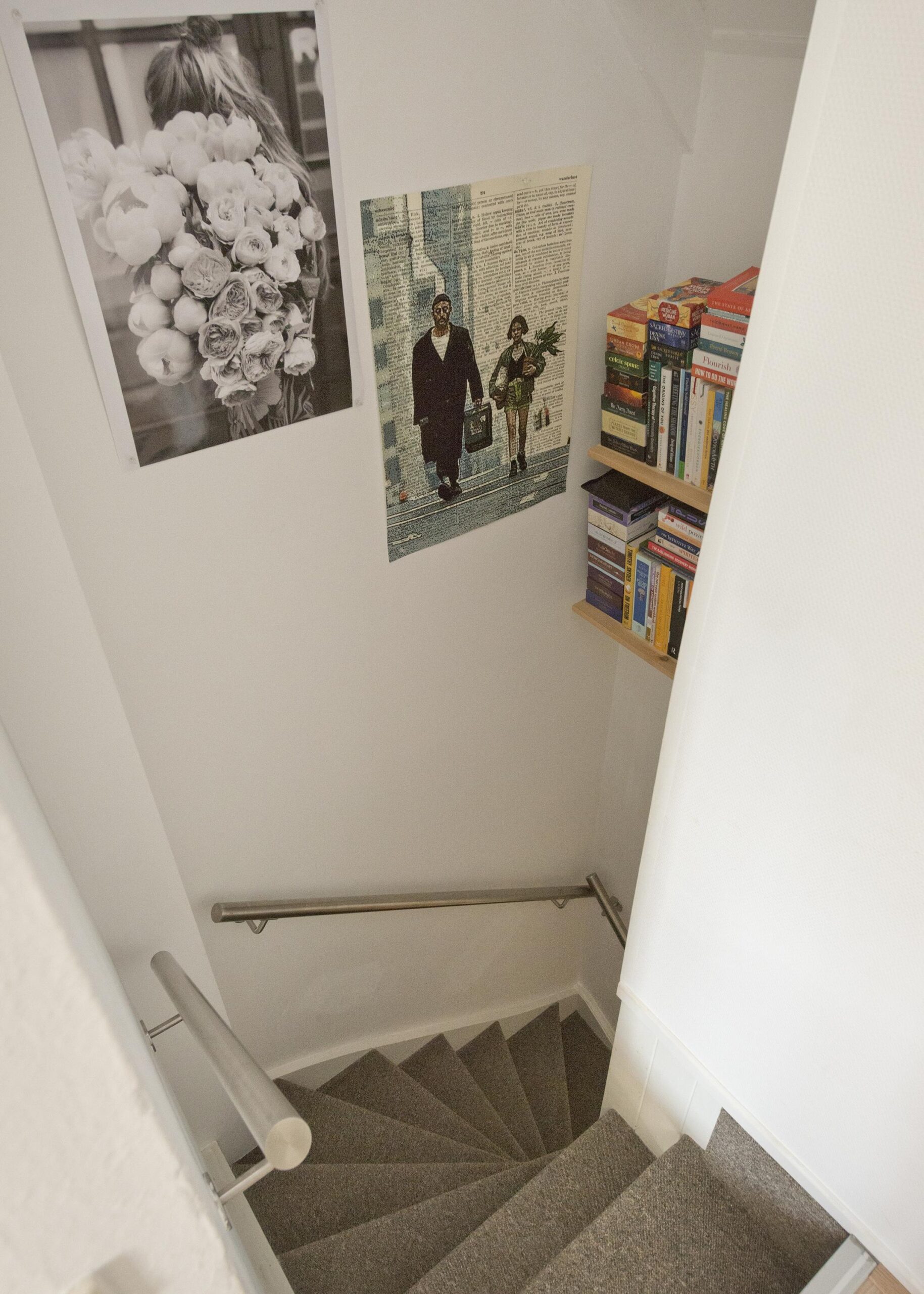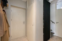 Centrale entree met trapopgang naar de eerste verdieping. In de onderbouw bevinden zich de inpandige garage, de berging en de privéparkeerplaats.