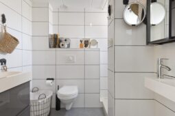– Fraaie badkamer met douche, wastafelmeubel en tweede toilet