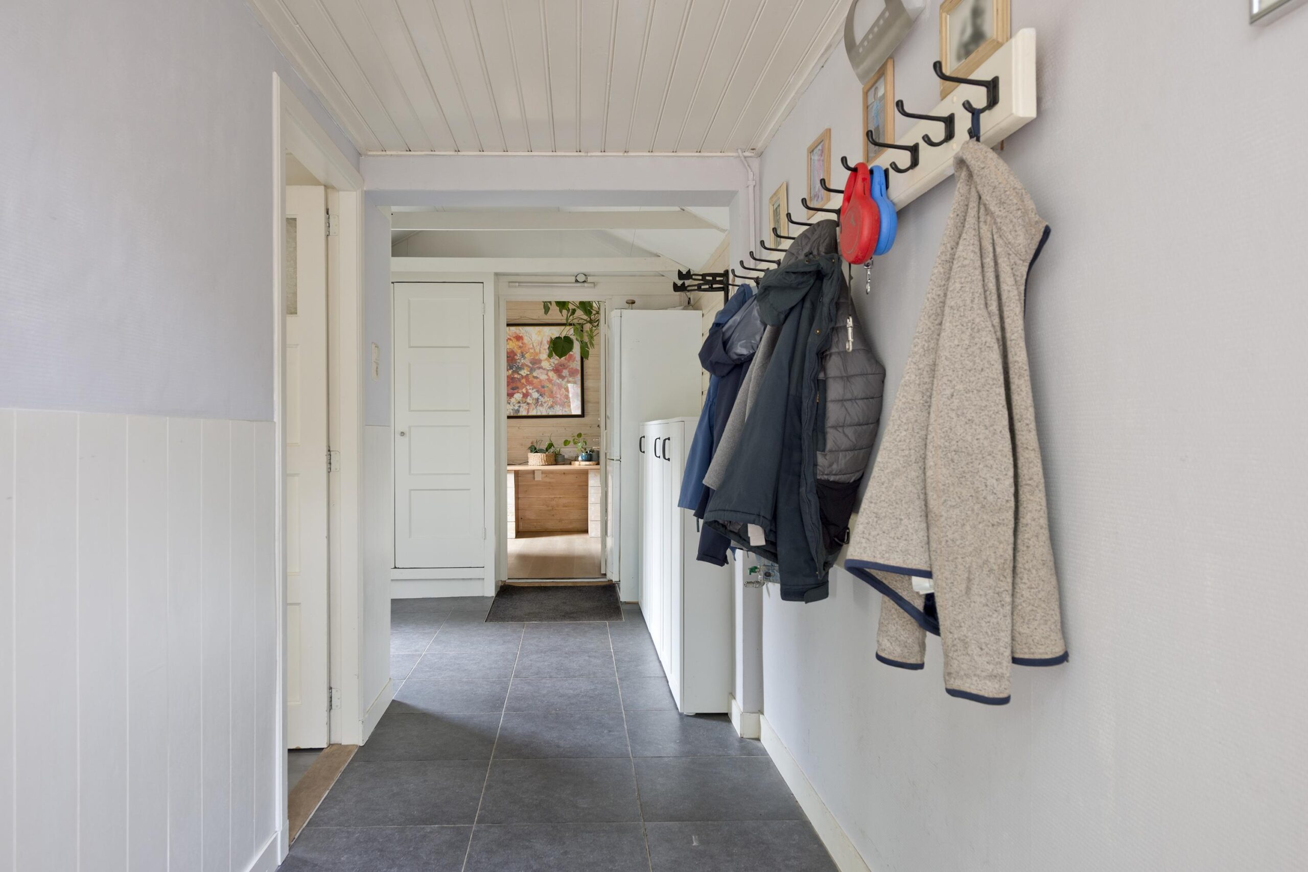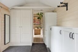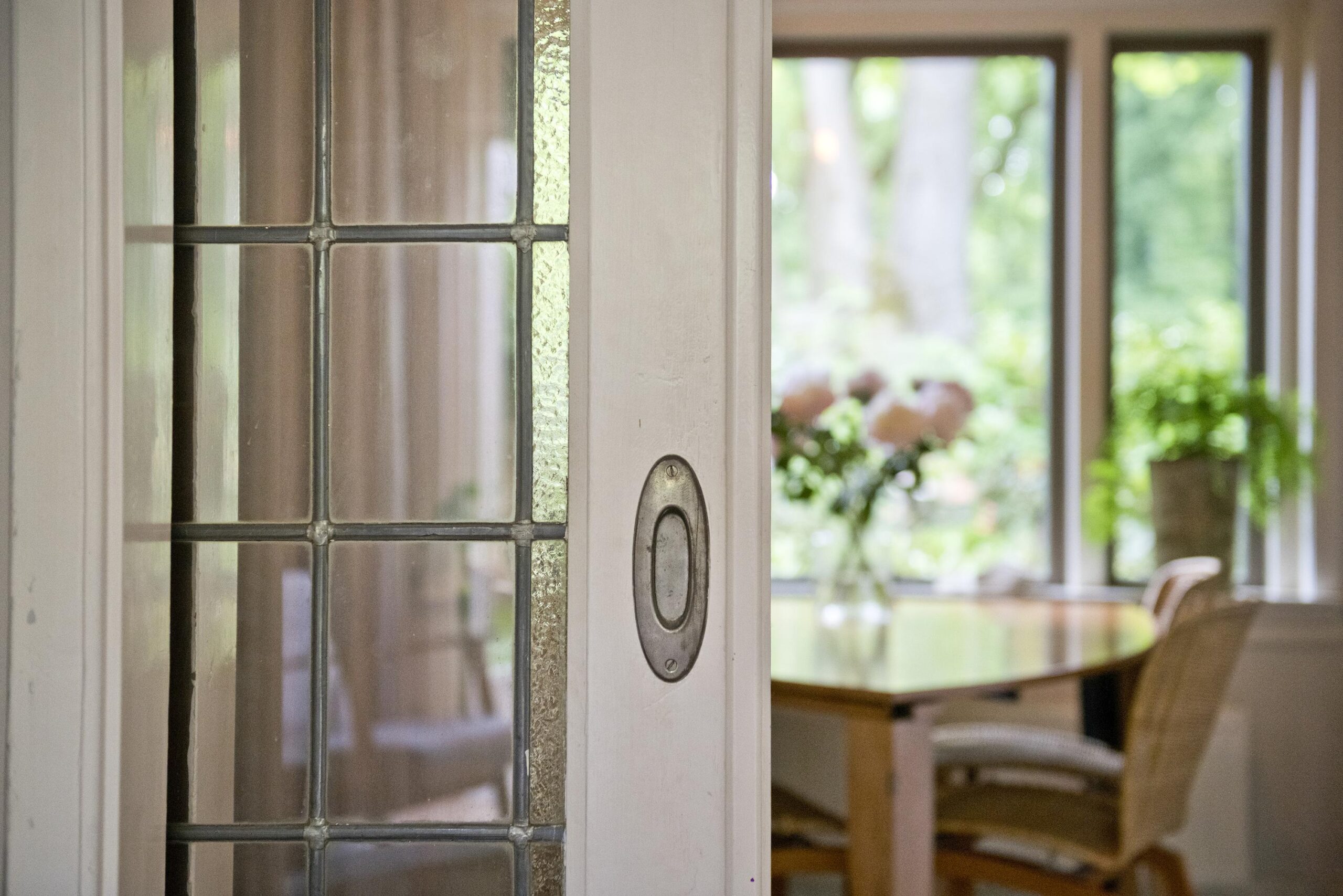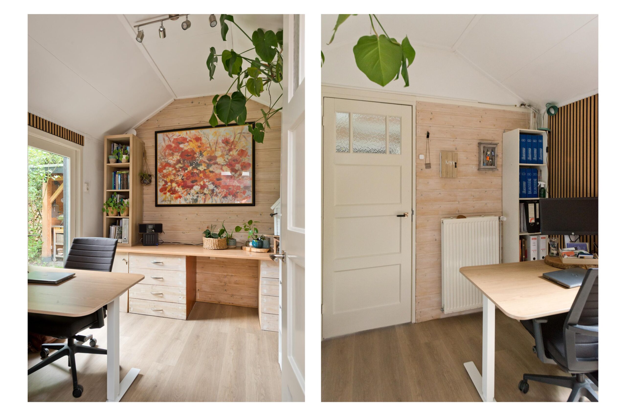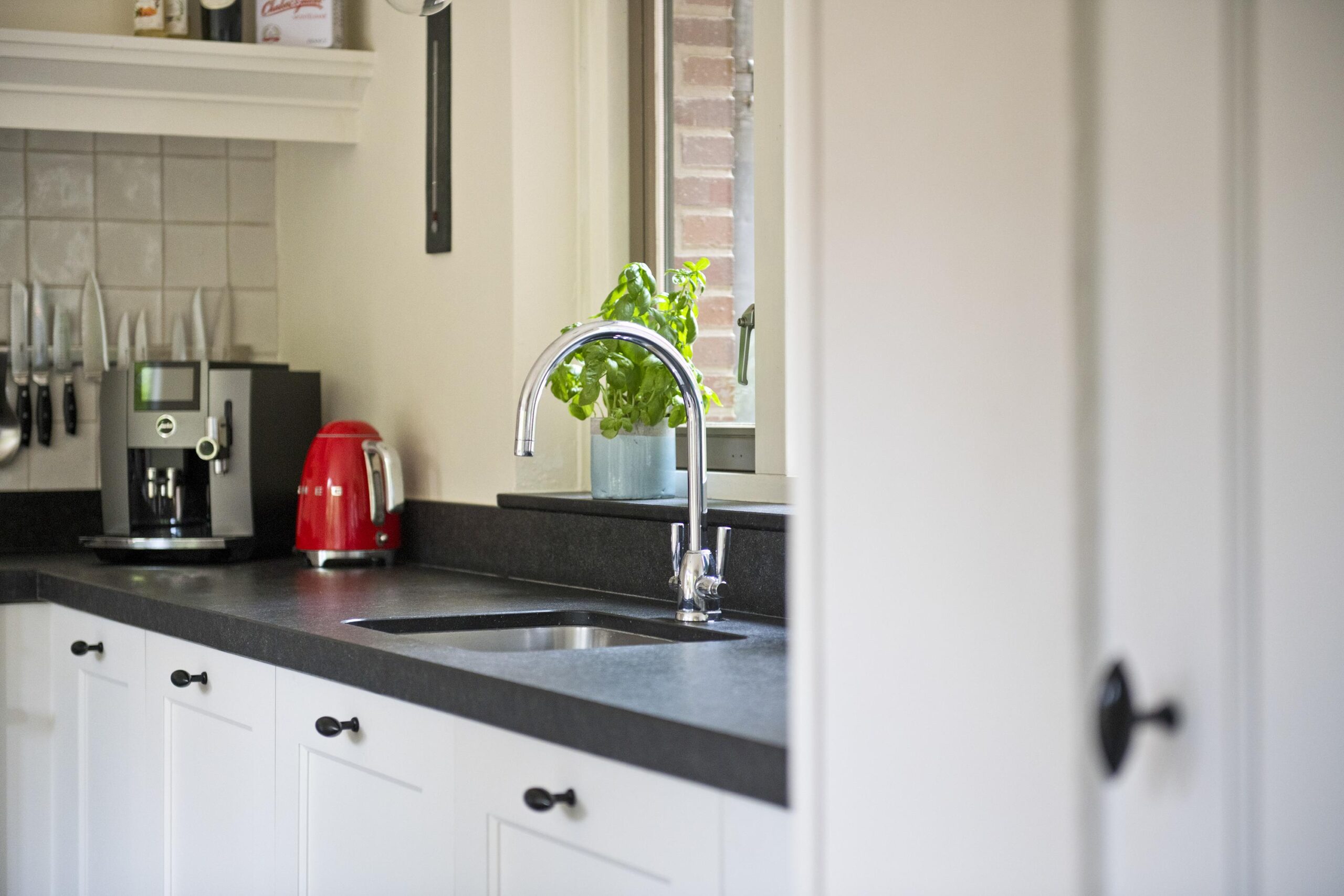 Begane grond: entree via de voordeur naar een ruime hal met trapopgang en moderne toiletruimte voorzien van wandcloset en fonteintje. De sfeervolle woonkamer en suite beschikt over authentieke schouwen, glas-in-lood schuifdeuren, massief houten vloer een inbouwkast en openslaande deuren naar de achtertuin. De aangebouwde woonkeuken is voorzien van een tuindeur, tijdloze inbouwkeuken met natuurstenen blad en inbouwapparatuur, eveneens met openslaande deuren naar de tuin. Vanuit de keuken is er toegang tot de bijkeuken (voormalige garage), voorzien van een vaste kast met de CV-installatie, een eigen tuindeur en openslaande deuren naar de oprit. Aansluitend bevindt zich een praktische werk-, studeer- of slaapkamer op de begane grond, ook met toegang tot de tuin.