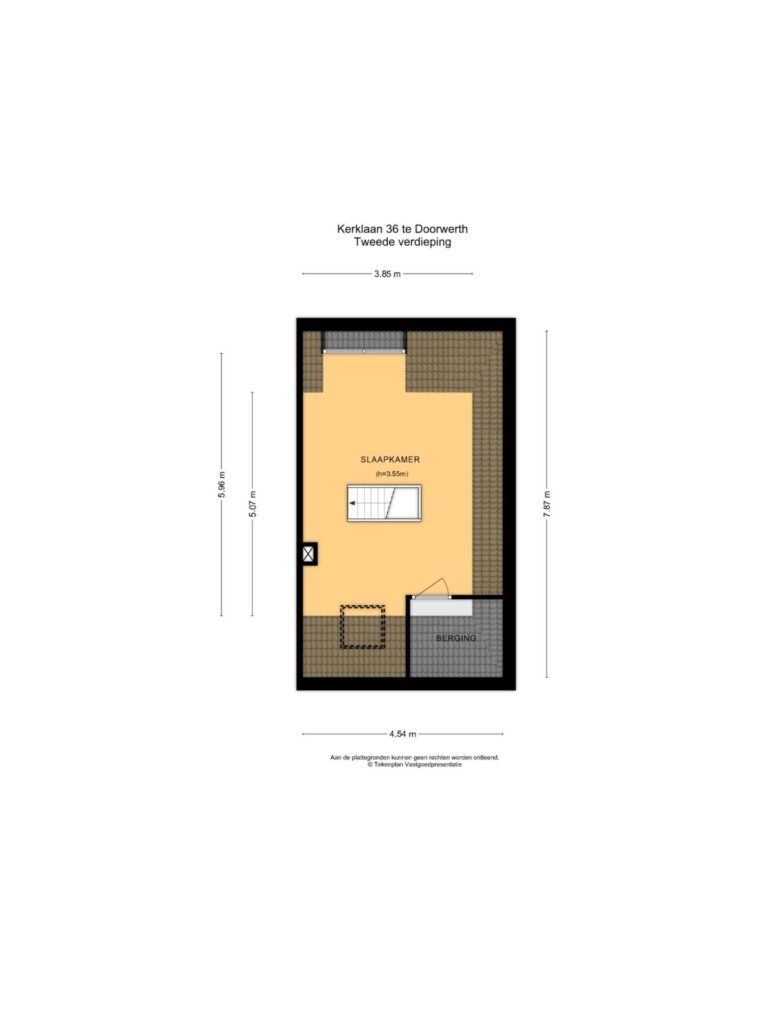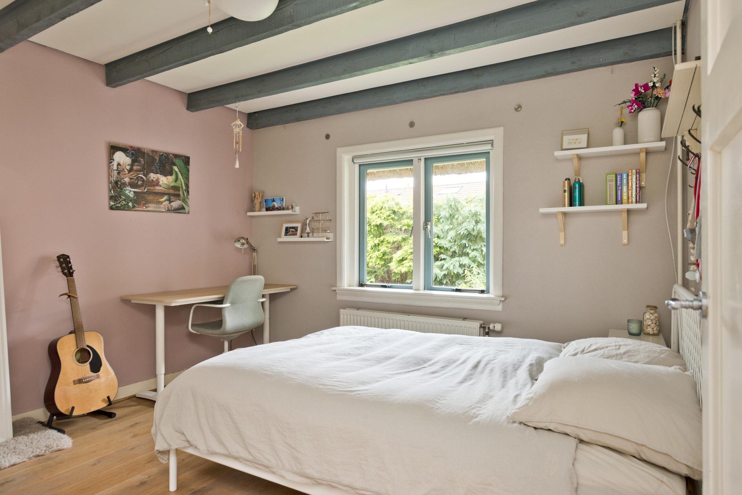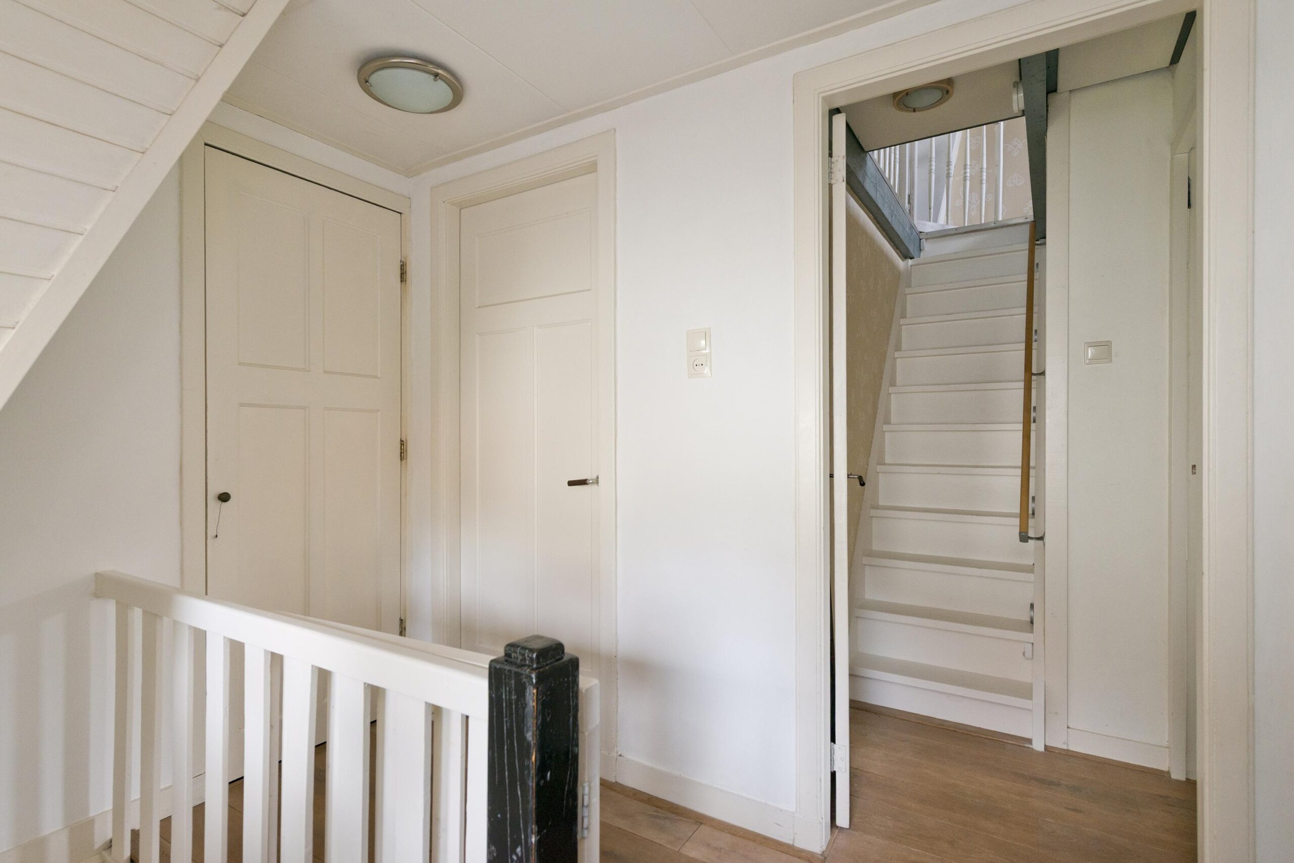 Tweede verdieping: via een vaste trap bereikt u de zolderverdieping, momenteel in gebruik als ruime slaapkamer. Deze verdieping is voorzien van een dakkapel, dakraam, inbouwkast en een indrukwekkend hoge nok.