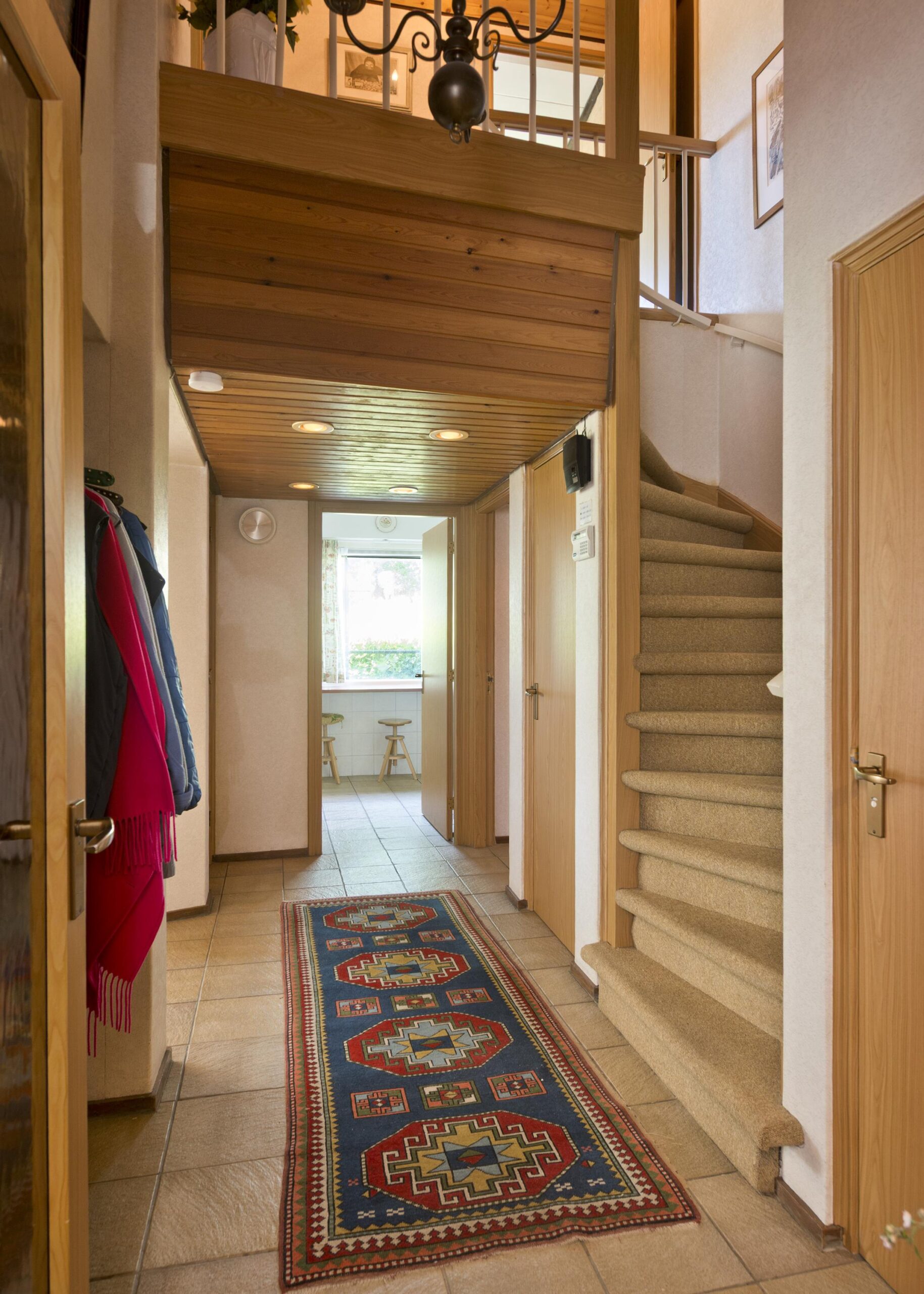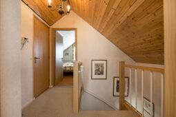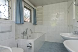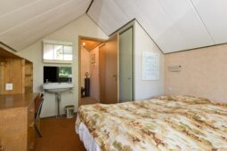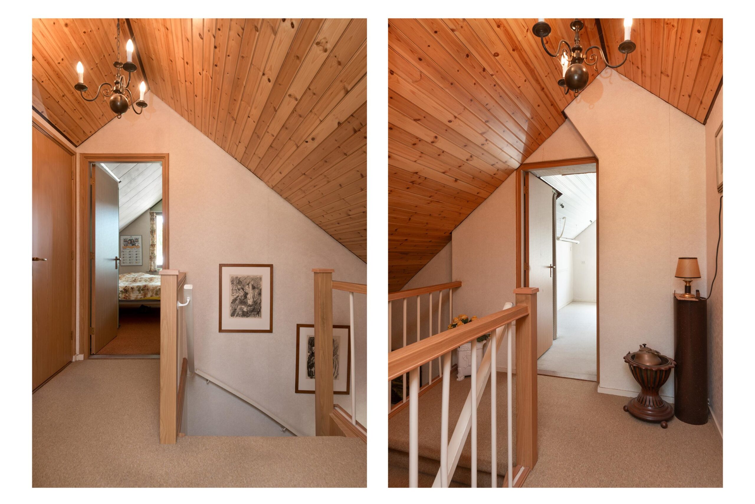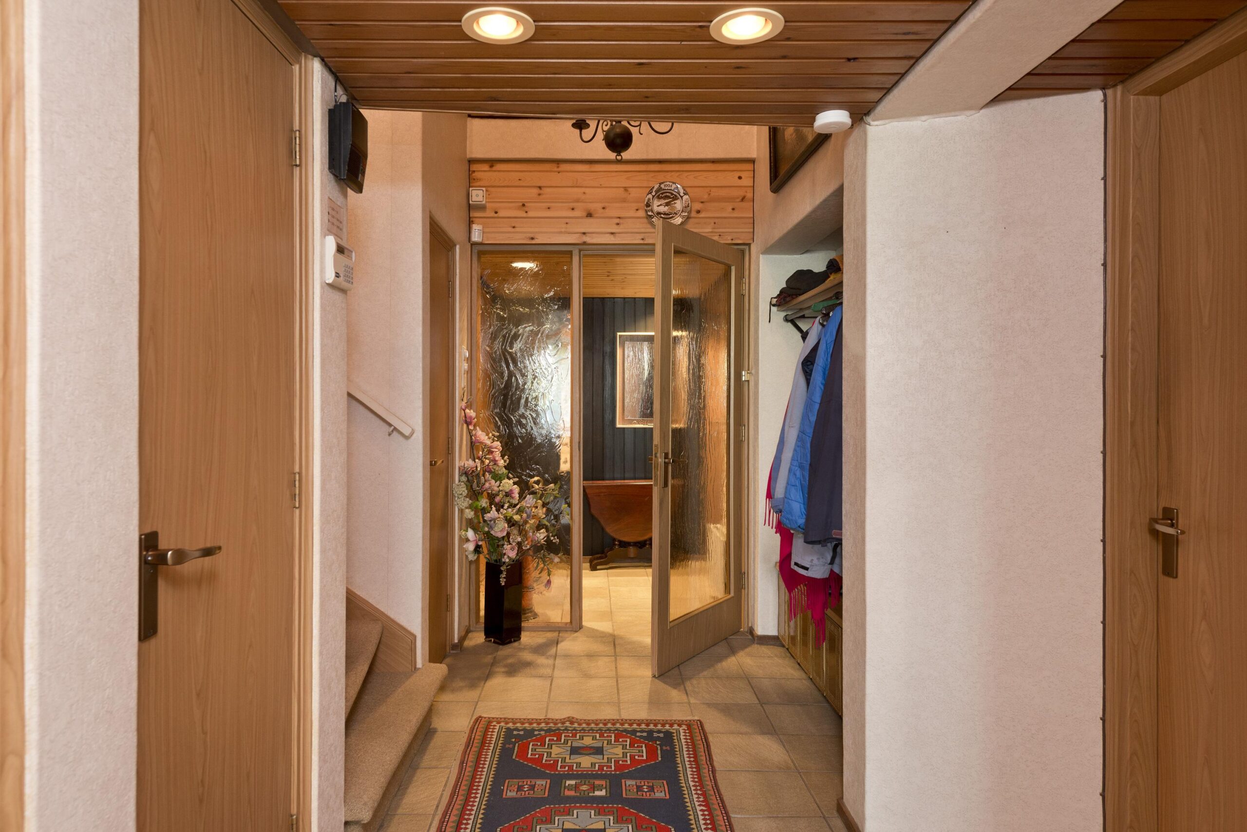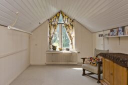 Op de eerste verdieping bevinden zich een overloop, een derde slaapkamer met vaste kast en wastafel, een vierde slaapkamer met dakkapel en toegang tot een berging met CV-opstelling, en een vijfde slaapkamer met wastafel, inbouwkast en toegang tot een royale bergruimte.