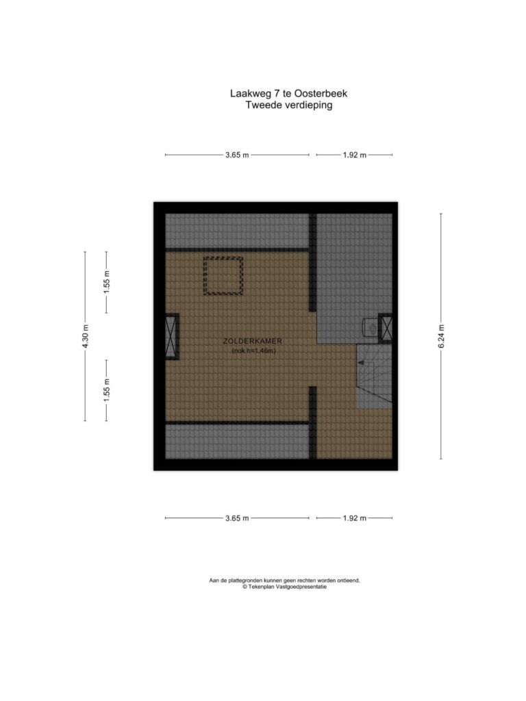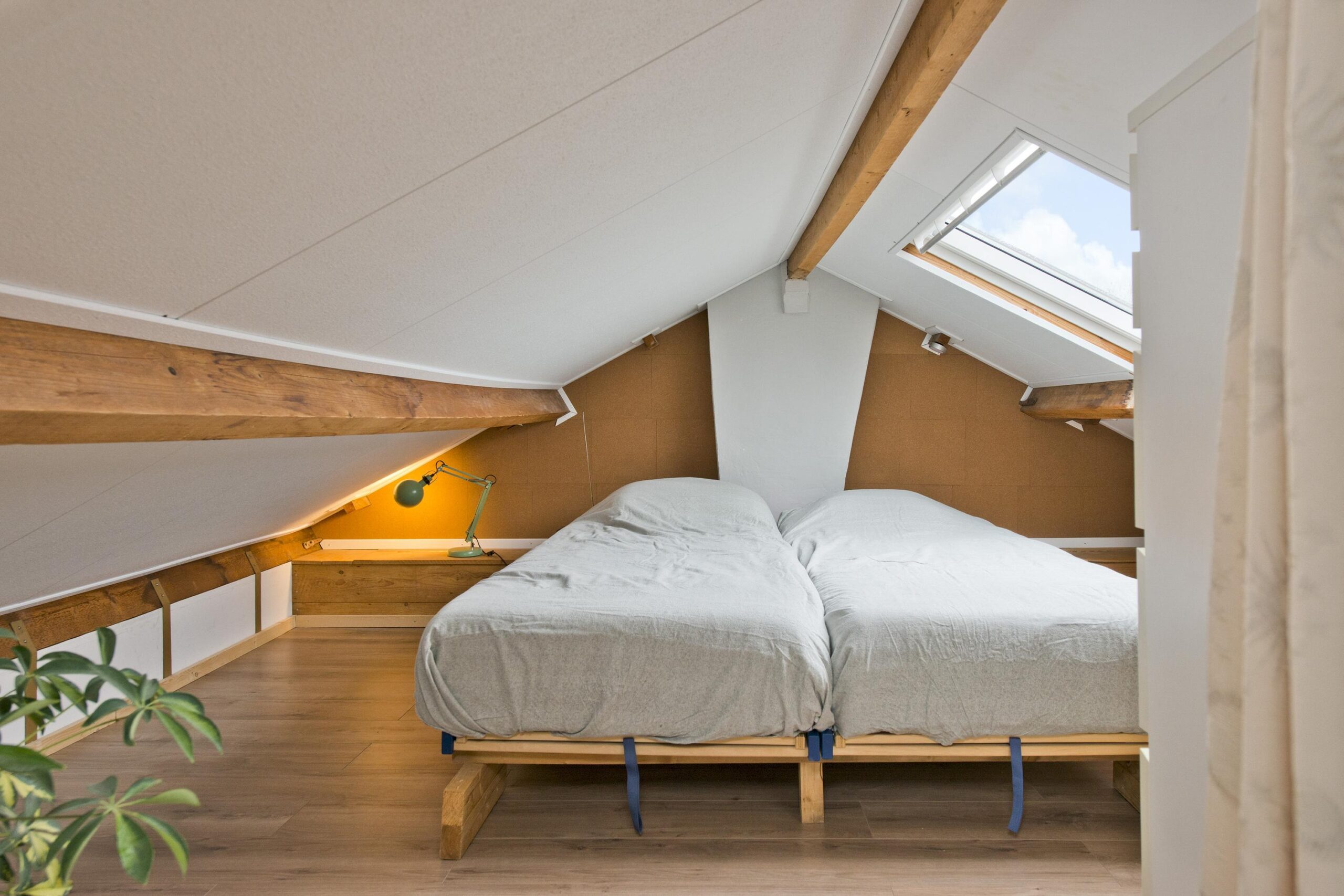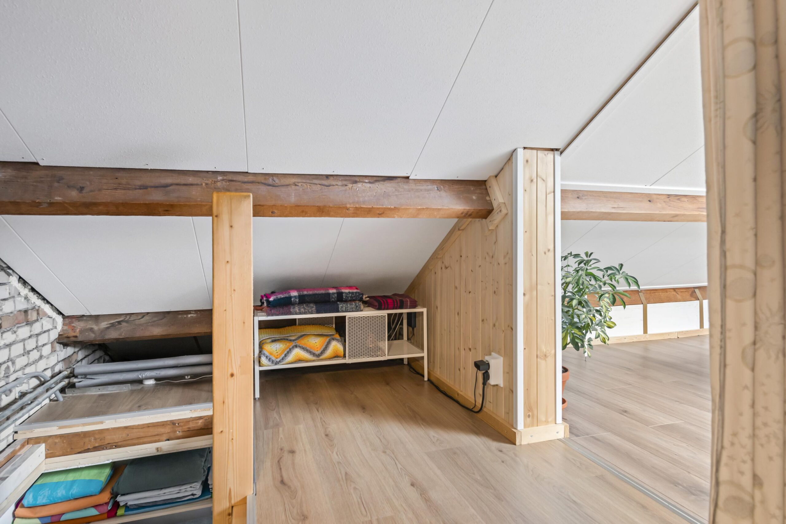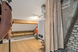 Tweede verdieping: voorzolder met bergruimte en opstelling van de cv-installatie (HR-combiketel uit 2017). Daarnaast een ruime bergzolder/hobbyruimte, momenteel in gebruik als slaapruimte (nokhoogte 1,46 meter).