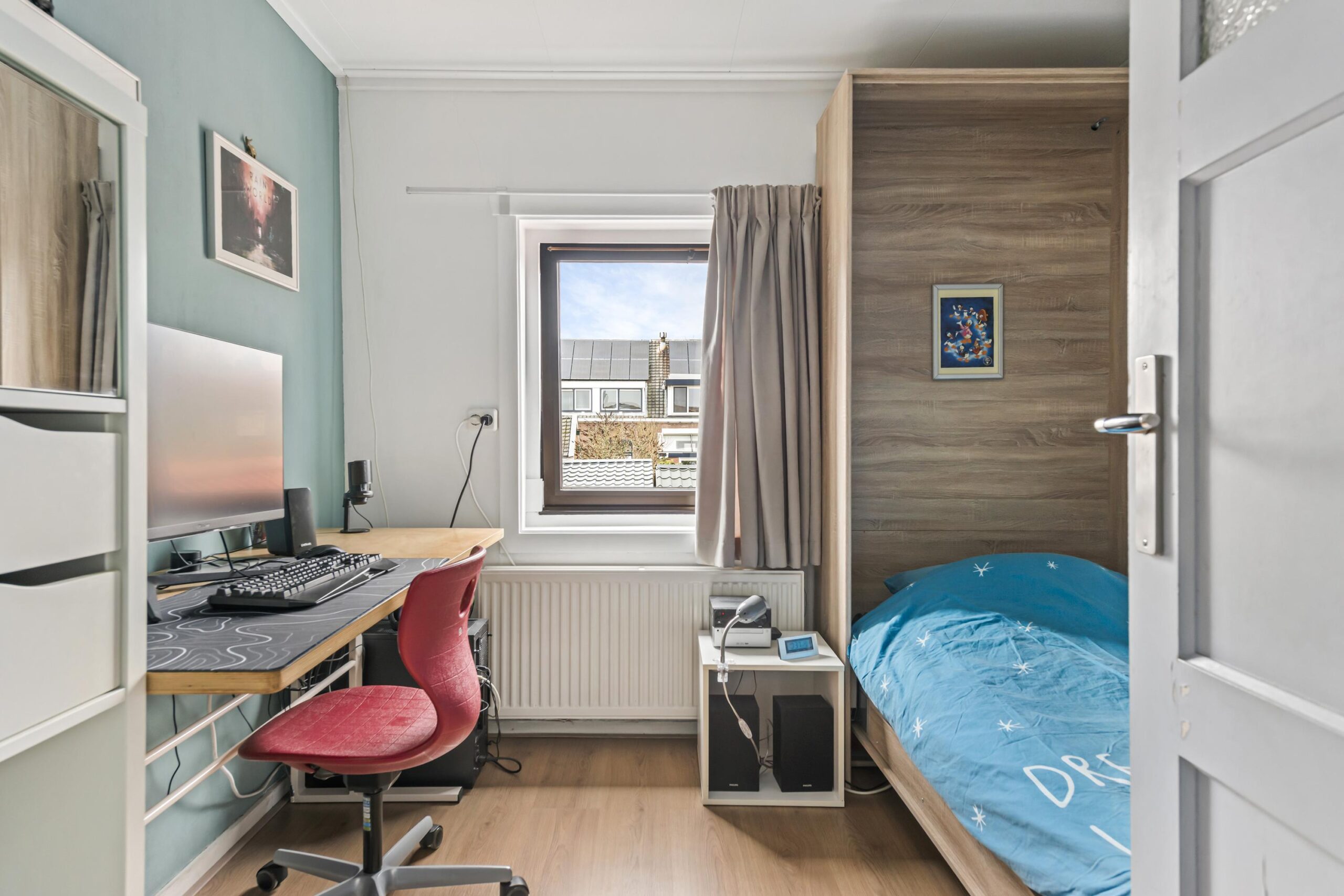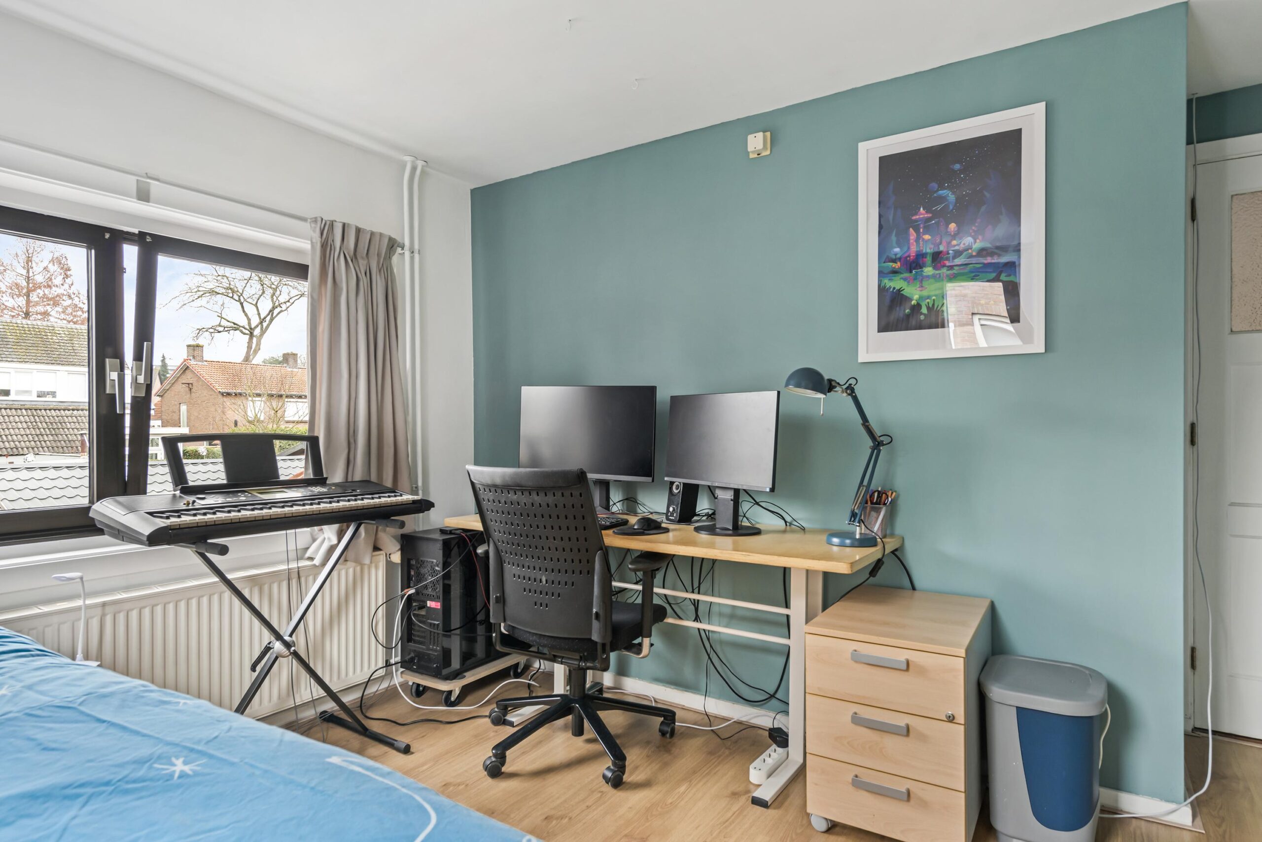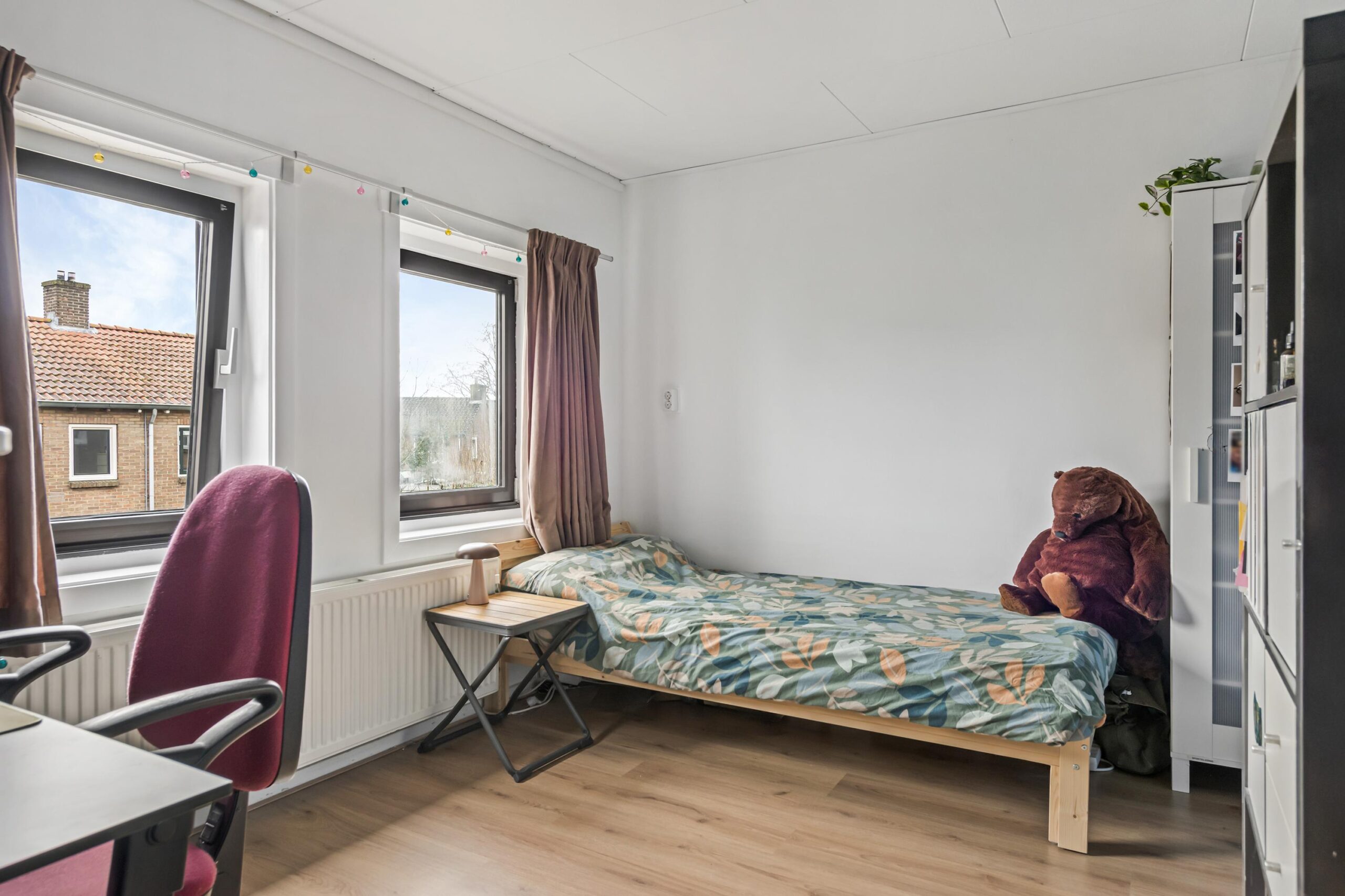 Tweede verdieping: voorzolder met bergruimte en opstelling van de cv-installatie (HR-combiketel uit 2017). Daarnaast een ruime bergzolder/hobbyruimte, momenteel in gebruik als slaapruimte (nokhoogte 1,46 meter).