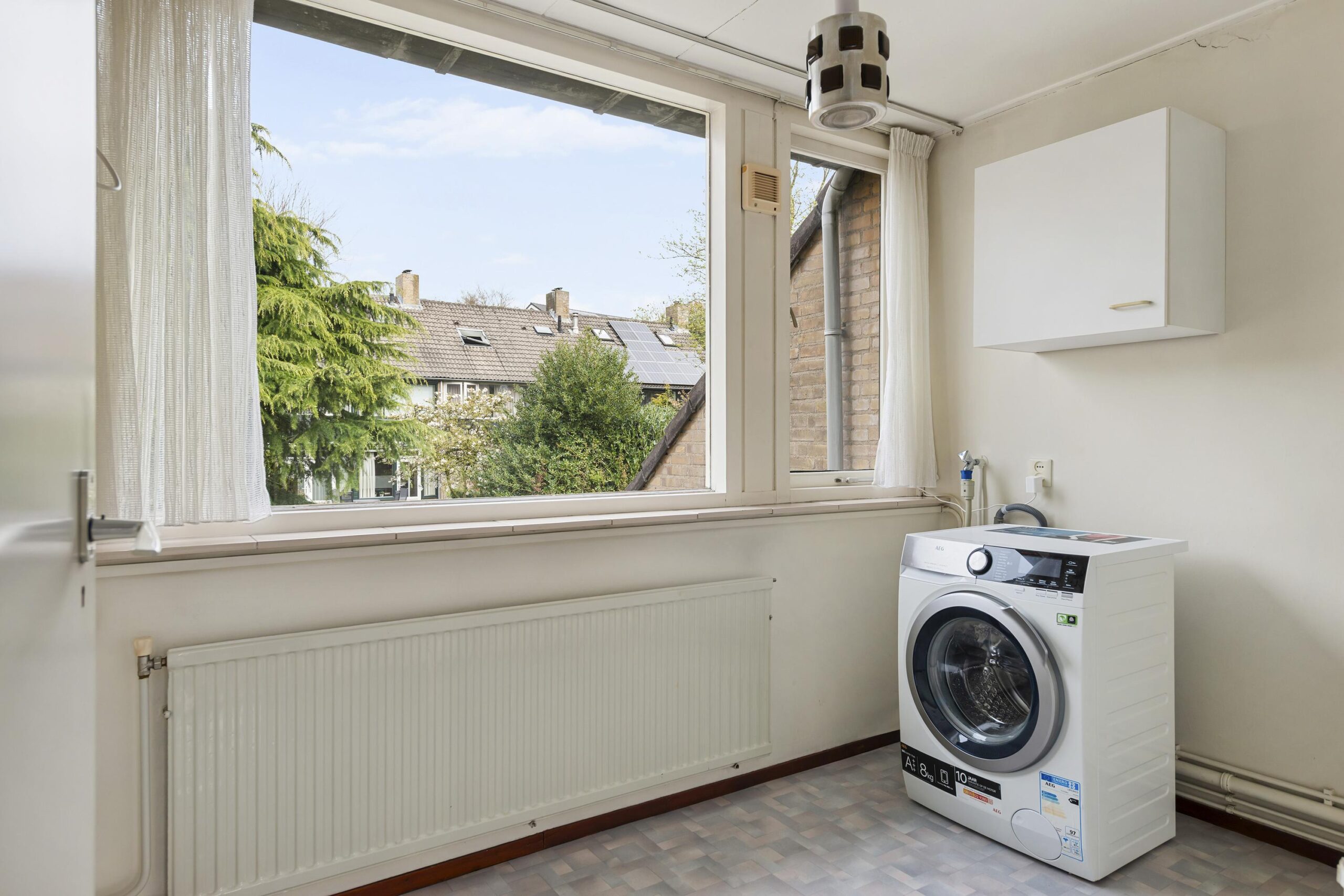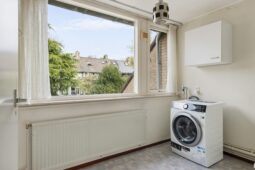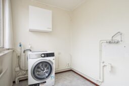 Ruime en lichte overloop, vier goed bemeten slaapkamers. Eén van de kamers is momenteel in gebruik als wasruimte met aansluiting voor de wasmachine. Badkamer voorzien van wastafel, toilet en inloopdouche. Vaste trap naar de tweede verdieping.