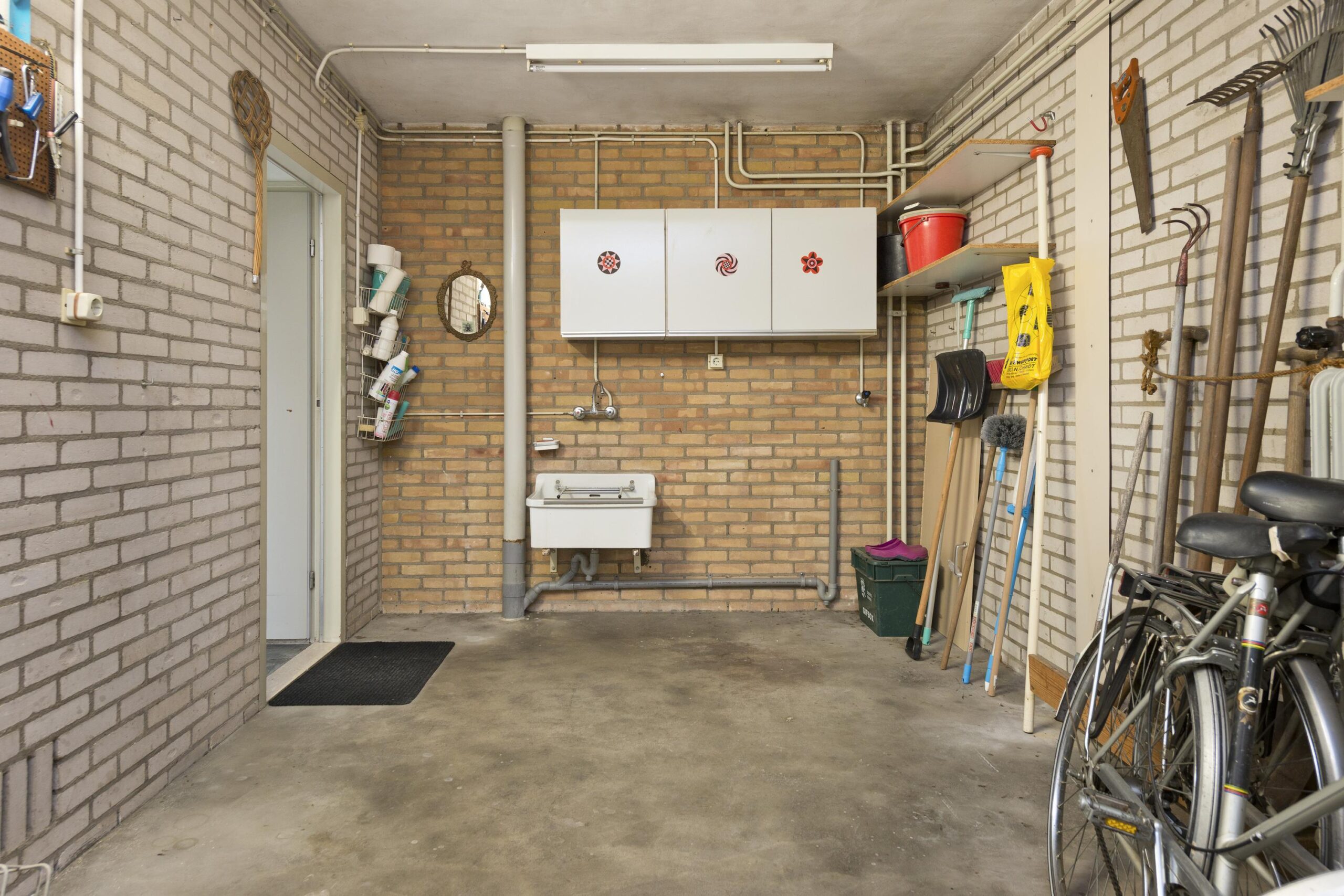 Oprit met toegang tot de garage. Entree, ruime hal met garderobenis en meterkast, toiletruimte met fontein. Royale en lichte, tuingerichte living met open keuken en tuindeur naar de achtertuin. De woonkamer beschikt over een extra hoekraam wat zorgt voor veel lichtinval. De inpandige garage biedt de mogelijkheid om bij de woonruimte te betrekken of om te bouwen tot een multifunctionele ruimte, zoals een woonkeuken, werk-/studeerkamer, slaapkamer of praktijkruimte.