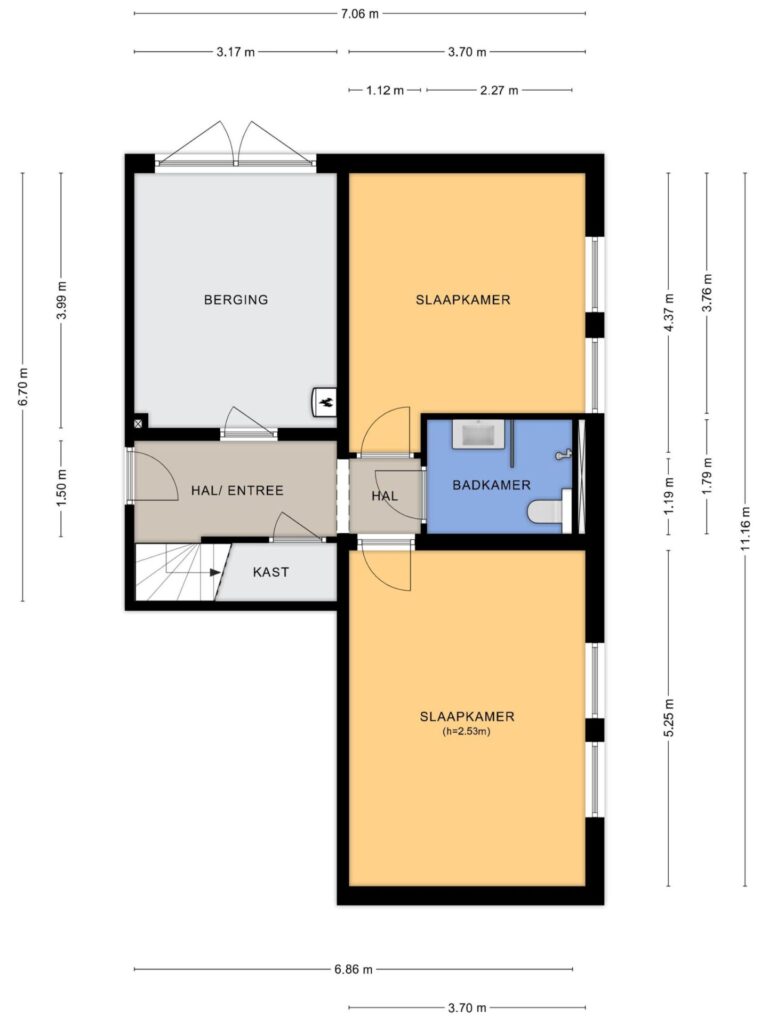 Vanuit het souterrain is er een deur naar inpandige garage/ berging.