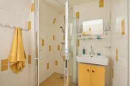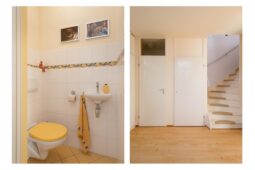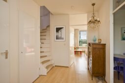Bij binnenkomst kom je in de hal met modern toilet. De tuingerichte woonkamer is heerlijk licht en voorzien van een deur naar de zonnige achtertuin. De keuken is modern en uitgerust met inbouwapparatuur; indien gewenst is er eenvoudig een open keuken van te maken. Op de eerste verdieping bevinden zich drie slaapkamers en een moderne badkamer met douche en wastafelmeubel.