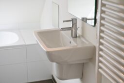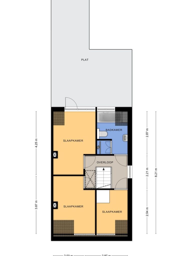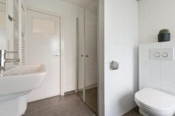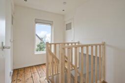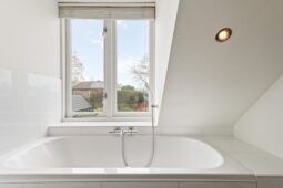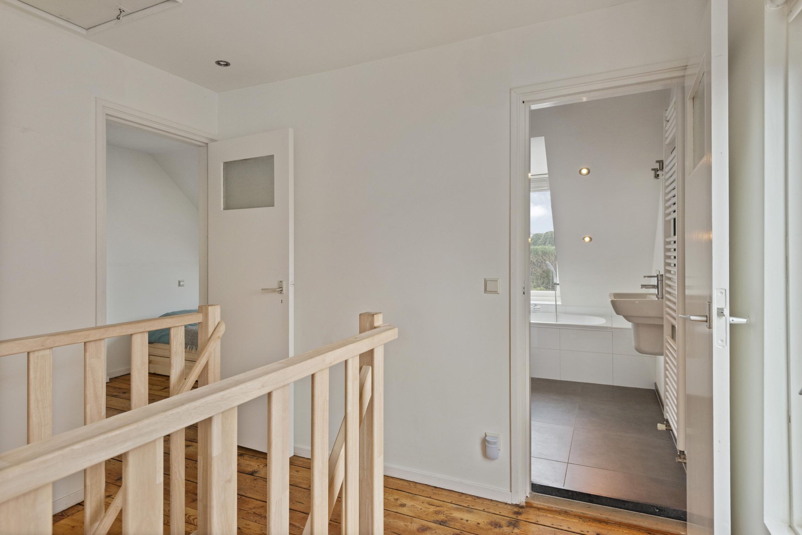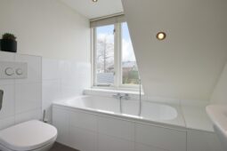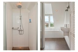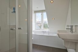 Vanaf de overloop bereikt u twee ruime slaapkamers en een derde, kleinere slaapkamer. De moderne badkamer, voorzien van een dakkapel, beschikt over een ligbad, douche, tweede toilet, wastafel en vloerverwarming.