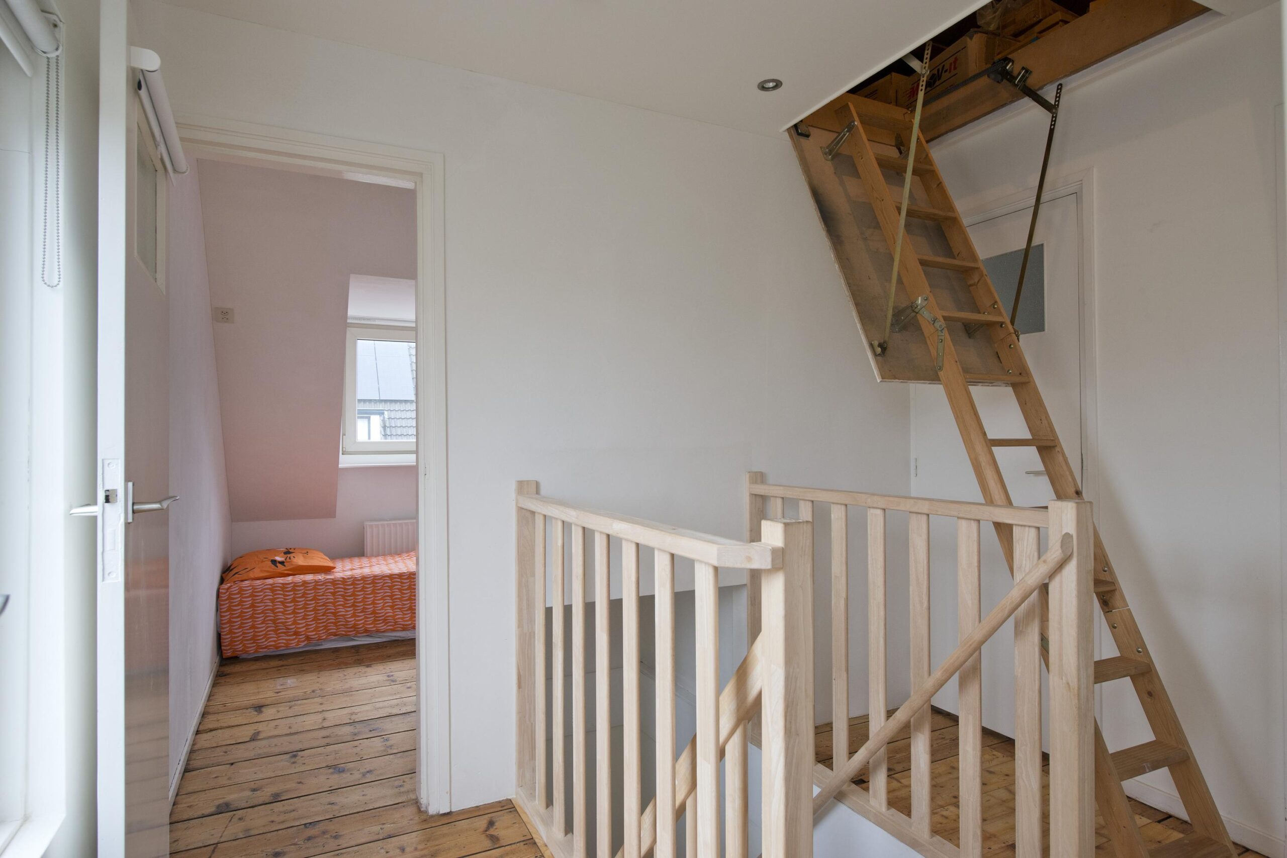 Ruime bergzolder, bereikbaar via een vlizotrap.