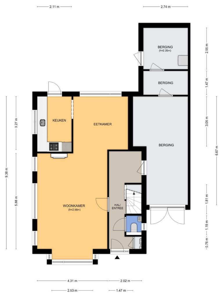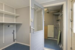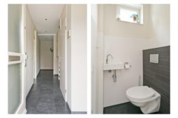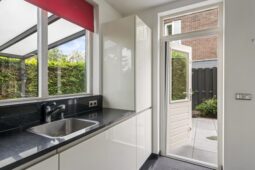 Entree, ruime en lichte hal met trapopgang, moderne meterkast en toilet met wandcloset en fonteintje. Vanuit de hal is er toegang tot de verwarmde inpandige garage, die op zijn beurt toegang biedt tot een berging en een bijkeuken, beiden verwarmd en ook voorzien van elektra. De woonkamer is heerlijk licht dankzij de grote raampartijen en staat in open verbinding met de eetkamer en de halfopen keuken. De moderne inbouwkeuken is voorzien van diverse inbouwapparaten en heeft een deur naar de achtertuin.