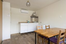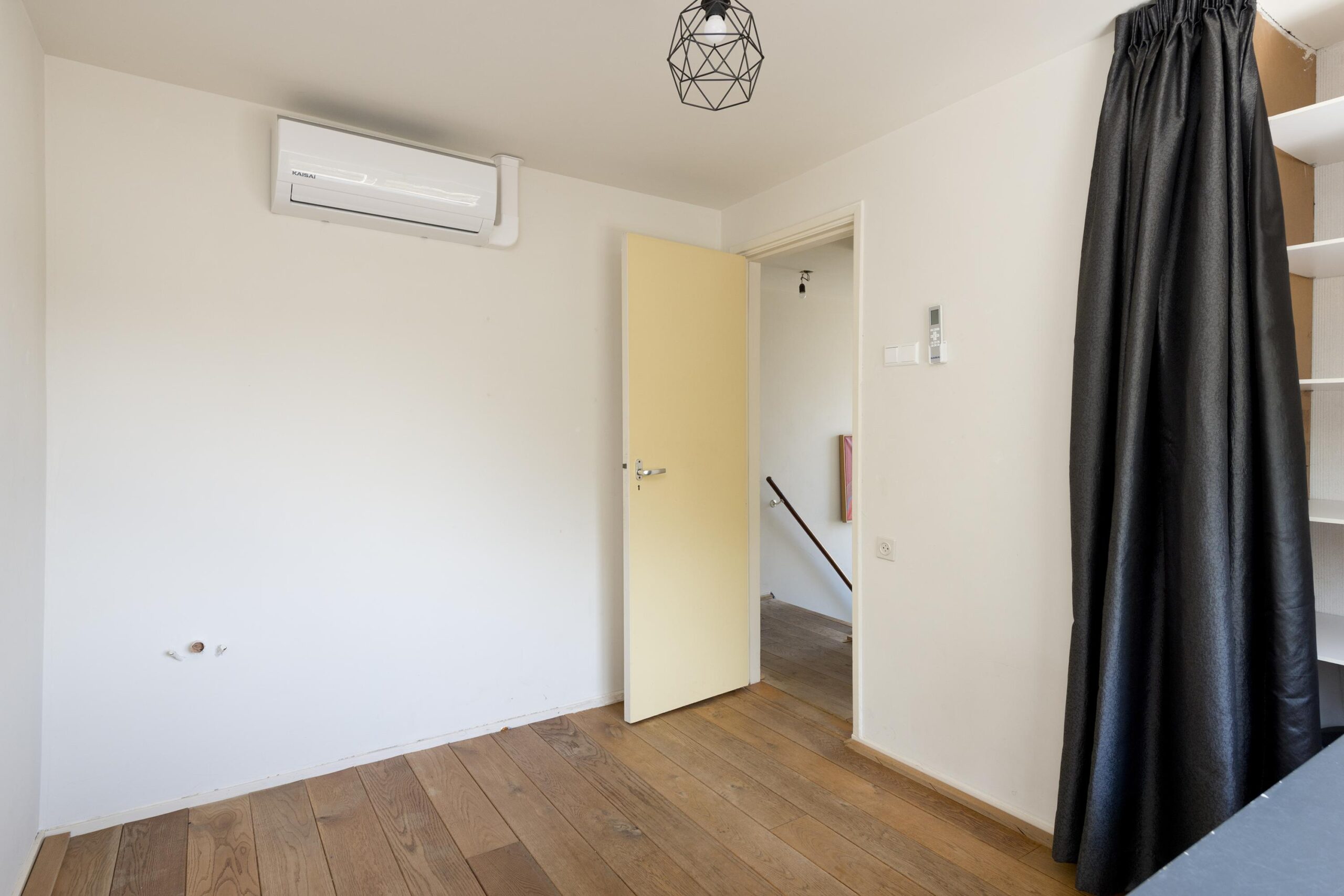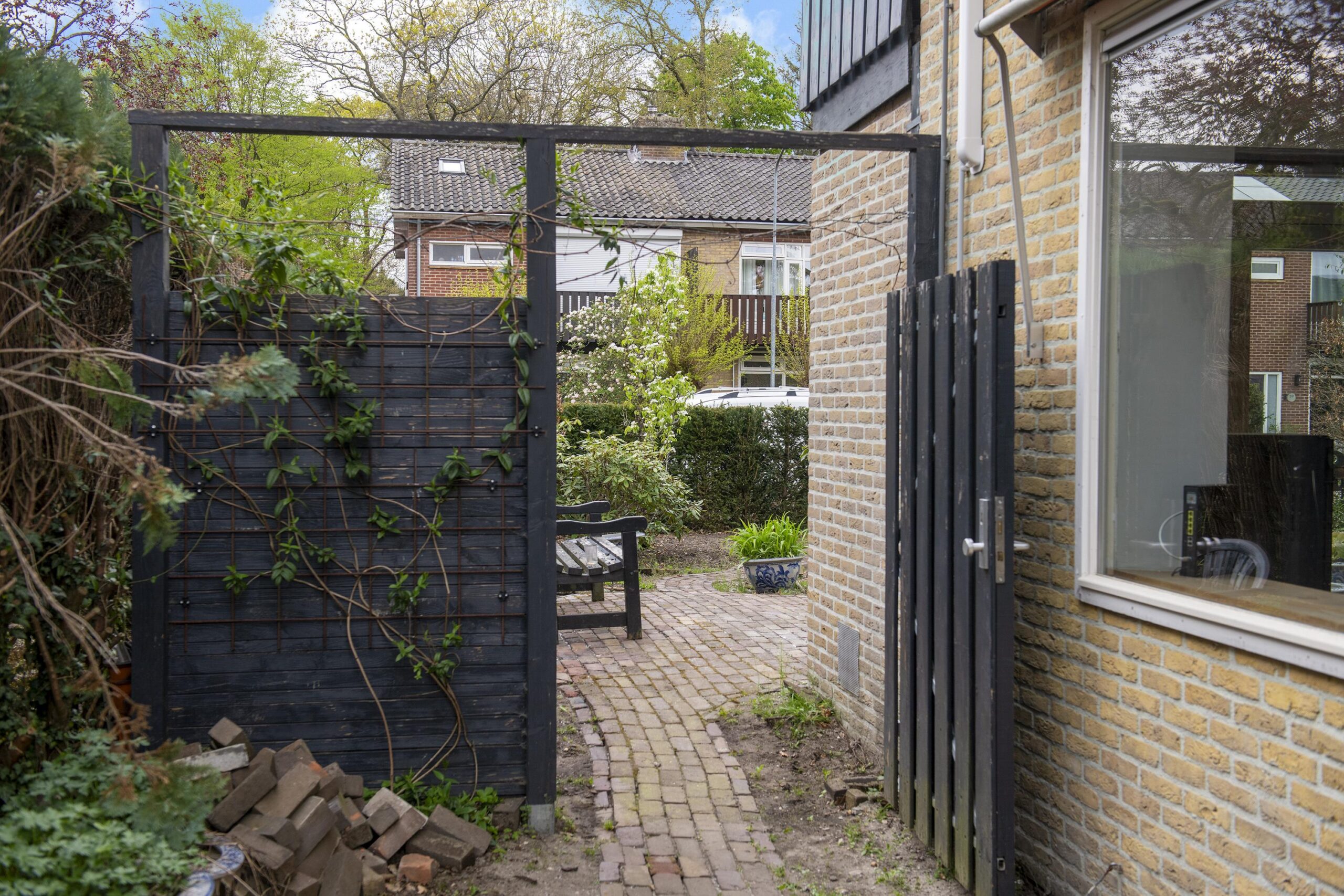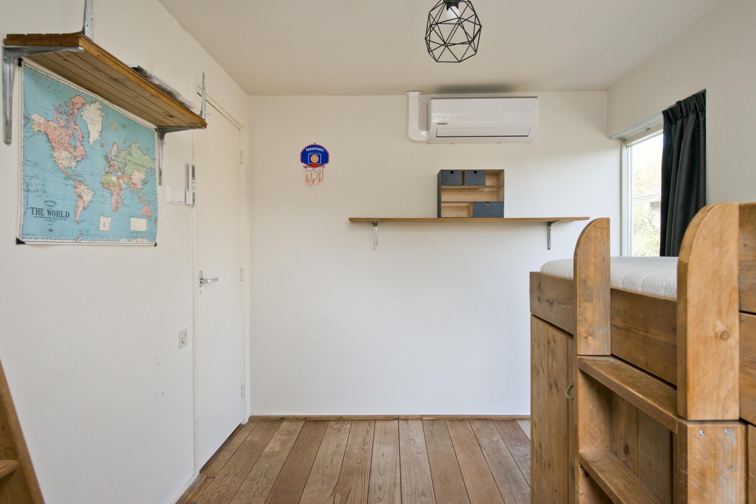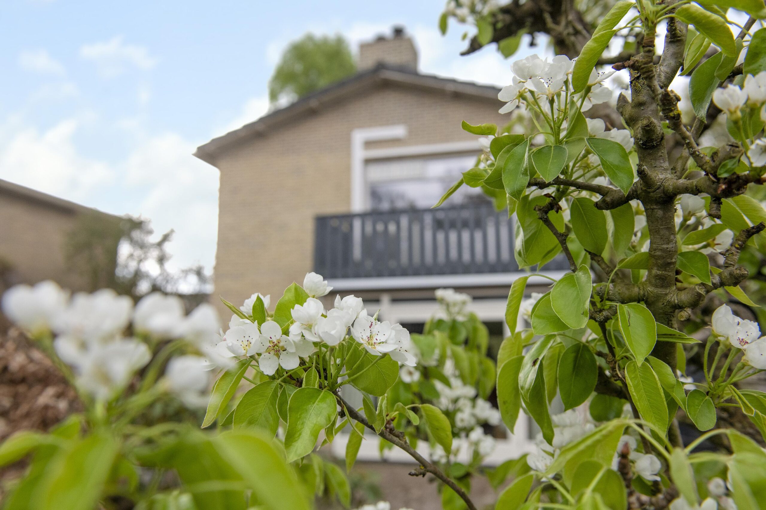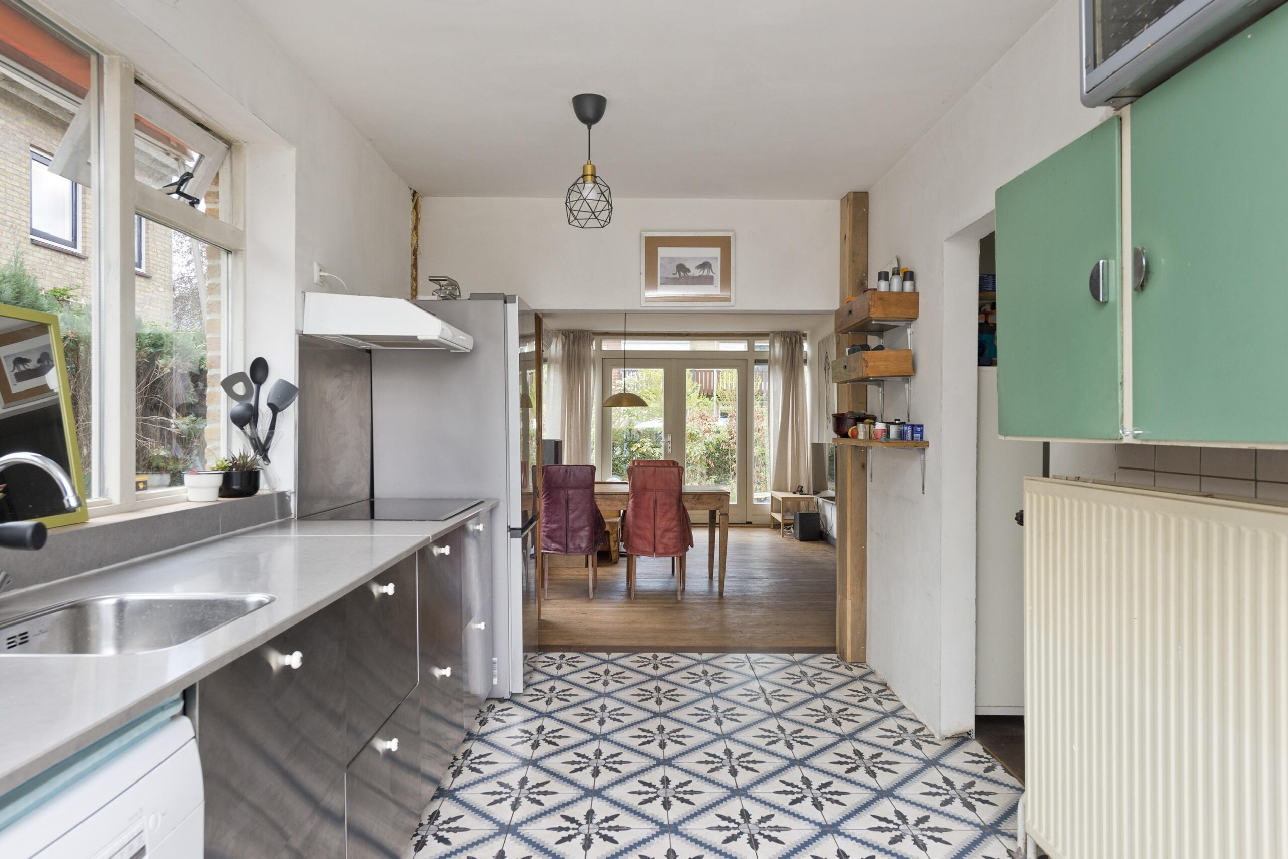 Entree via ruime hal met wasmachineaansluiting en buffervat (de hal is vergroot door samenvoeging met een voormalig kamertje), toiletruimte. Lichte woonkamer met houten vloer, houtkachel, airco en openslaande deuren naar de tuin. Moderne open keuken met inbouwapparatuur en eveneens openslaande deuren naar een heerlijke achtertuin (gelegen op het zuidoosten). In de tuin bevinden zich ruime bergingen.