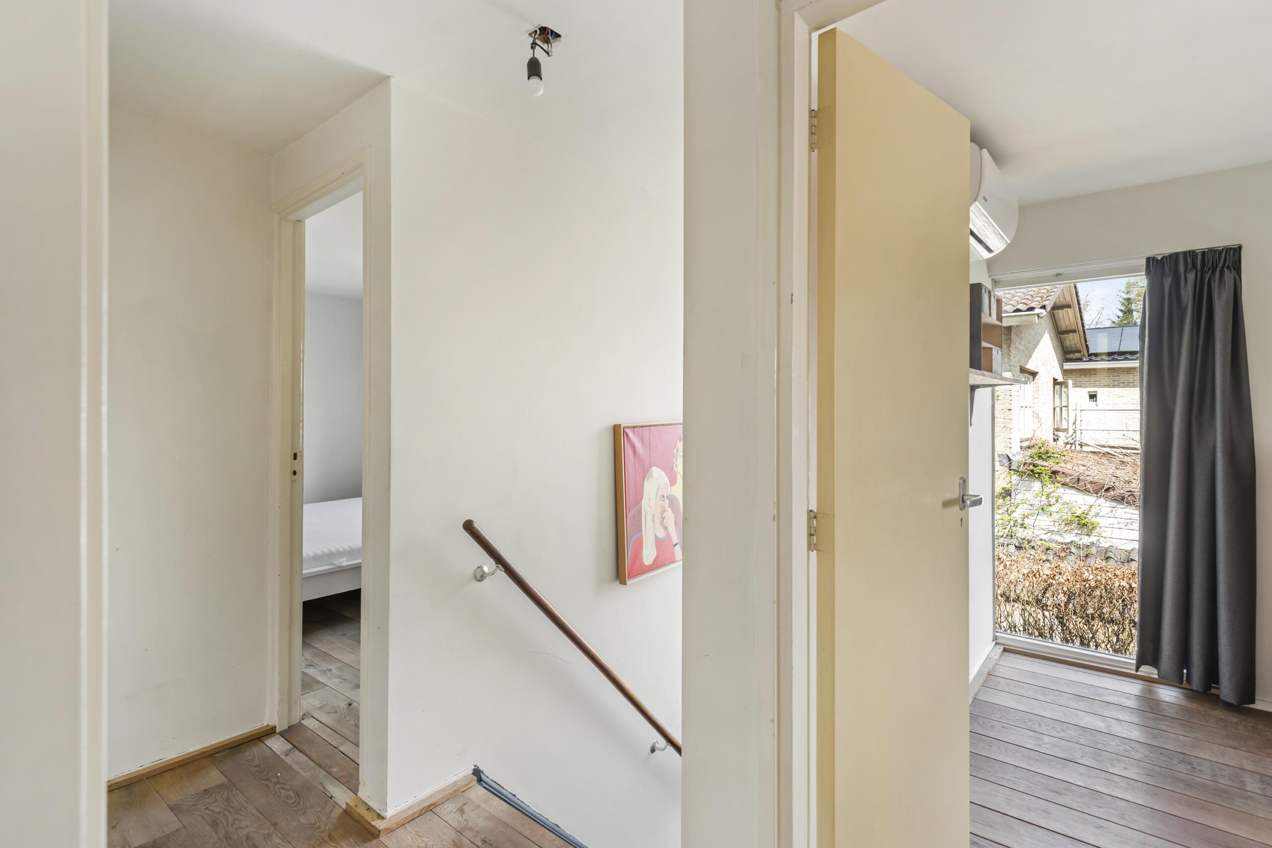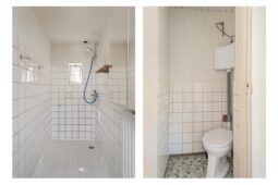 Badkamer met douche, aparte toiletruimte, toegang tot praktische bergvliering.