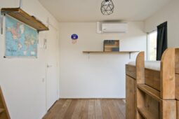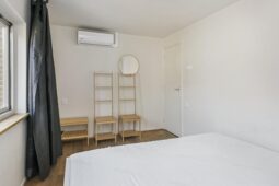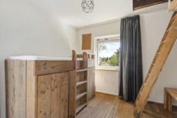 Overloop, vier slaapkamers (allen voorzien van airco), waarvan één met keukenblokje en toegang tot een balkon.