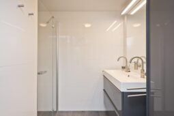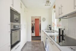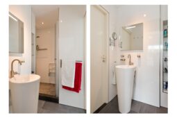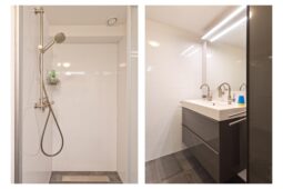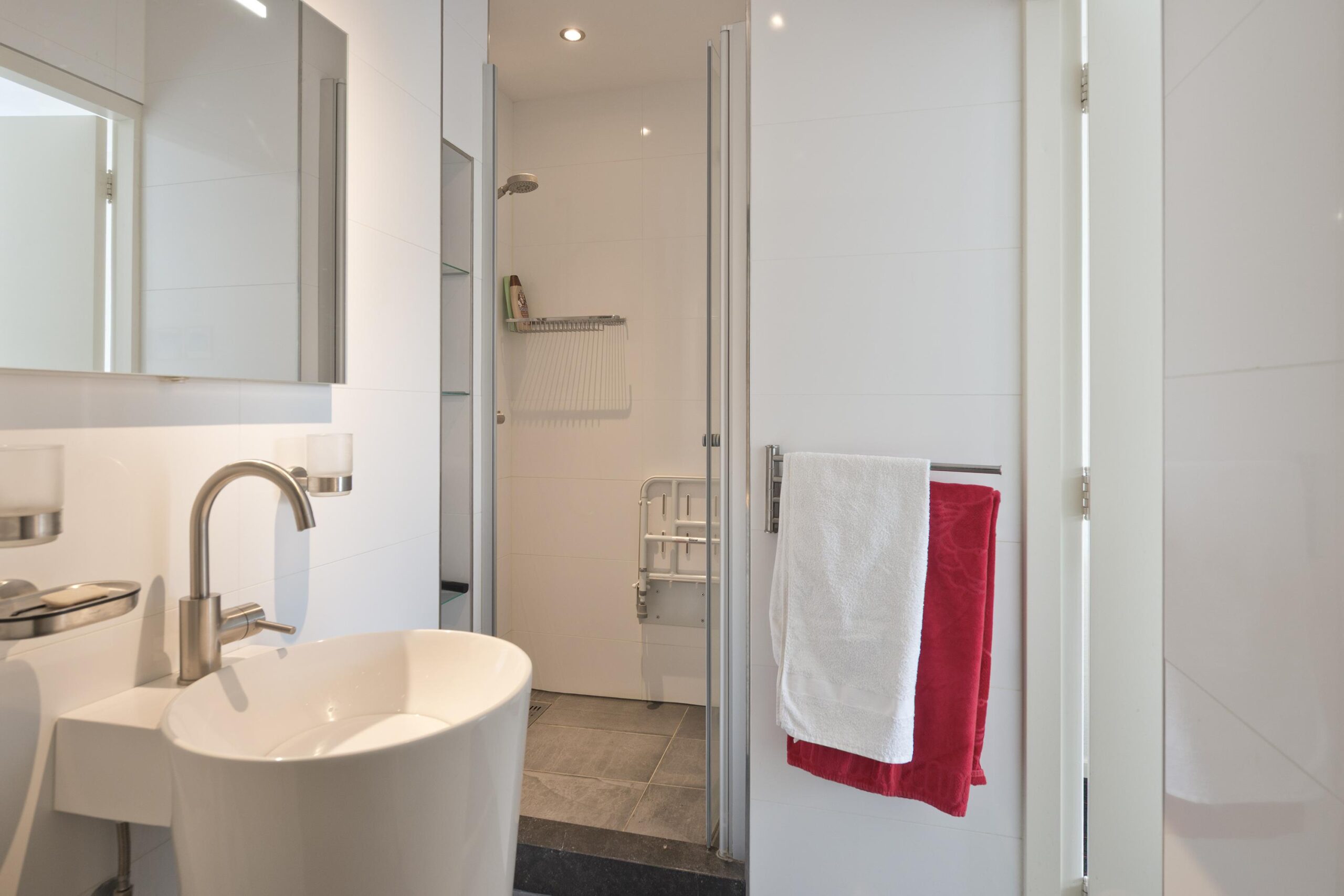 De benedenverdieping is volledig vernieuwd en biedt drie ruime (slaap)kamers, een royale berging en een tweede badkamer met douche en separaat toilet. De voormalige garage is nu in gebruik als bergruimte.