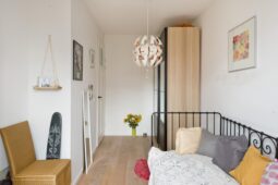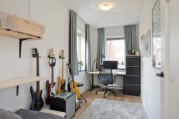 De 1e verdieping biedt drie ruime slaapkamers en een complete badkamer, terwijl de 2e verdieping, met een grote 4e slaapkamer, de mogelijkheid biedt voor extra ruimte of een eigen thuiswerkplek. Met het energielabel A, 12 zonnepanelen en een cv combi uit 2011 is de woning bovendien duurzaam en energiezuinig.
