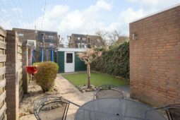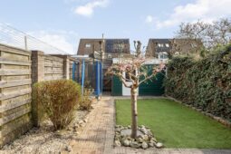De woning heeft een diepe en gezellige voortuin, en een royale, onderhoudsvriendelijke achtertuin met een ruime berging en een handige achterom.