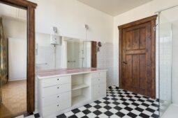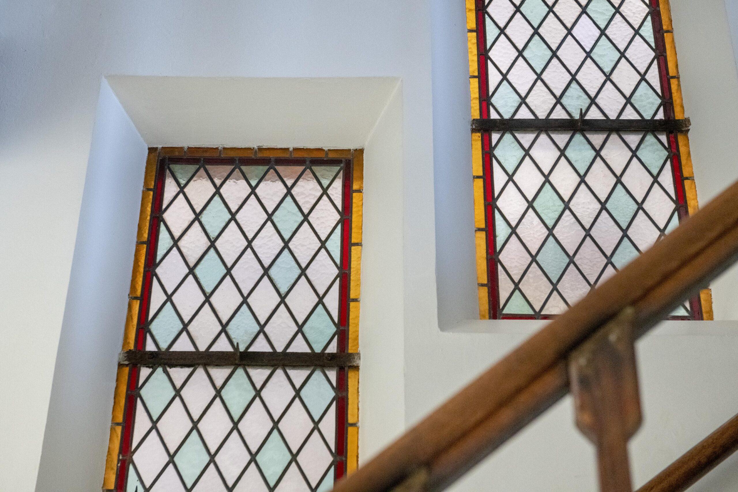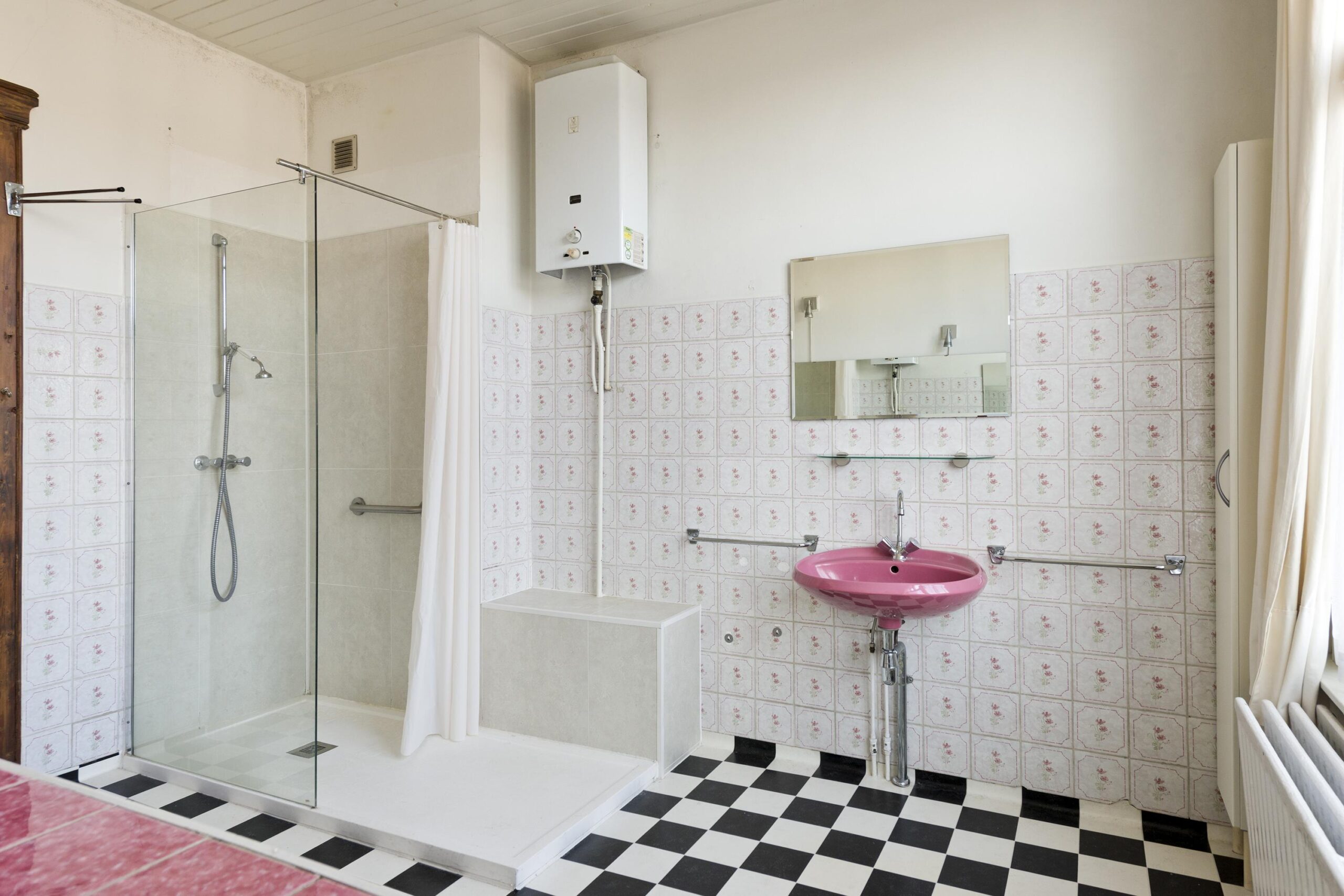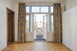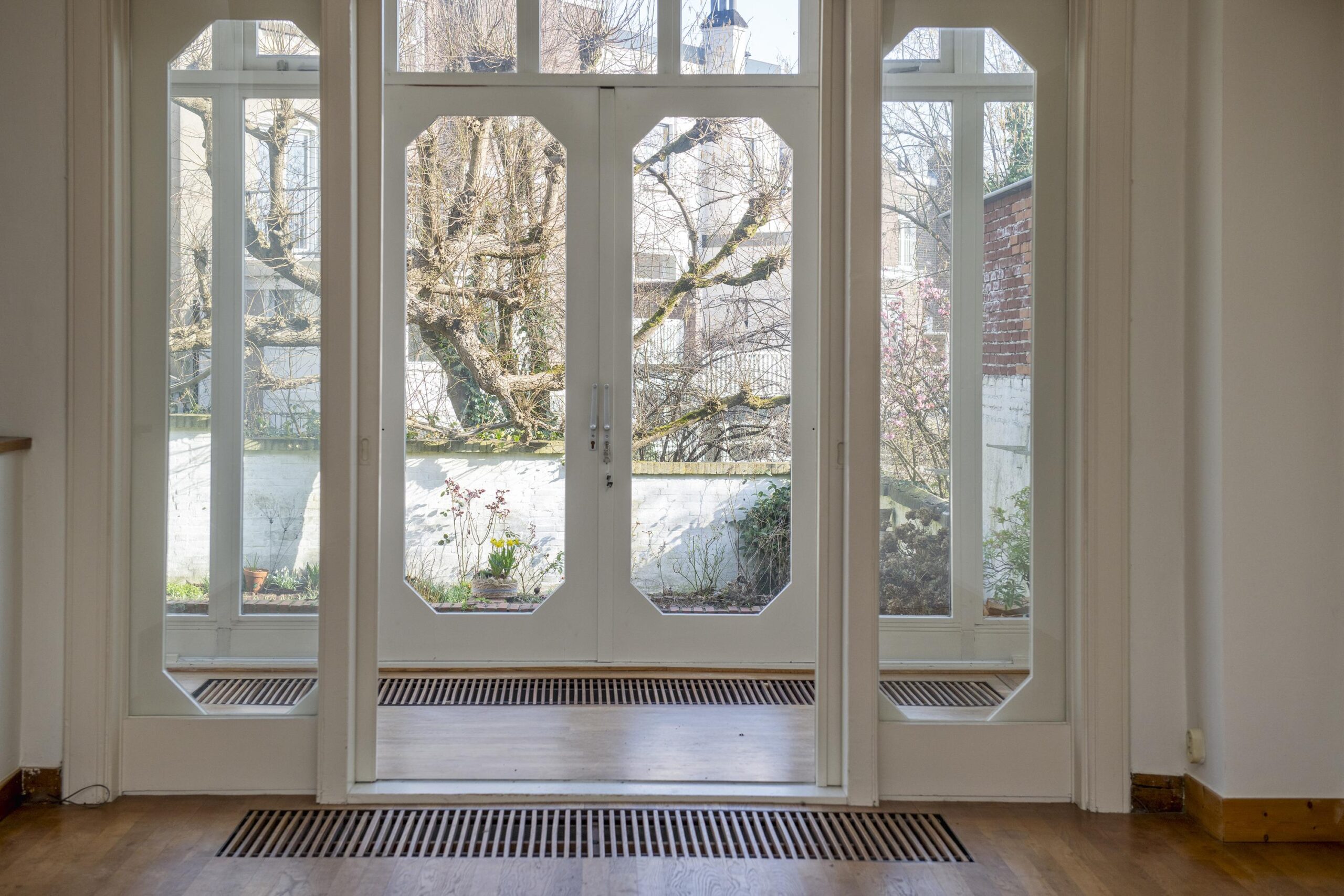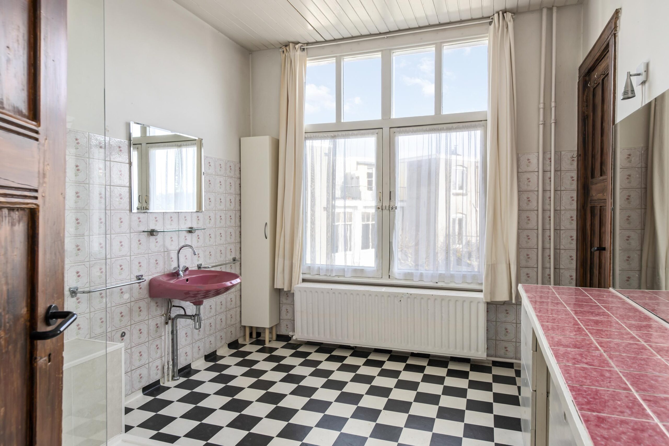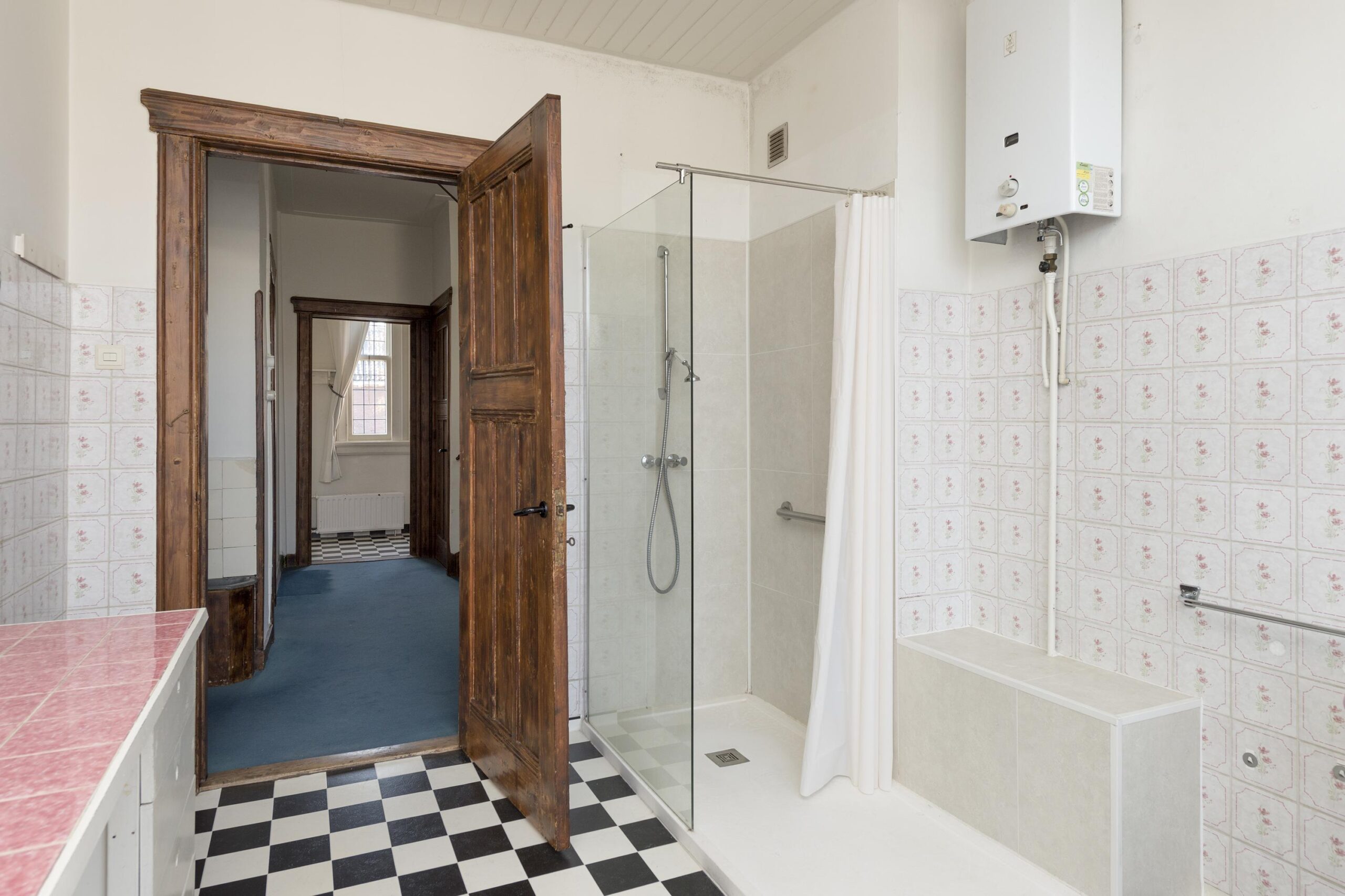 1e verdieping: via het bijzondere en authentieke trappenhuis met glas in lood ramen bereik je de overloop van de eerste verdieping. Je vindt er een separaat toilet, een ruime badkamer en 2 zeer ruime slaapkamers, waarvan de achterste slaapkamer toegang heeft tot het balkon. Verder is er op deze verdieping nog een extra wasruimte aanwezig.